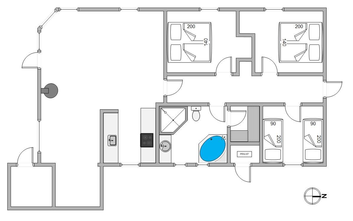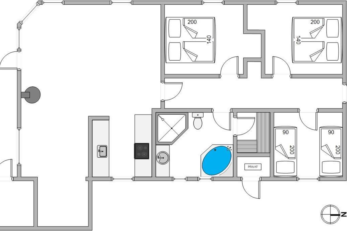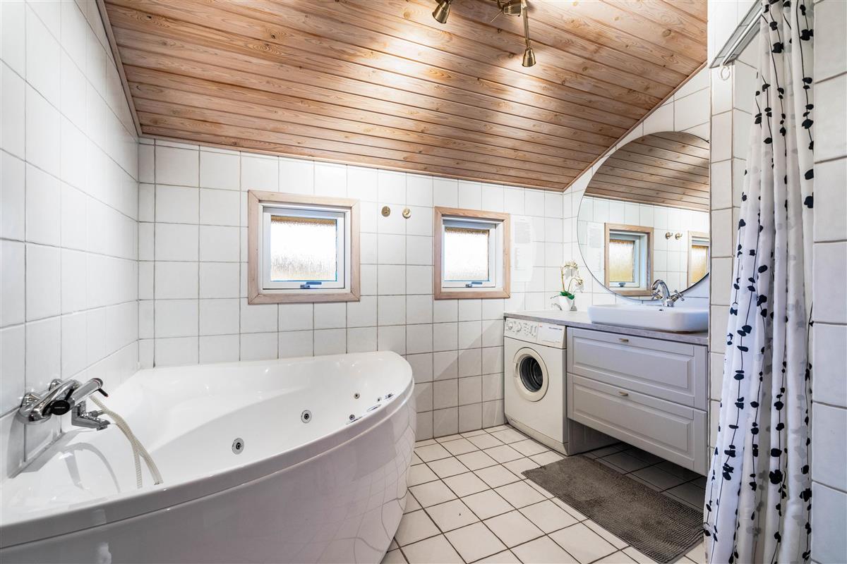 There's also a spacious bathroom with a two-person whirlpool and access to the sauna. Here you can relax and warm up after a long day at the beach or an autumn walk.