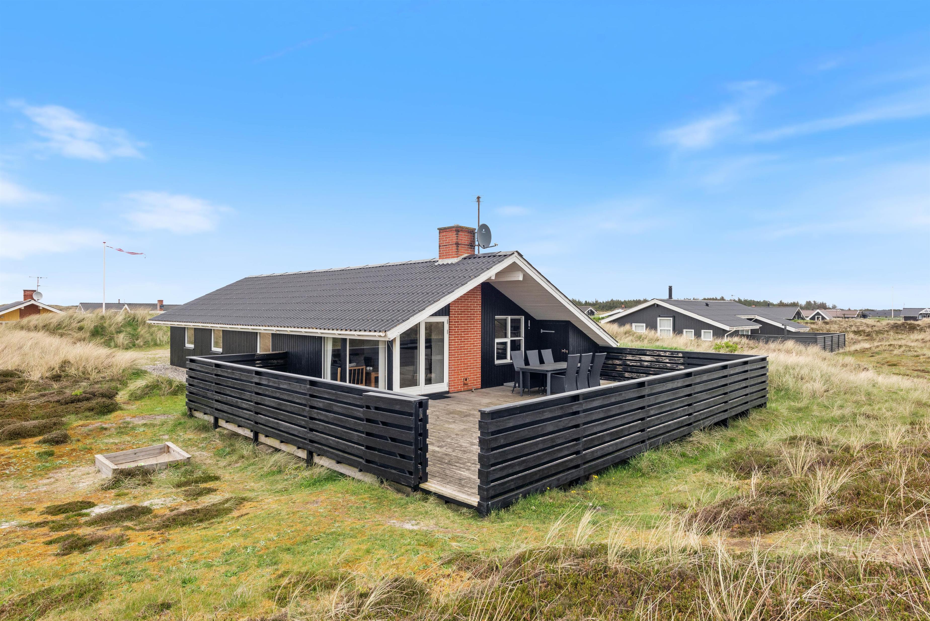 This beautiful holiday home offers everything needed for a perfect Danish holiday. The holiday home is situated at the end of a small cul-de-sac, just 250 metres from the North Sea with its miles of sandy beach.