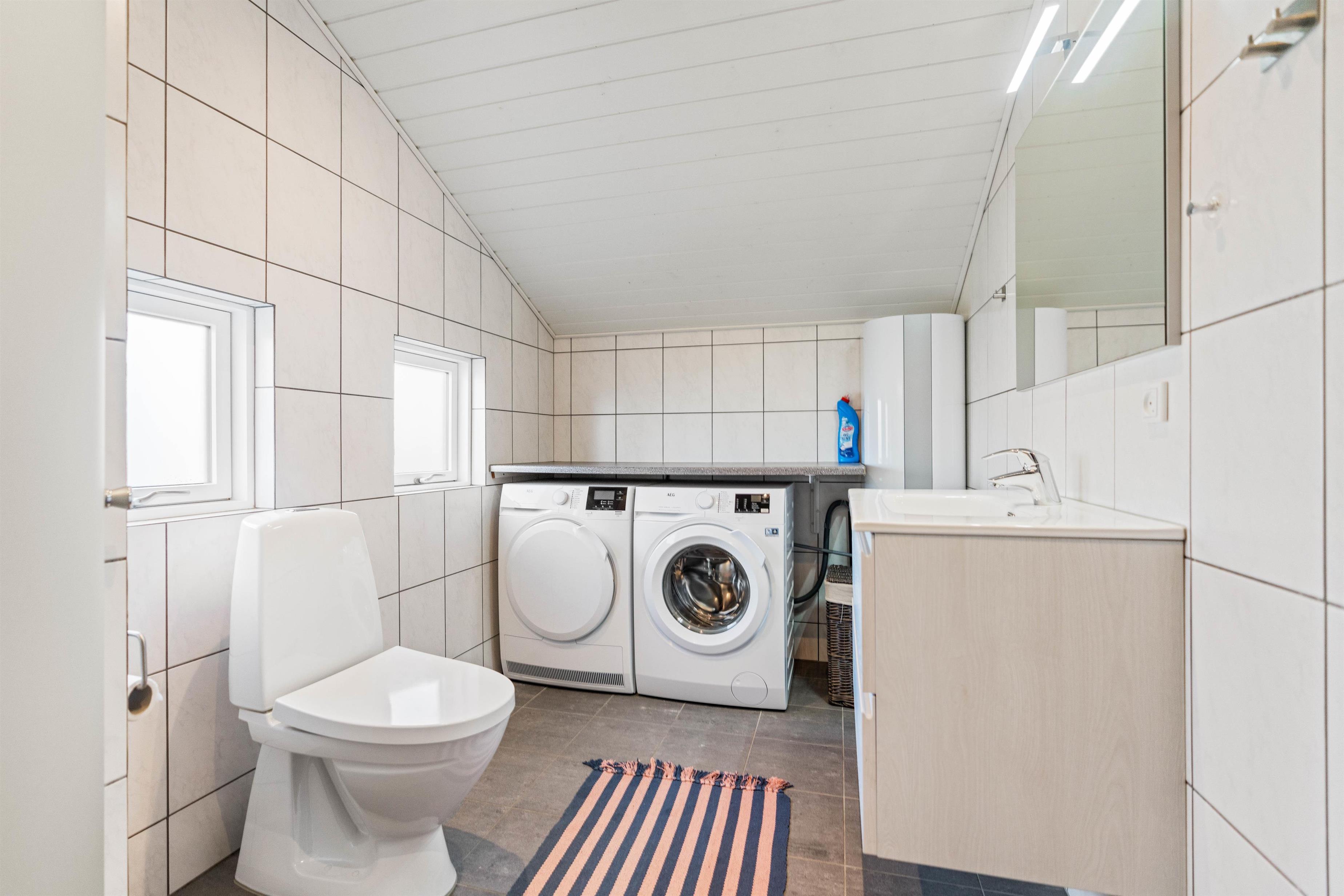 The modern, open-plan kitchen is equipped with everything needed for preparing delicious meals. The dishwasher takes care of the cleaning up, leaving you free to enjoy, for instance, a relaxing session in the sauna. The bathroom features underfloor heating, ensuring warm feet. Here you'll also find the washing machine and tumble dryer, allowing you to keep up with your laundry throughout your stay.