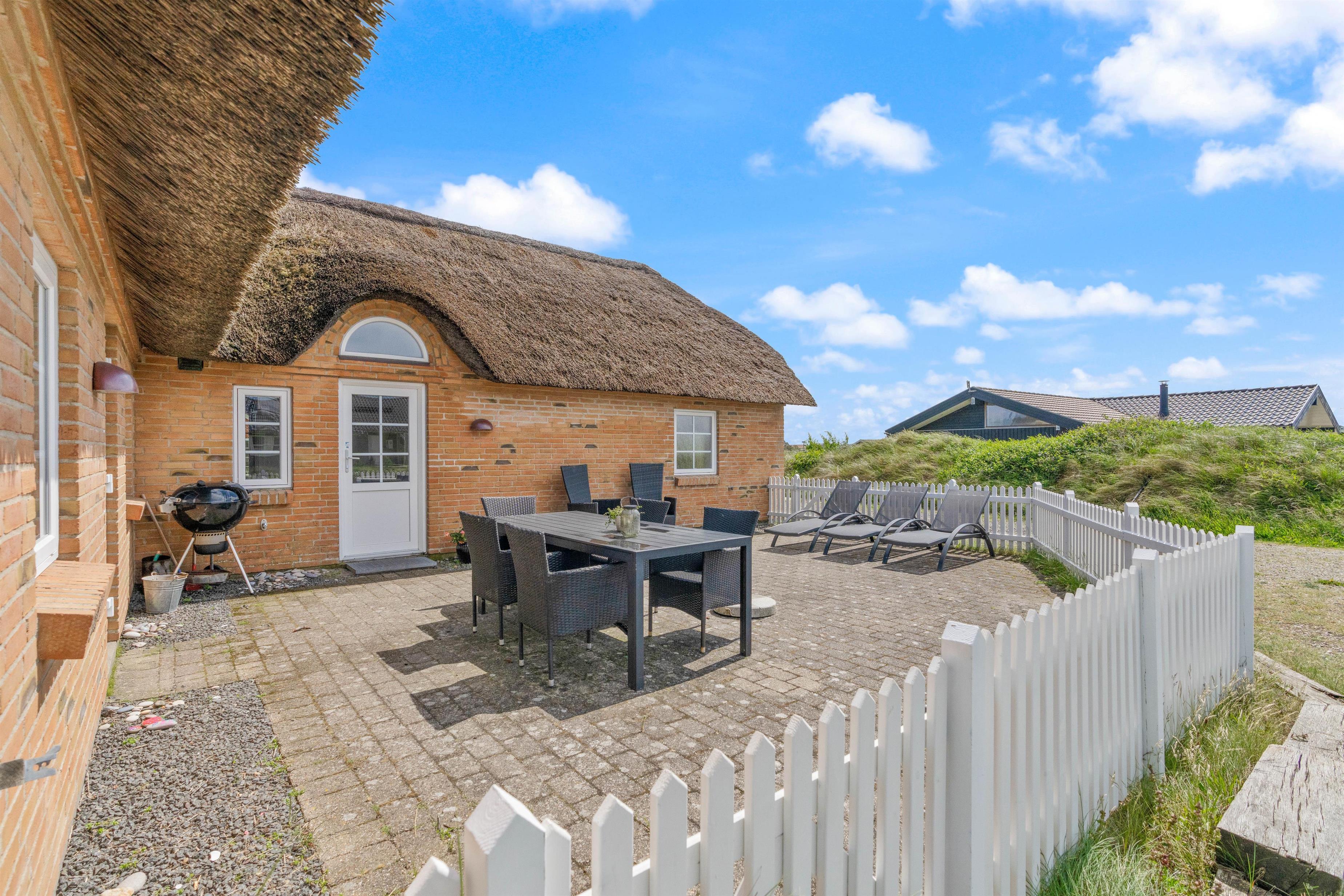 Set within 1,200 square metres of natural grounds, the holiday home offers various seating areas where you can enjoy views of the surrounding nature. The enclosed terrace features comfortable garden furniture and sun loungers perfect for relaxation. Here, young children or dogs can run freely without venturing into the wider surroundings unsupervised. The house's own barbecue is perfect for preparing delicious outdoor meals, allowing you to spend sociable evenings outdoors.