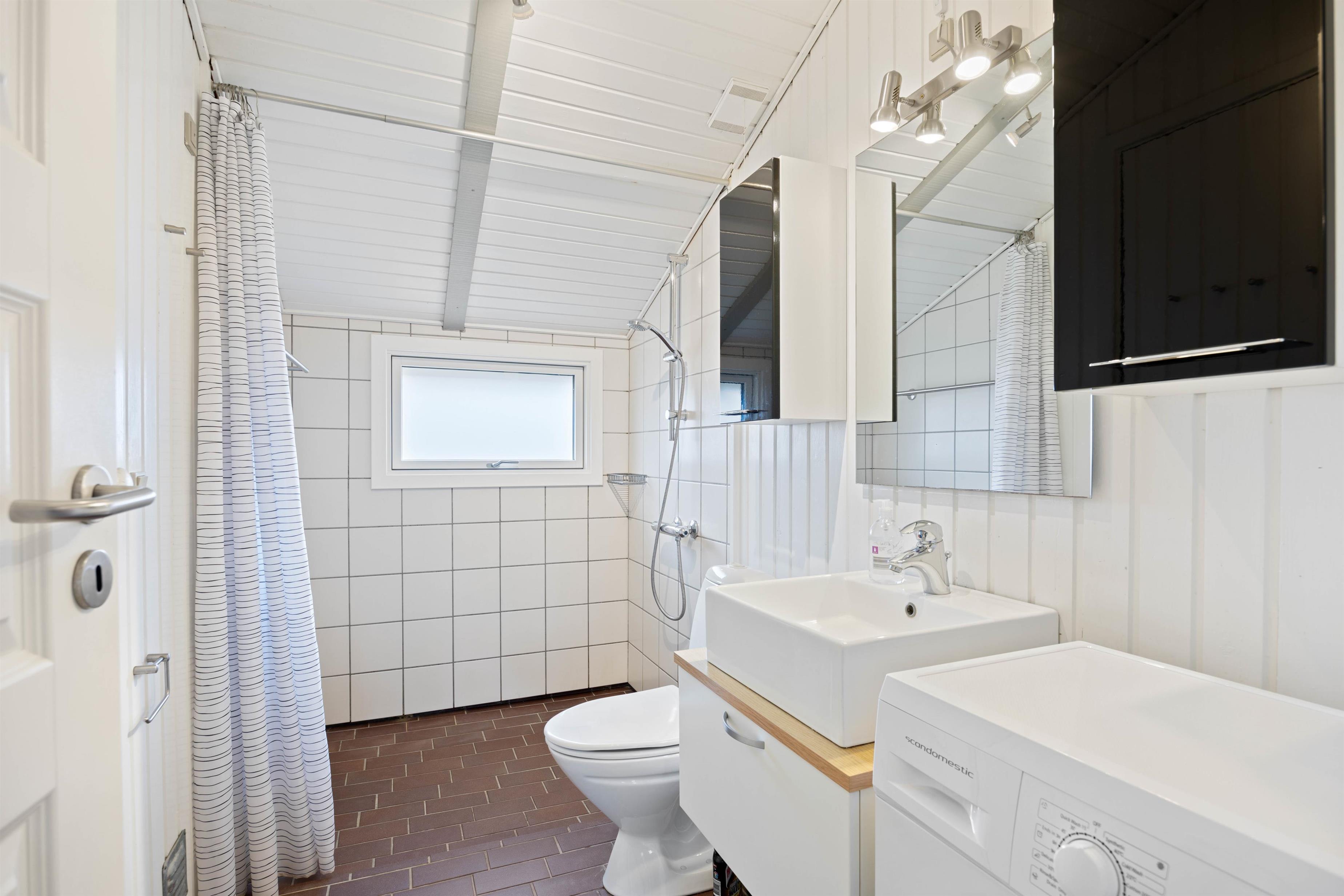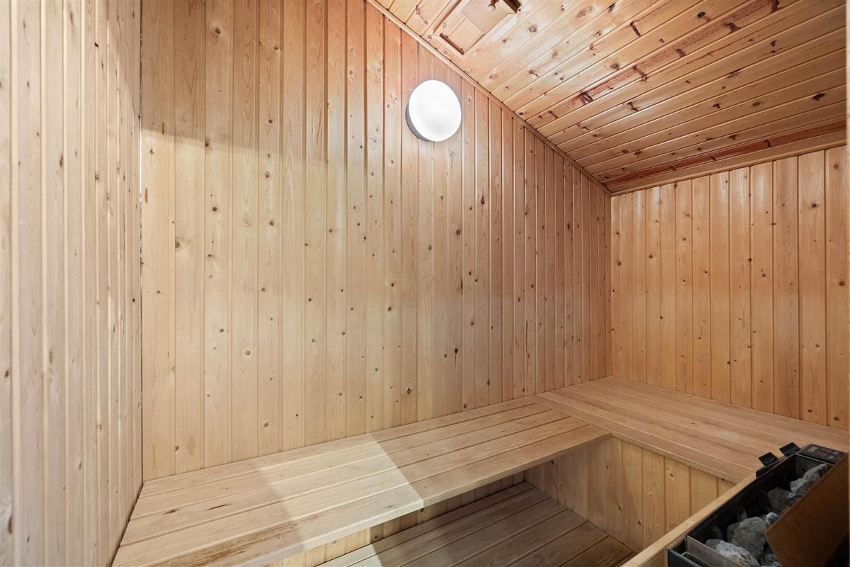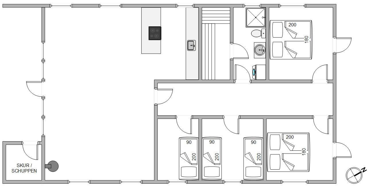 The practical shower room features underfloor heating and a washing machine. Here you'll also find access to the sauna, perfect for extended sauna sessions. Such relaxation ensures a good night's sleep. Four bedrooms with two double beds and three single beds are available for a restful night. Two of the bedrooms have terrace doors, allowing you to enjoy the fresh sea air first thing in the morning.