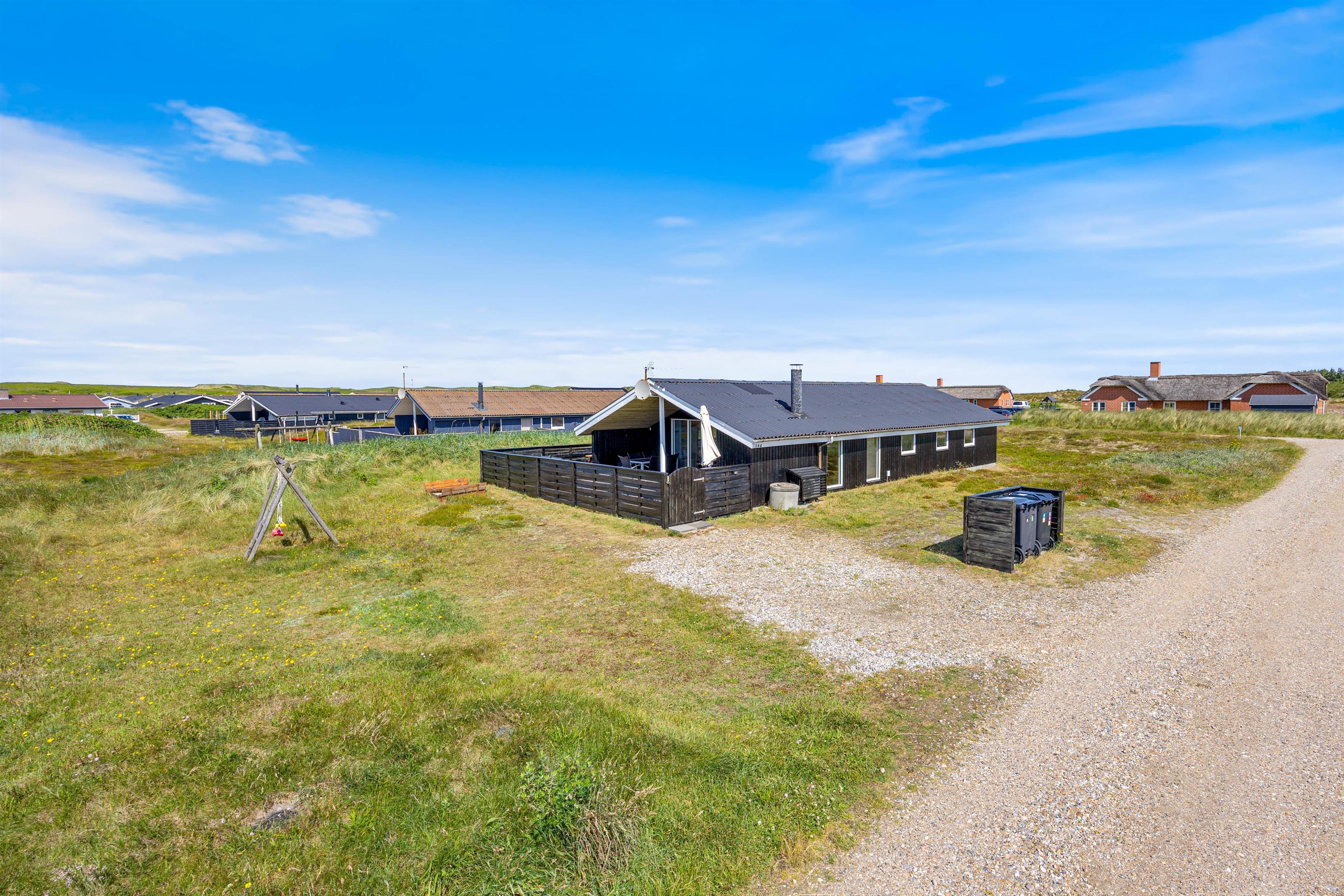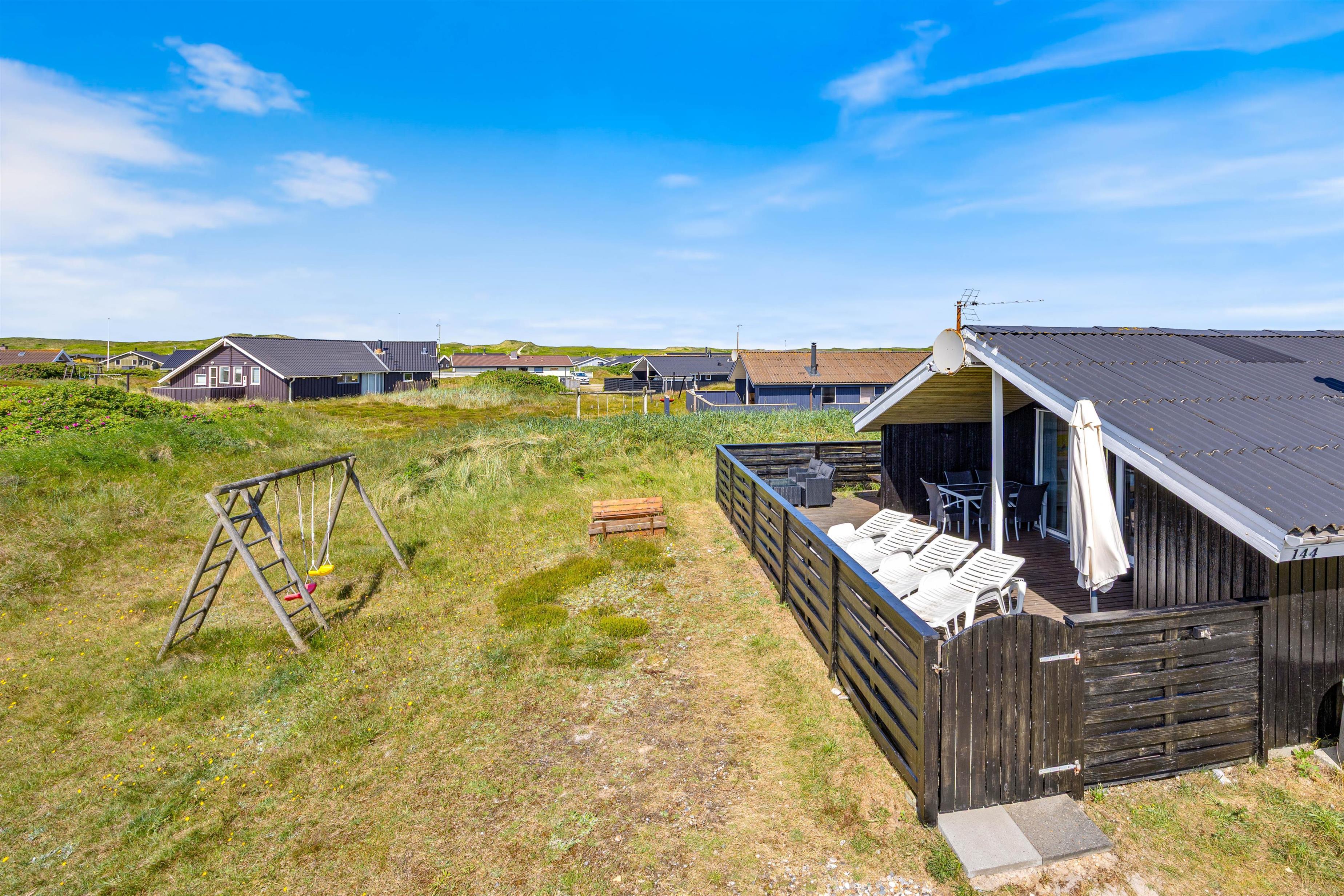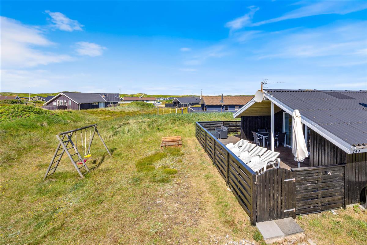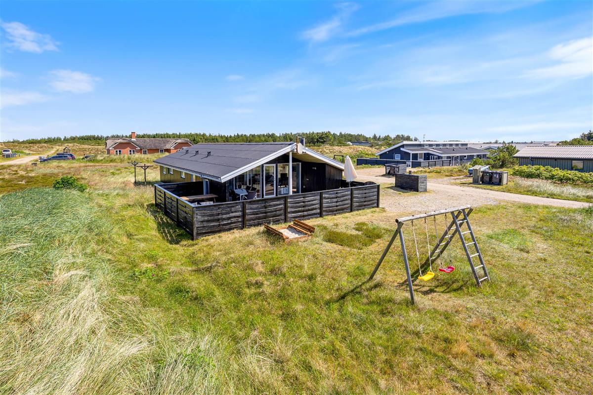 Your holiday home at Arvidvej 144 is located in Bjerregård, at the southern end of the Holmsland Klitt peninsula. This area features unique dune and heathland landscapes, perfect for extensive cycling and hiking tours. The North Sea and wide sandy beach are also nearby. Here you can collect shells, enjoy a refreshing swim and fly kites.