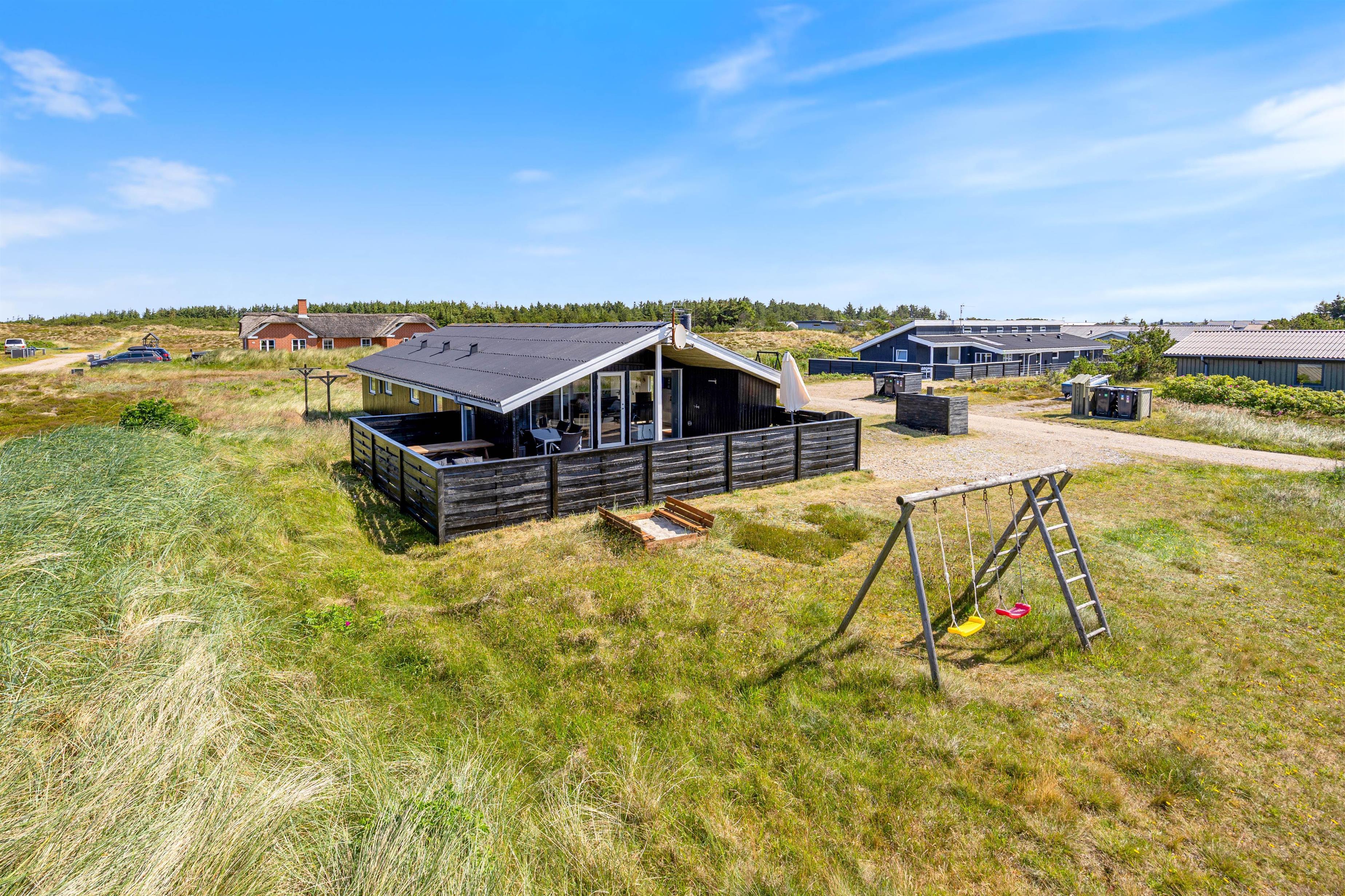 Children have access to a swing and sandpit for playing. While your little ones play, you can relax on the sun loungers, enjoying the fresh sea air and views of nature. It's a perfect spot to unwind and leave everyday stress behind.