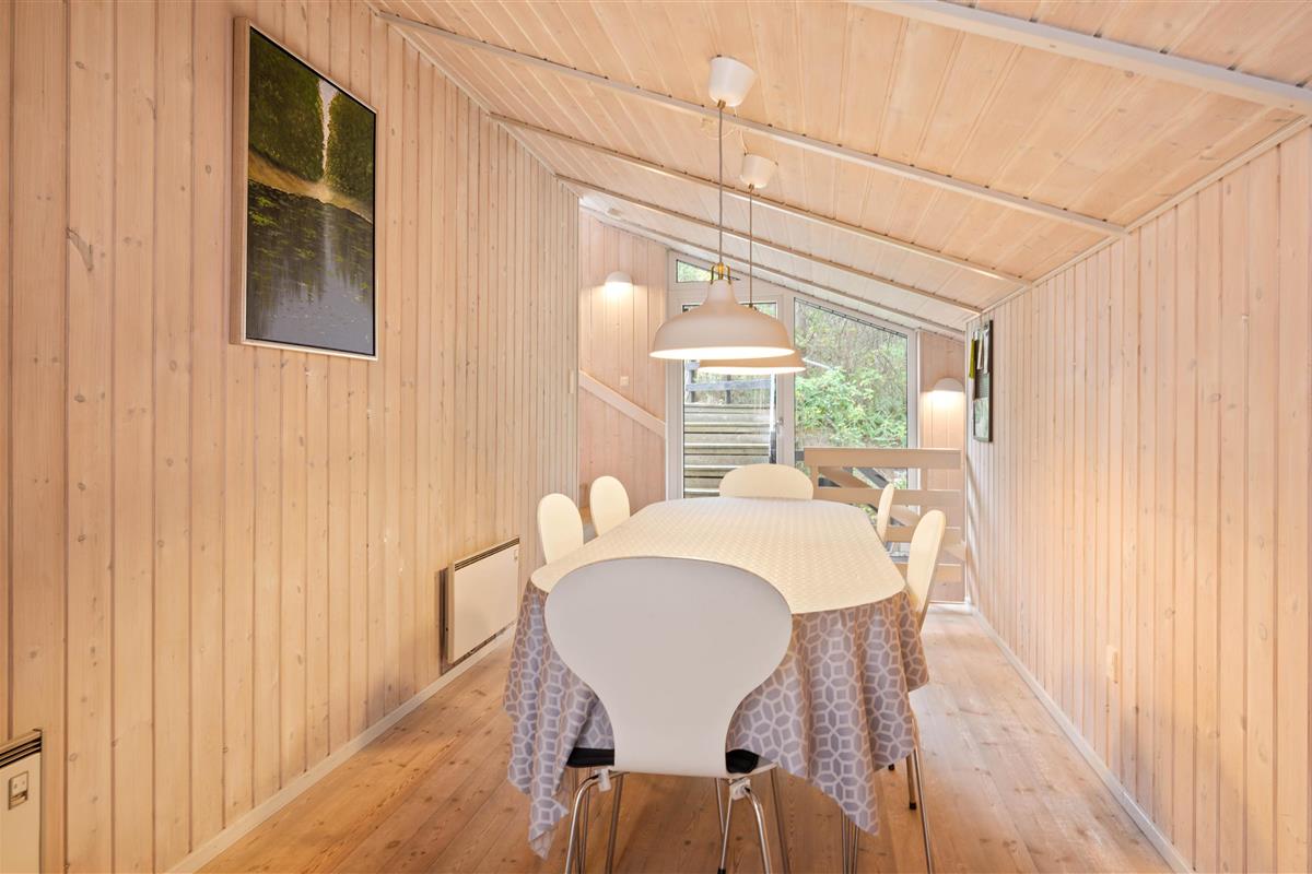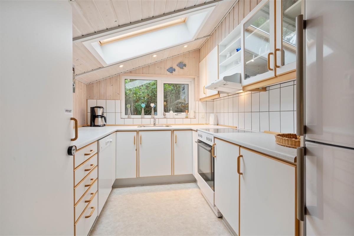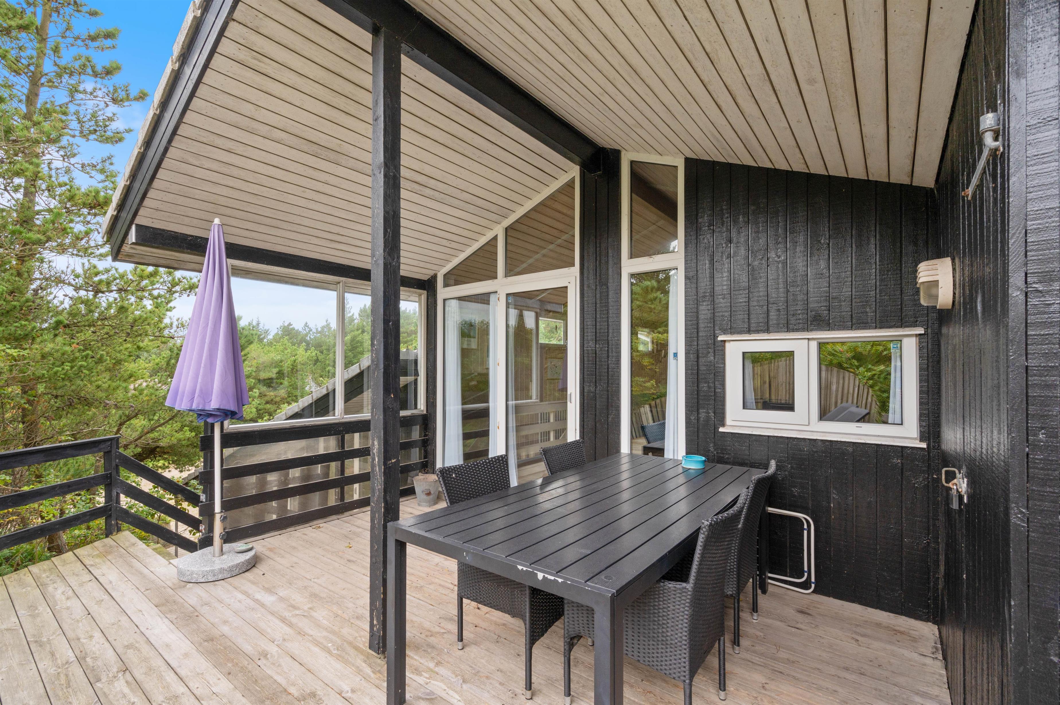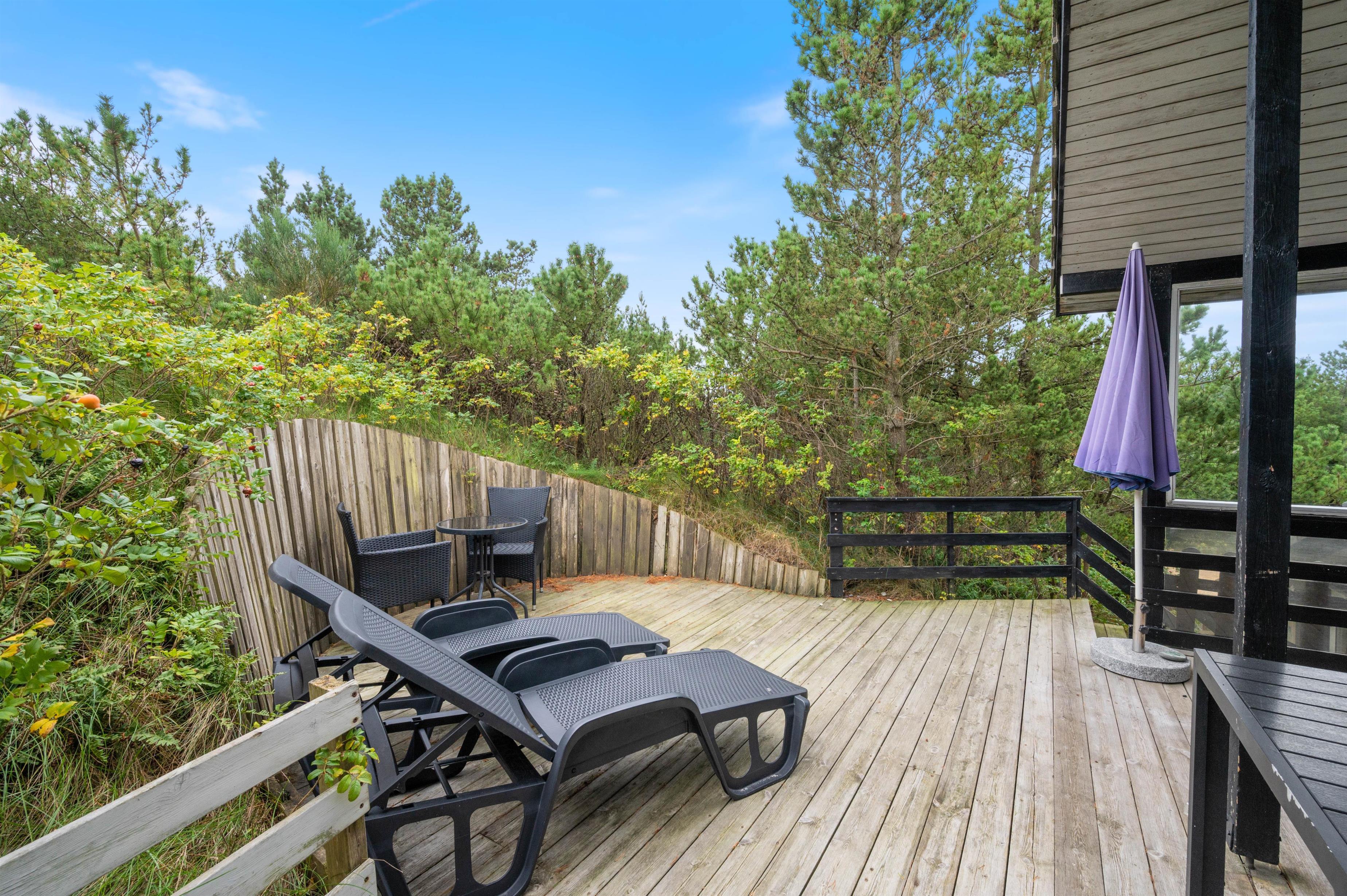 This beautiful holiday home is situated on a hilly dune plot at Bjerregårdsvej 130, on the Danish west coast. The 102 square metres of living space is arranged across different levels. This special layout is truly unique and gives the holiday home its distinctive charm.