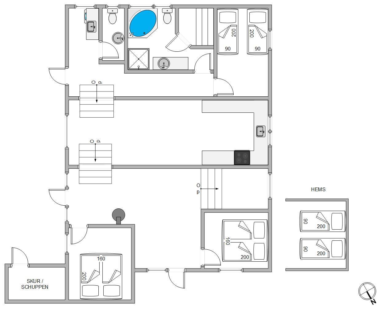 This welcoming holiday home, decorated with personal touches, spans three levels, perfectly adapted to the hilly dune landscape. One level houses the bathroom and guest WC with underfloor heating. Here you'll also find the sauna and whirlpool, inviting you to enjoy lengthy sauna sessions and relaxing hot soaks. It's an ideal space for relaxation and unwinding. This level also features a comfortable bedroom with two single beds.