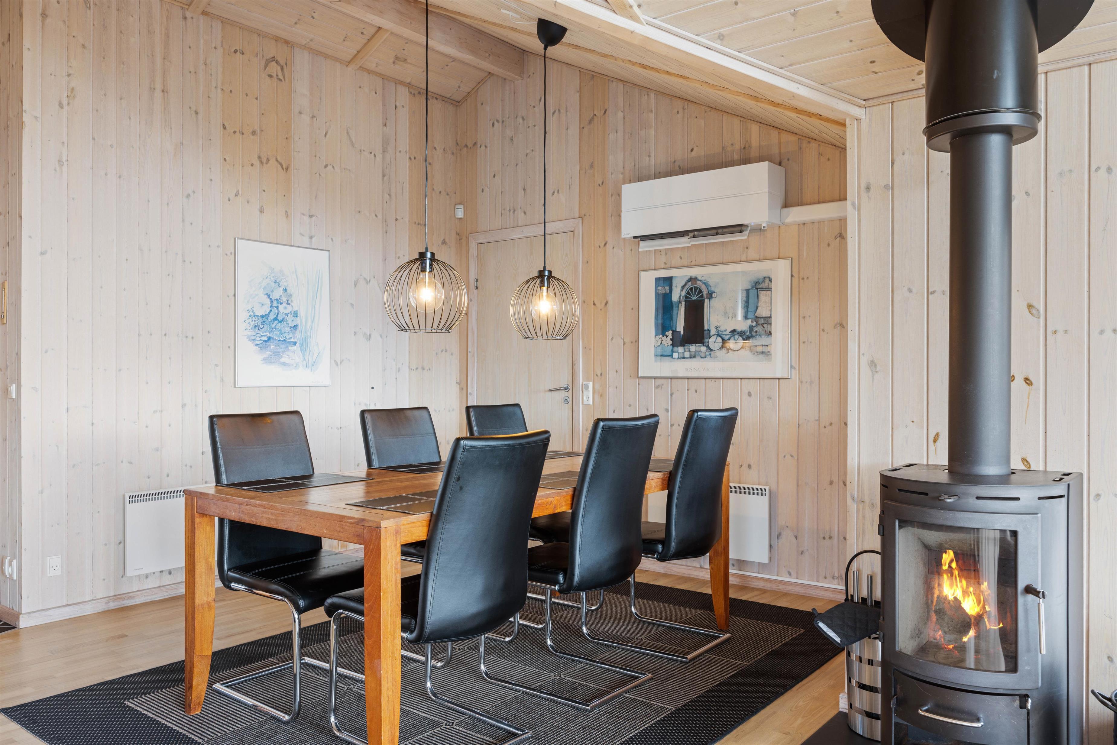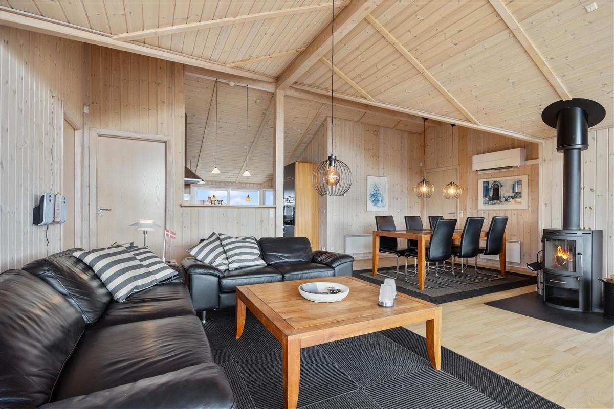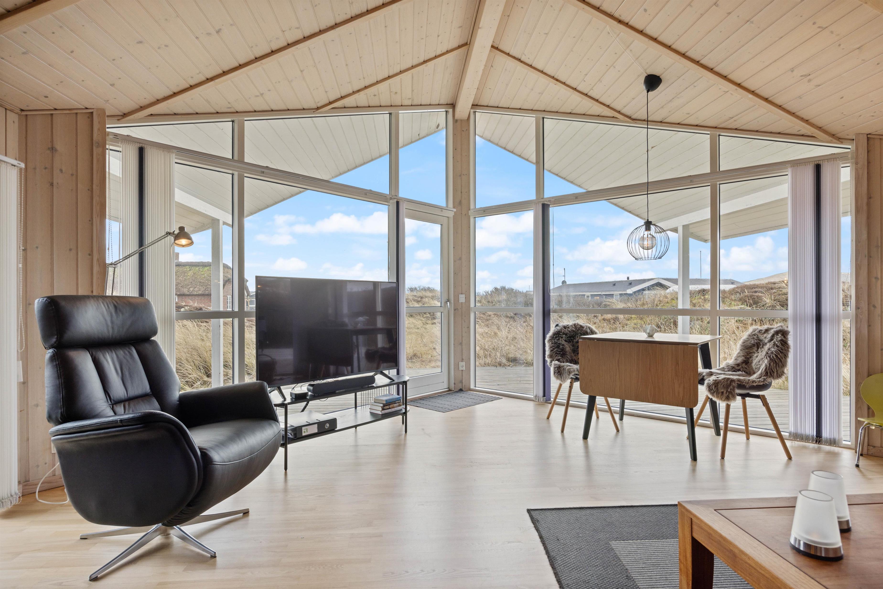 This attractive holiday home is tastefully furnished in an elegant style, built with careful attention to detail. Large windows flood the living room with natural light, creating a bright and welcoming atmosphere.