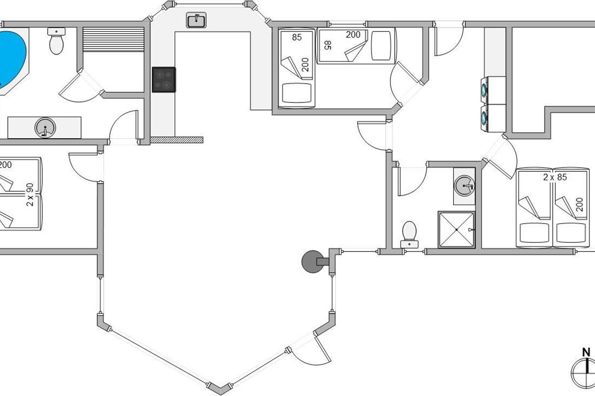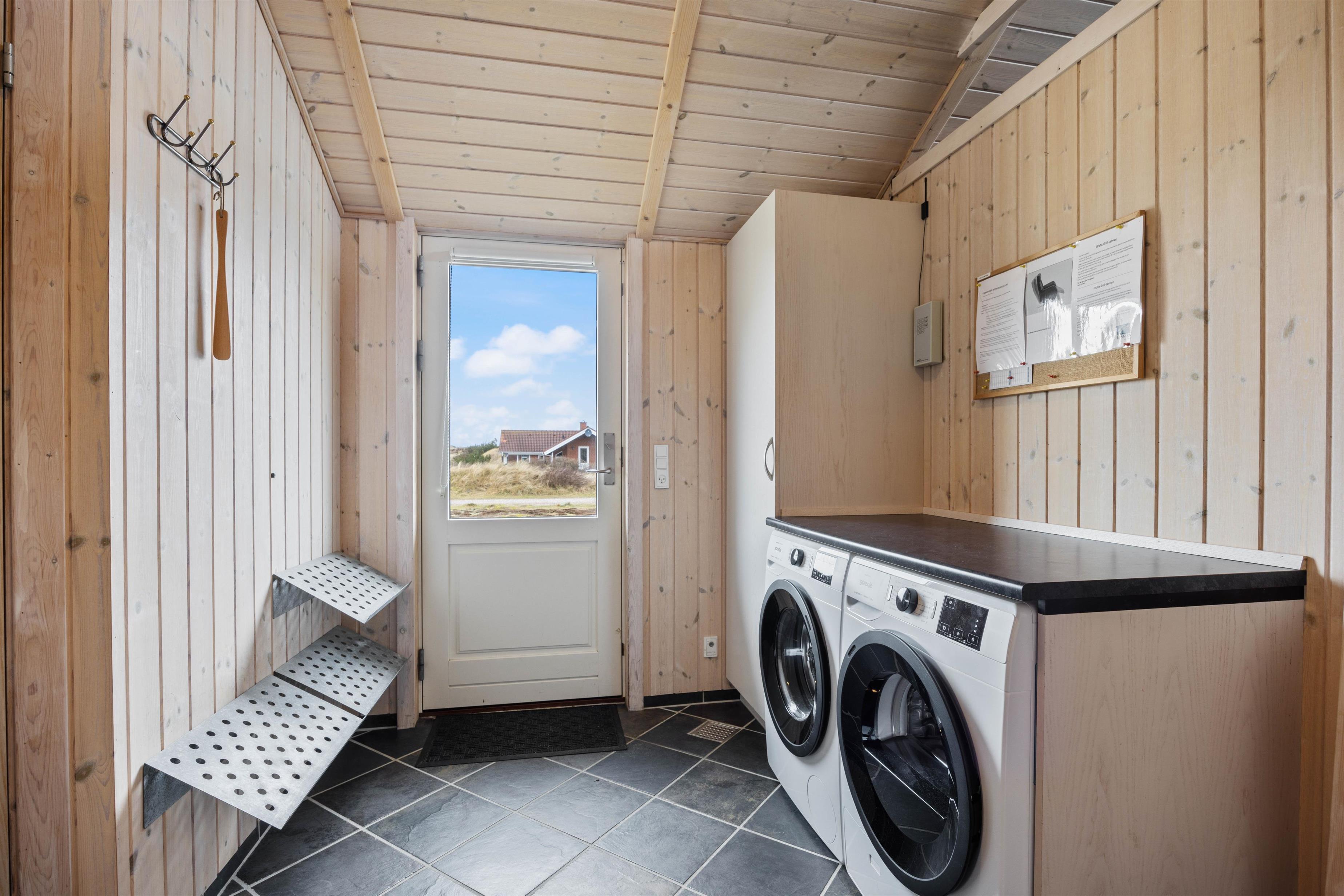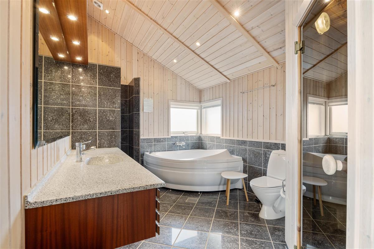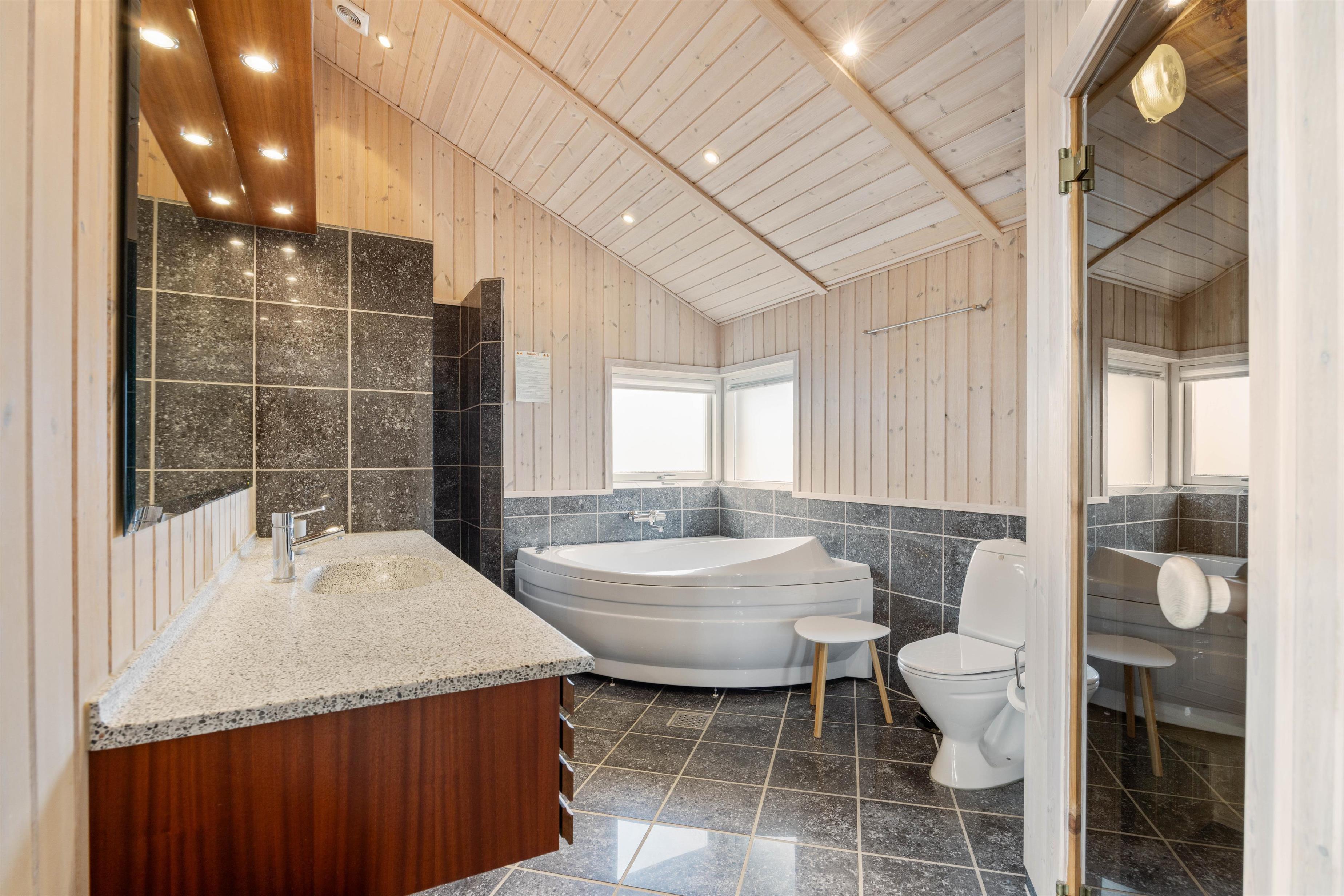 The holiday home has two excellent bathrooms, with the larger bathroom being one of the holiday home's highlights. Here you'll find a wellness haven with sauna and whirlpool, perfect for rejuvenation after an eventful day at the beach. Both bathrooms feature underfloor heating to ensure warm feet. The spacious modern kitchen includes everything you could wish for: dishwasher, microwave, separate freezer and of course a cooker with oven.