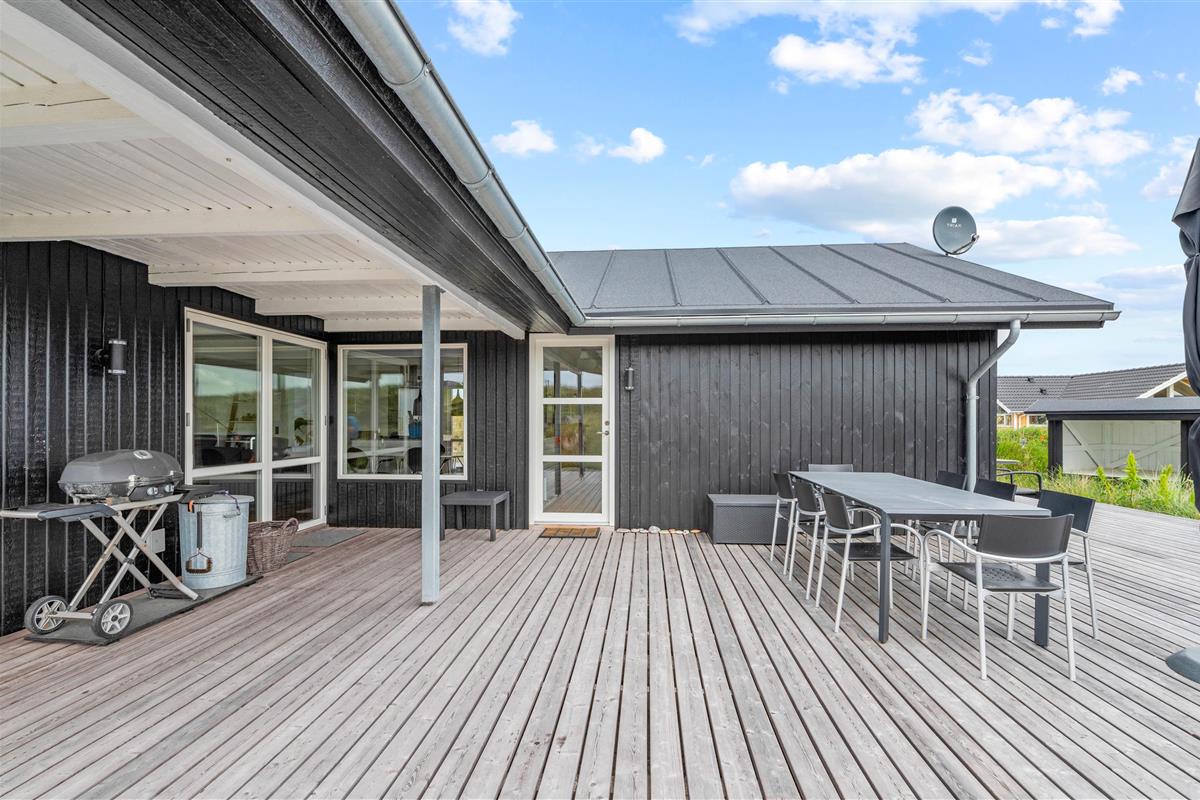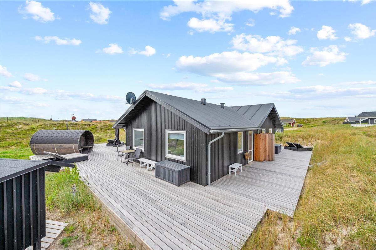 Bjerregård is situated between the Danish West Coast and Ringköbing Fjord in southern Holmsland Klit. The holiday home is just 300 yards from the miles-long sandy beach, and the surrounding nature is unique, featuring large nature reserves with abundant heather and dunes bordering the beautiful North Sea.