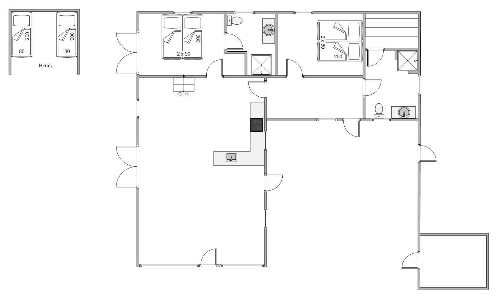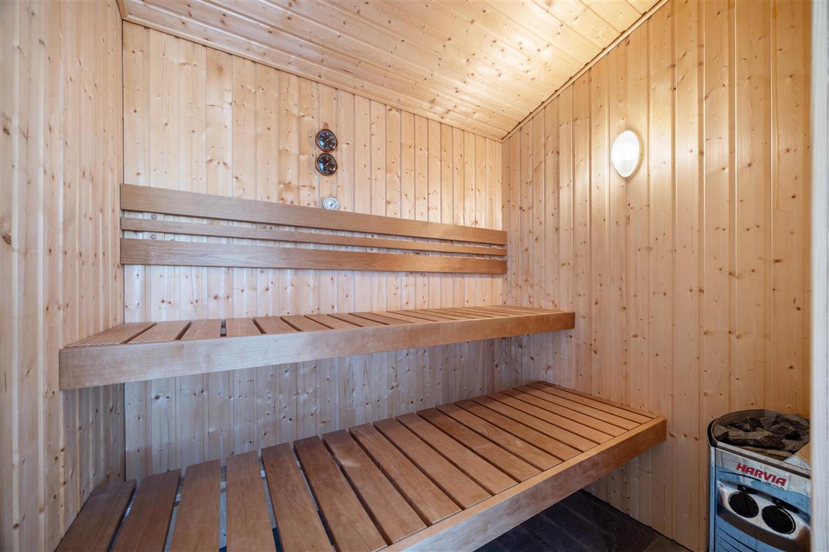 A comfortable bathroom connects directly to one of the two bedrooms, while the second bathroom houses the private sauna where you can thoroughly relax your muscles. Two additional sleeping spaces are located in a mezzanine area, which is particularly popular with children.