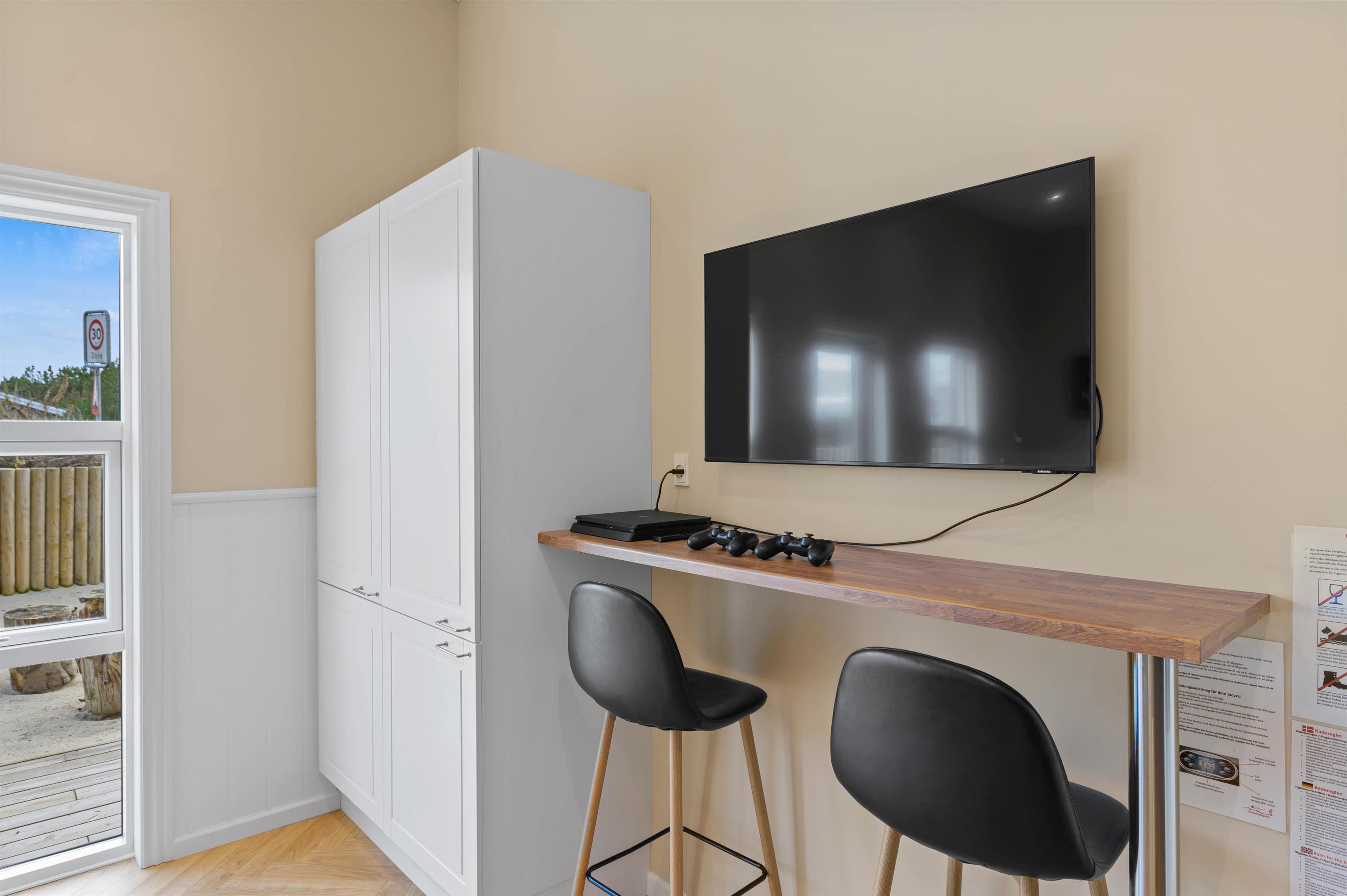 You'll want for nothing in this comfortable holiday home. The bright living area features a flat-screen TV with Apple TV and Chromecast, including three German channels. Perfect for a film night on the comfortable sofa. The crackling wood-burning stove creates a cosy atmosphere. For those seeking more activity, the games room offers pool and table tennis, plus a second TV with PlayStation.
