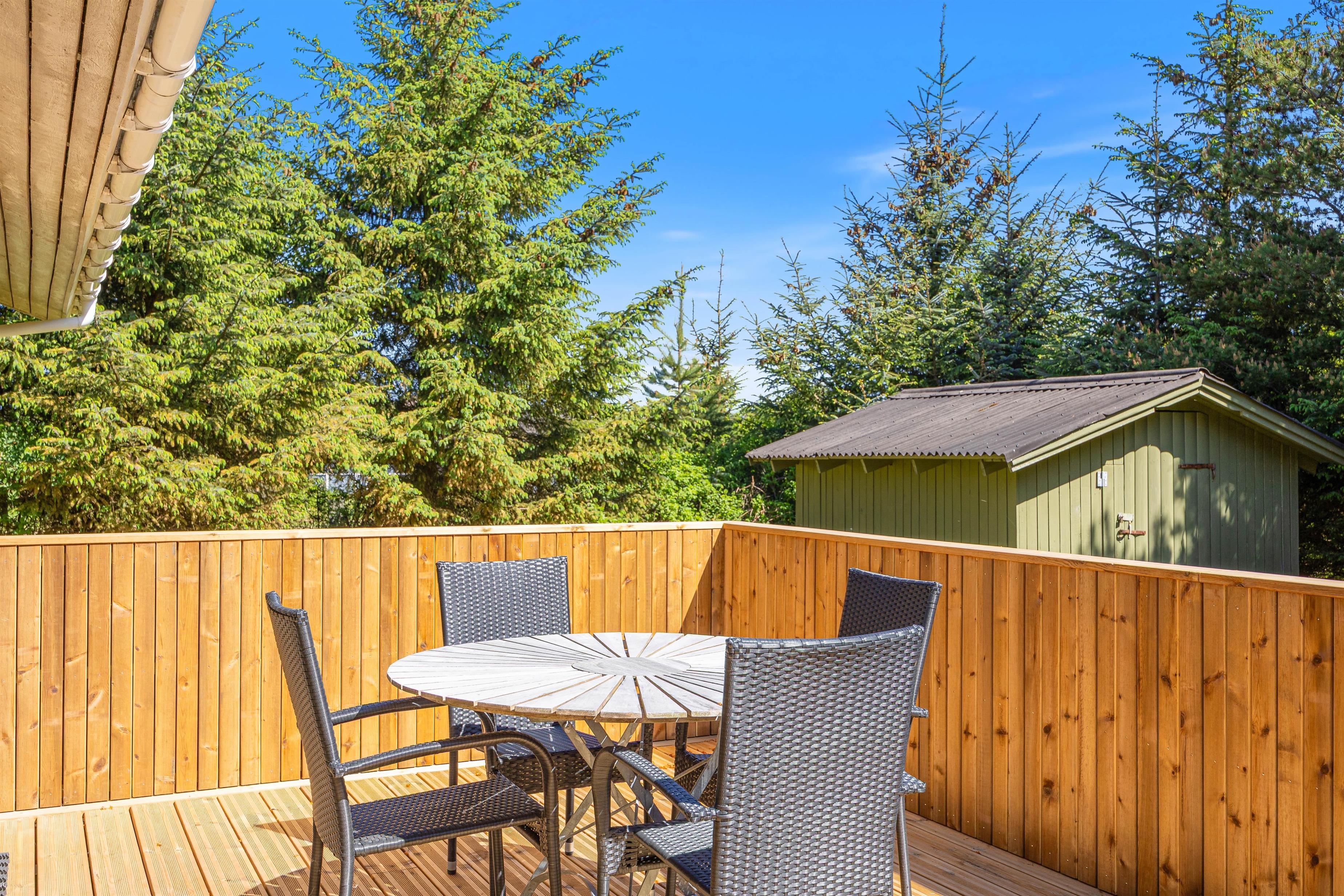 The large wood-clad and partially covered terrace comes equipped with garden furniture, sun loungers and a barbecue for outdoor dining. The fine sandy beach is within walking distance (0.6 miles/1,000 metres) and the local shop for daily necessities is also nearby (0.3 miles/500 metres).