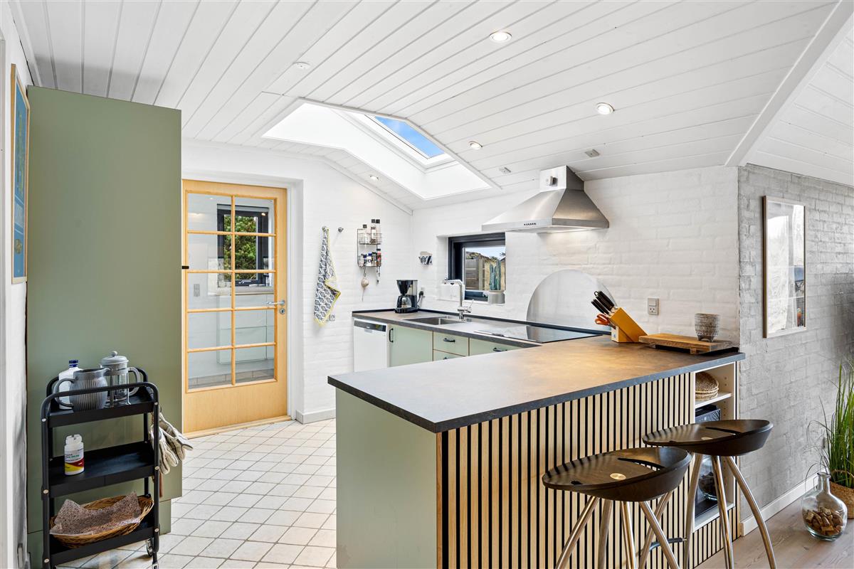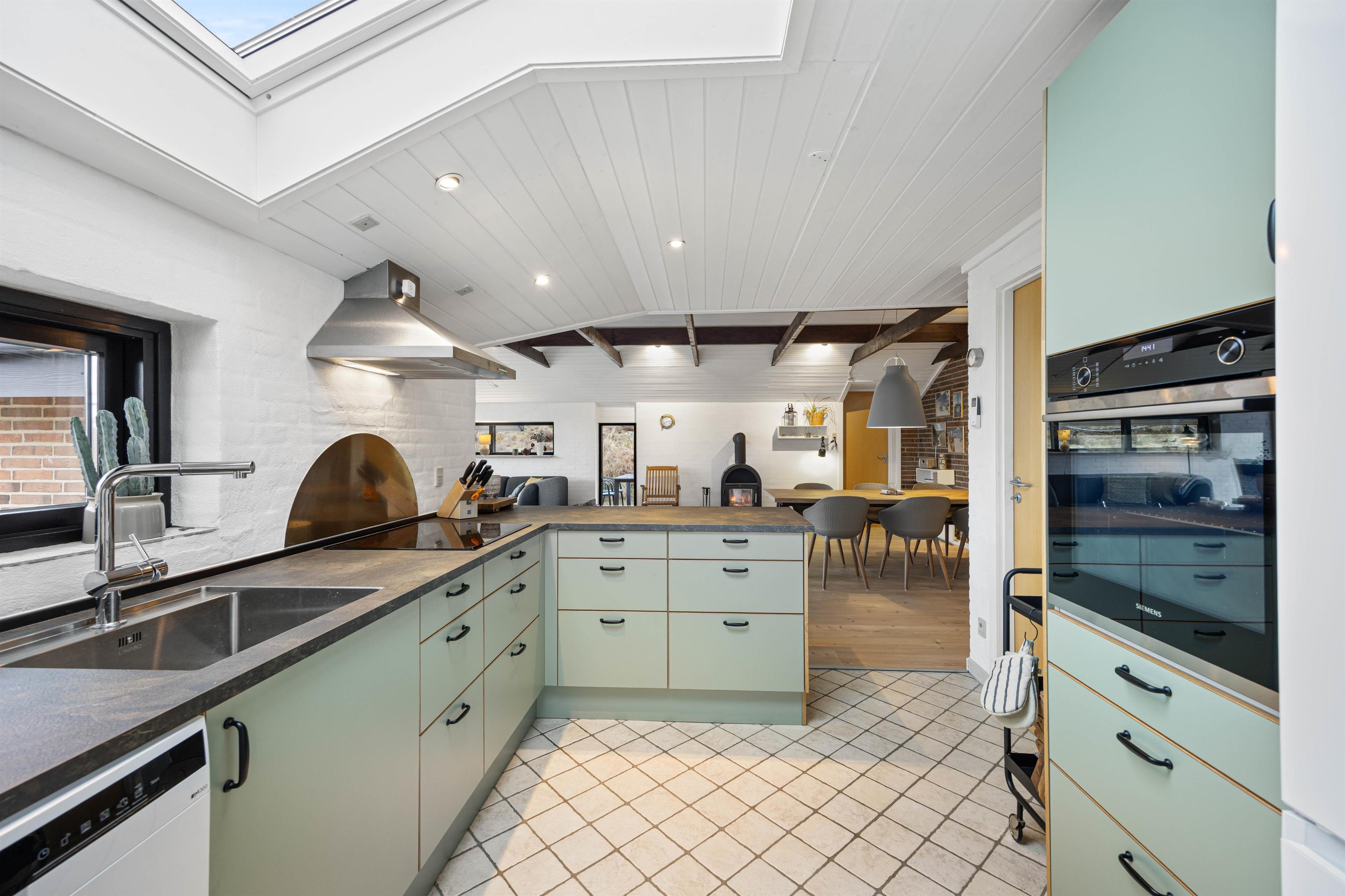 The holiday home at Bjerregårdsvej 316 sits on beautiful natural grounds with four terraces, just 500 metres from the sea. After a morning walk to the local shop, enjoy breakfast with your family on one of the surrounding terraces, moving to another later in the day for coffee or quiet reading time. The quality gas barbecue is perfect for evening dining - this holiday home offers countless possibilities.