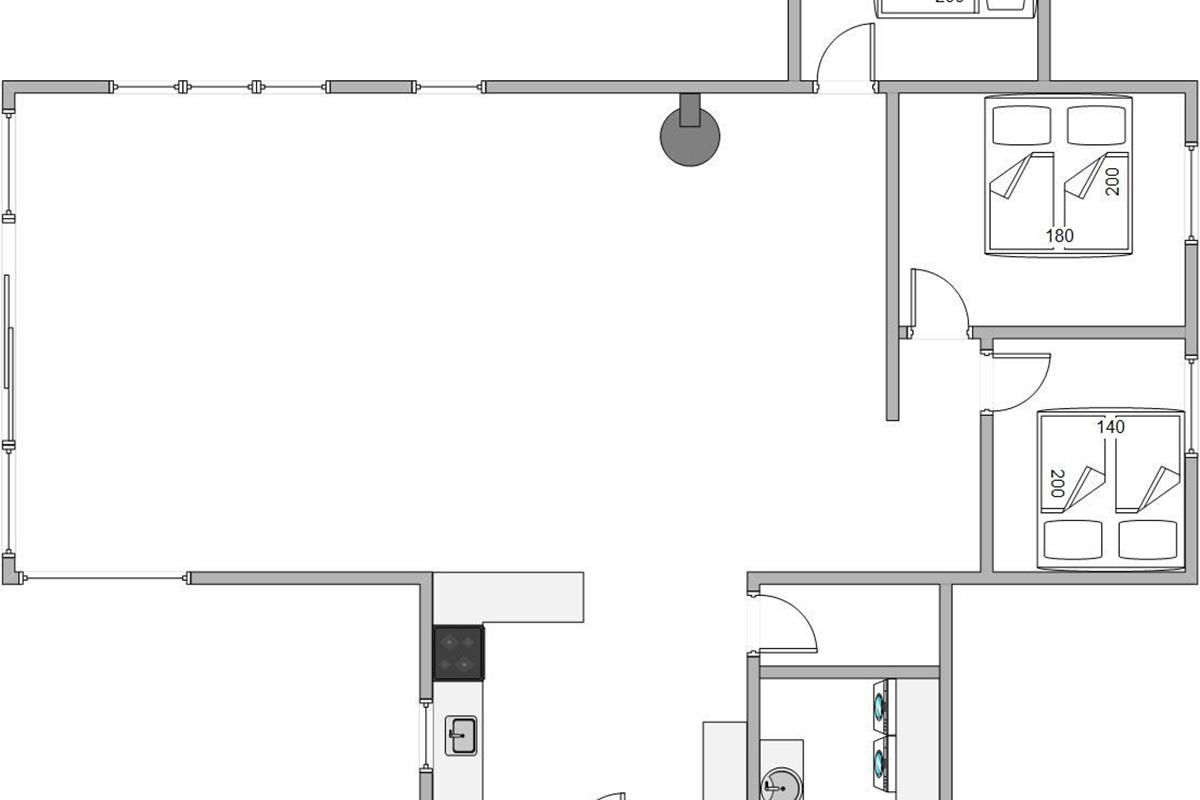This gem of a holiday home has three bedrooms: two with large double beds and one with a double bed (140 cm x 200 cm), providing ample space for peaceful nights of sleep.