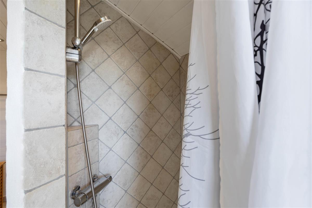 This 123-square-metre holiday home features a well-equipped kitchen with dishwasher, Nespresso coffee machine, wine cooler and microwave, opening into the welcoming living area. The spacious living space is tastefully furnished, with furniture that beautifully complements the light ceilings and dark ceiling beams, giving the summer house both an open and cosy feel.