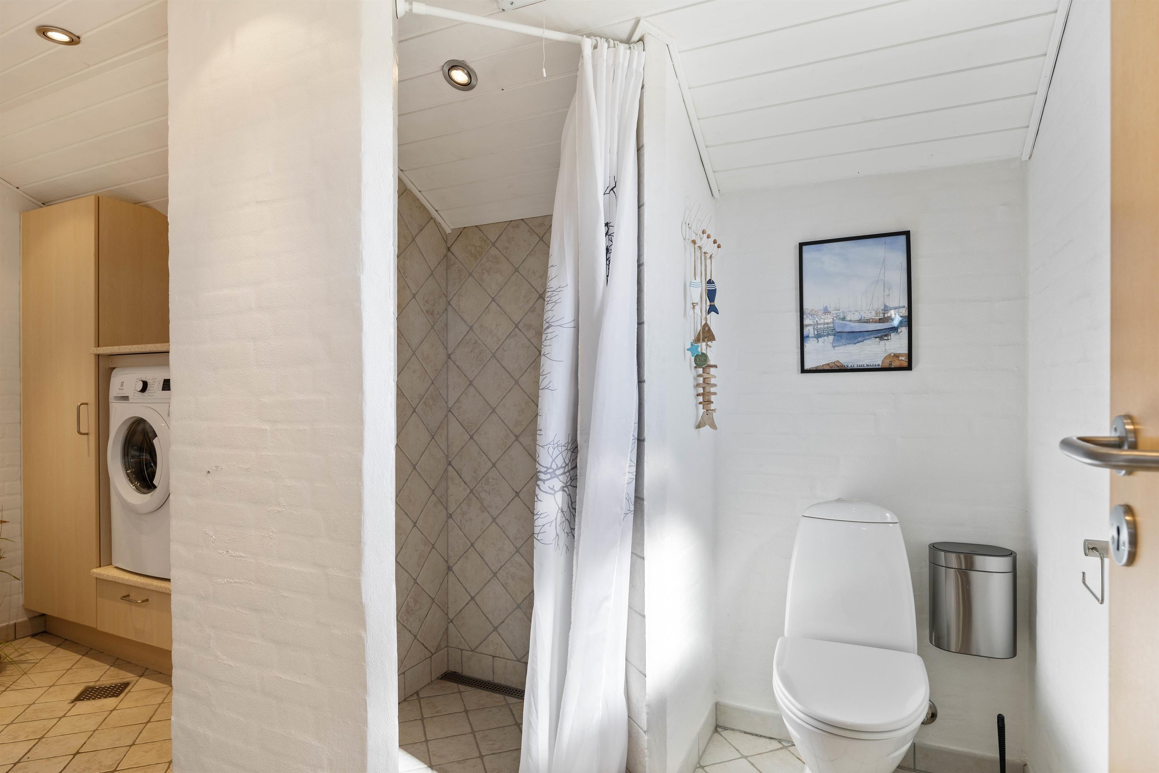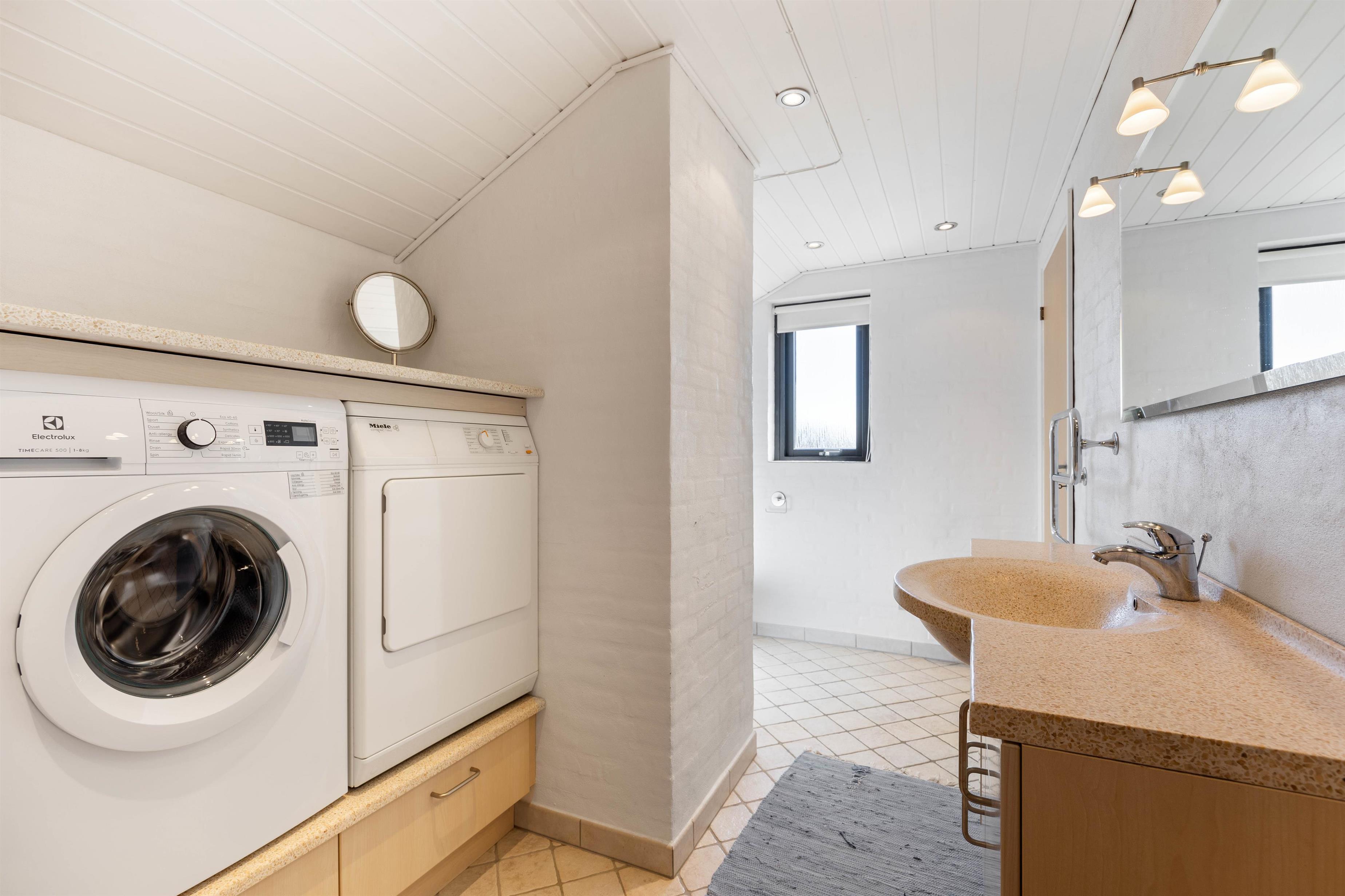 The summer house at Bjerregårdsvej 316 features a bathroom with underfloor heating, washing machine and tumble dryer. Towels can be quickly washed after a trip to the expansive sandy beach, ready for your next day's adventure.
