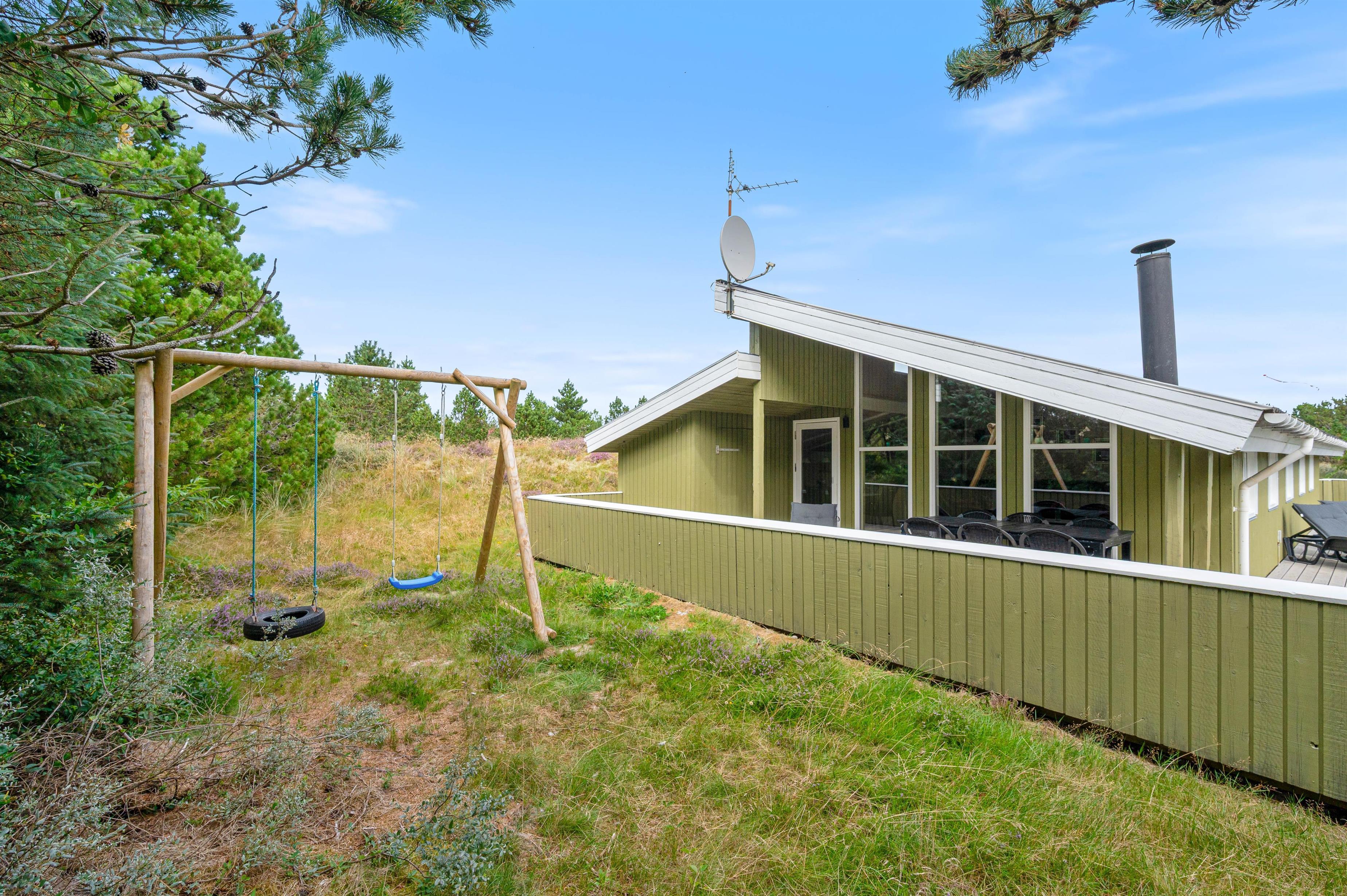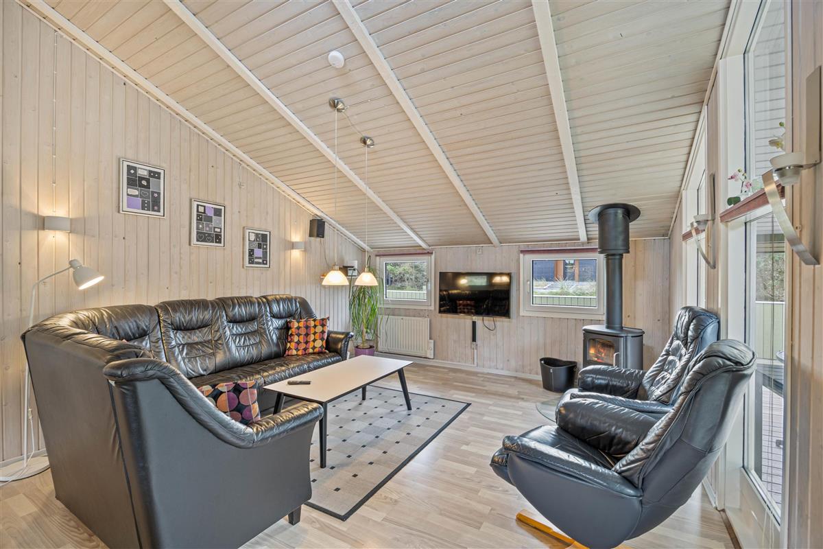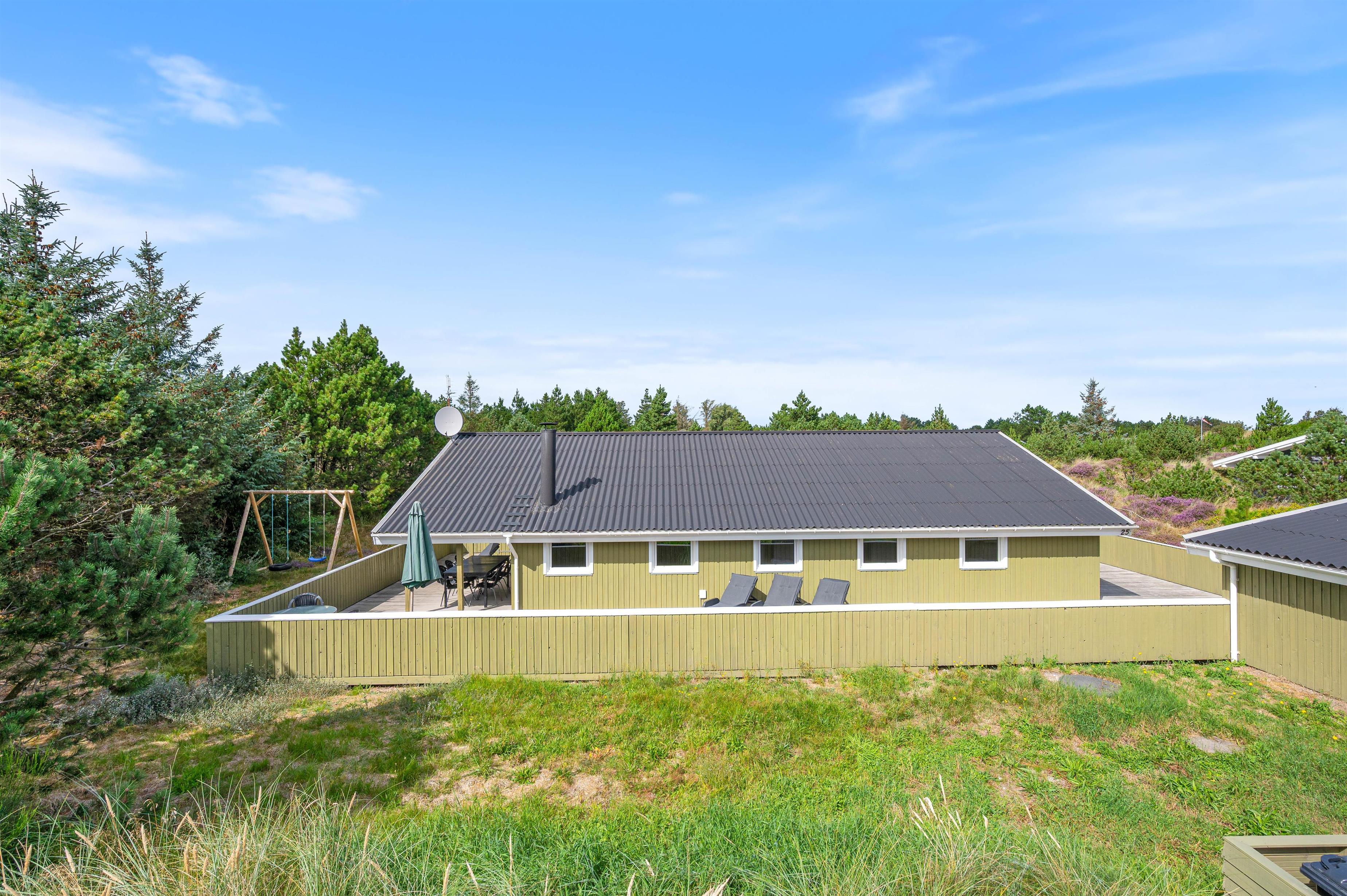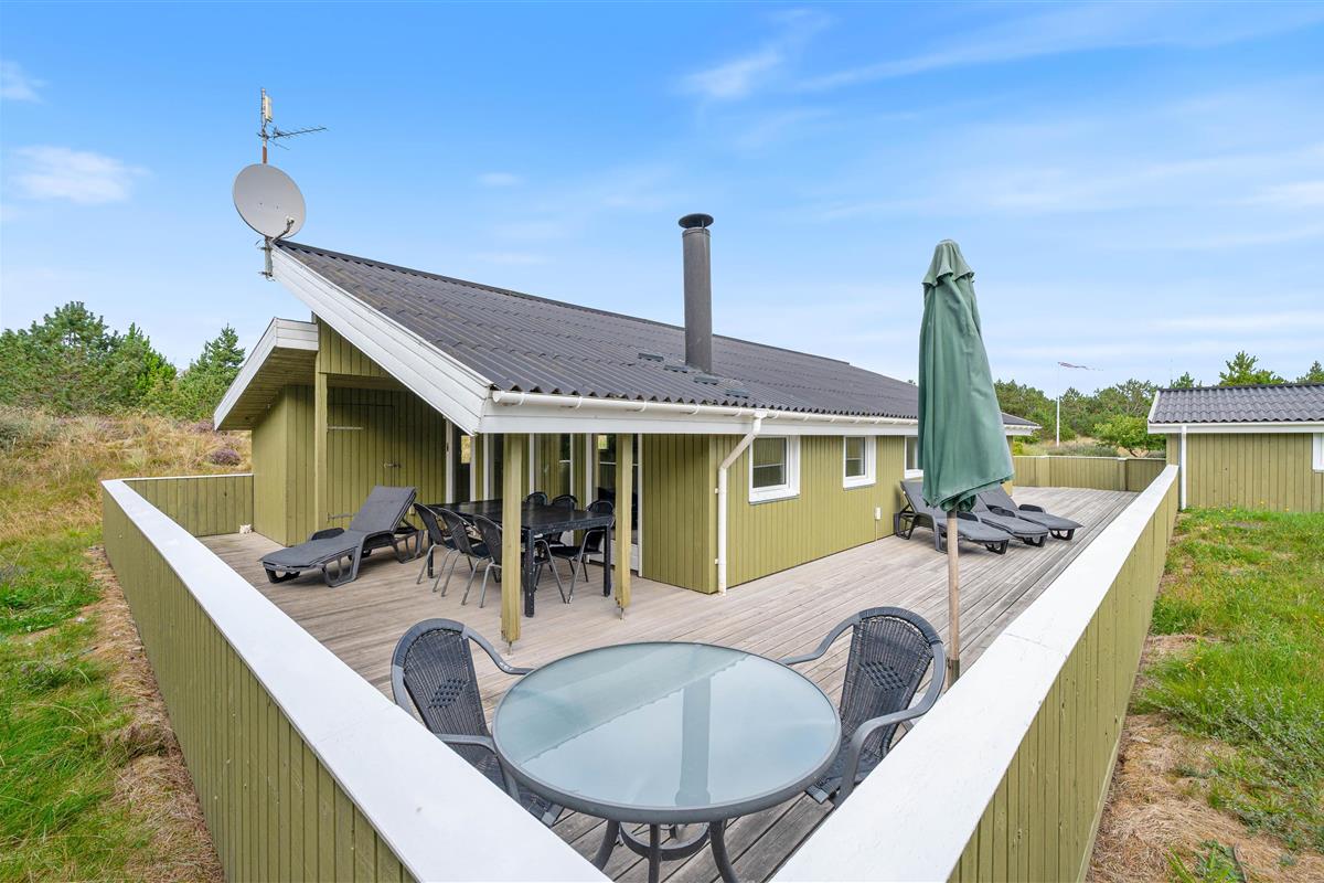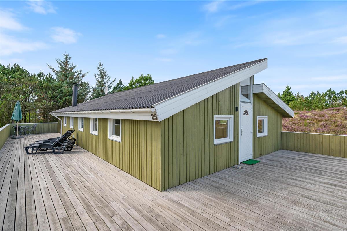 This well-maintained holiday home sits on a beautiful natural plot at Bjerregårdsvej 25. The holiday home accommodates up to 8 people and features practical amenities including a main bathroom and guest toilet. Comfortably and practically furnished, the holiday home offers comfortable furniture, a dishwasher, washing machine and tumble dryer. Outside, there's a lovely enclosed terrace that wraps around the house, offering multiple seating areas.