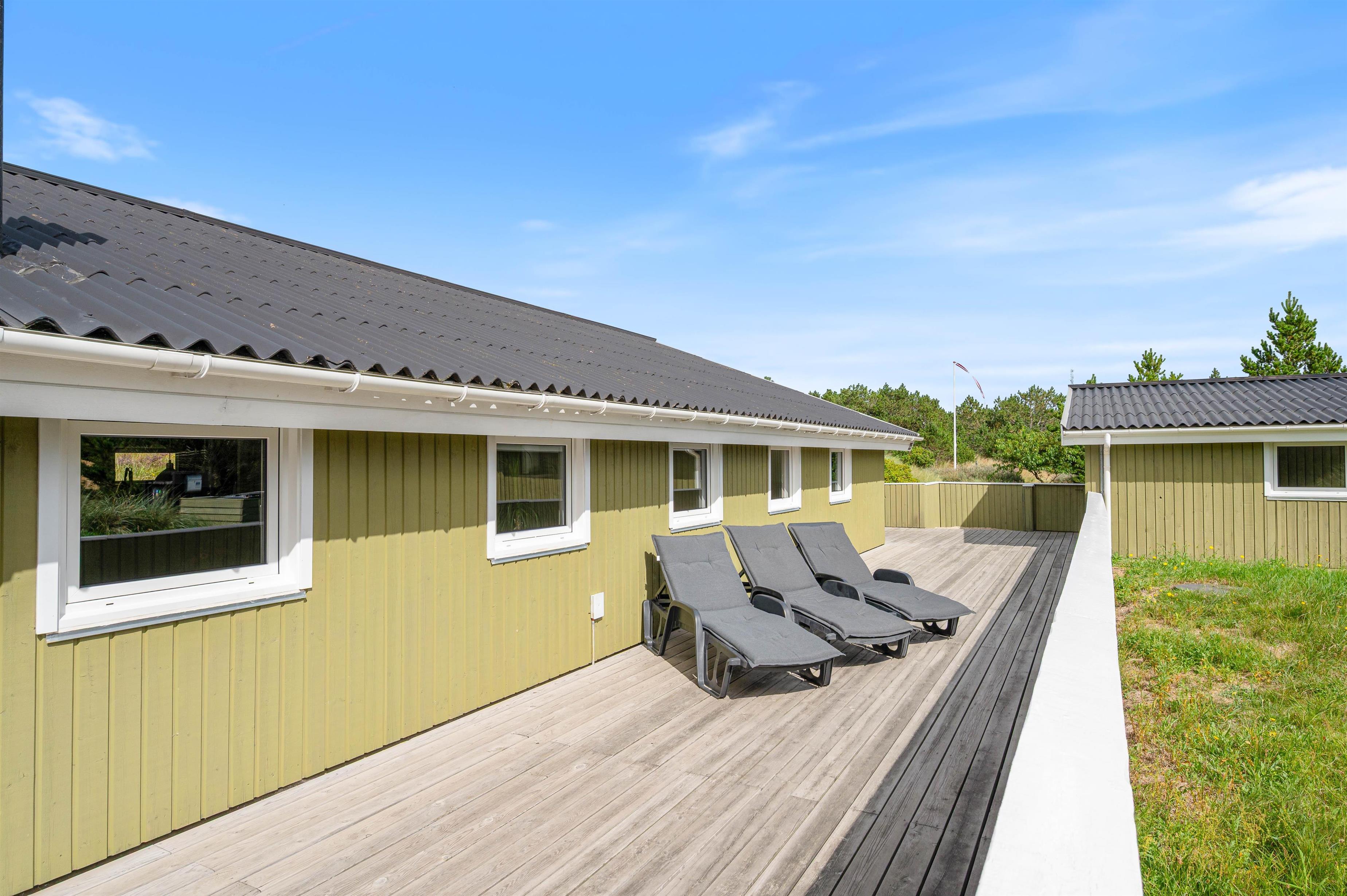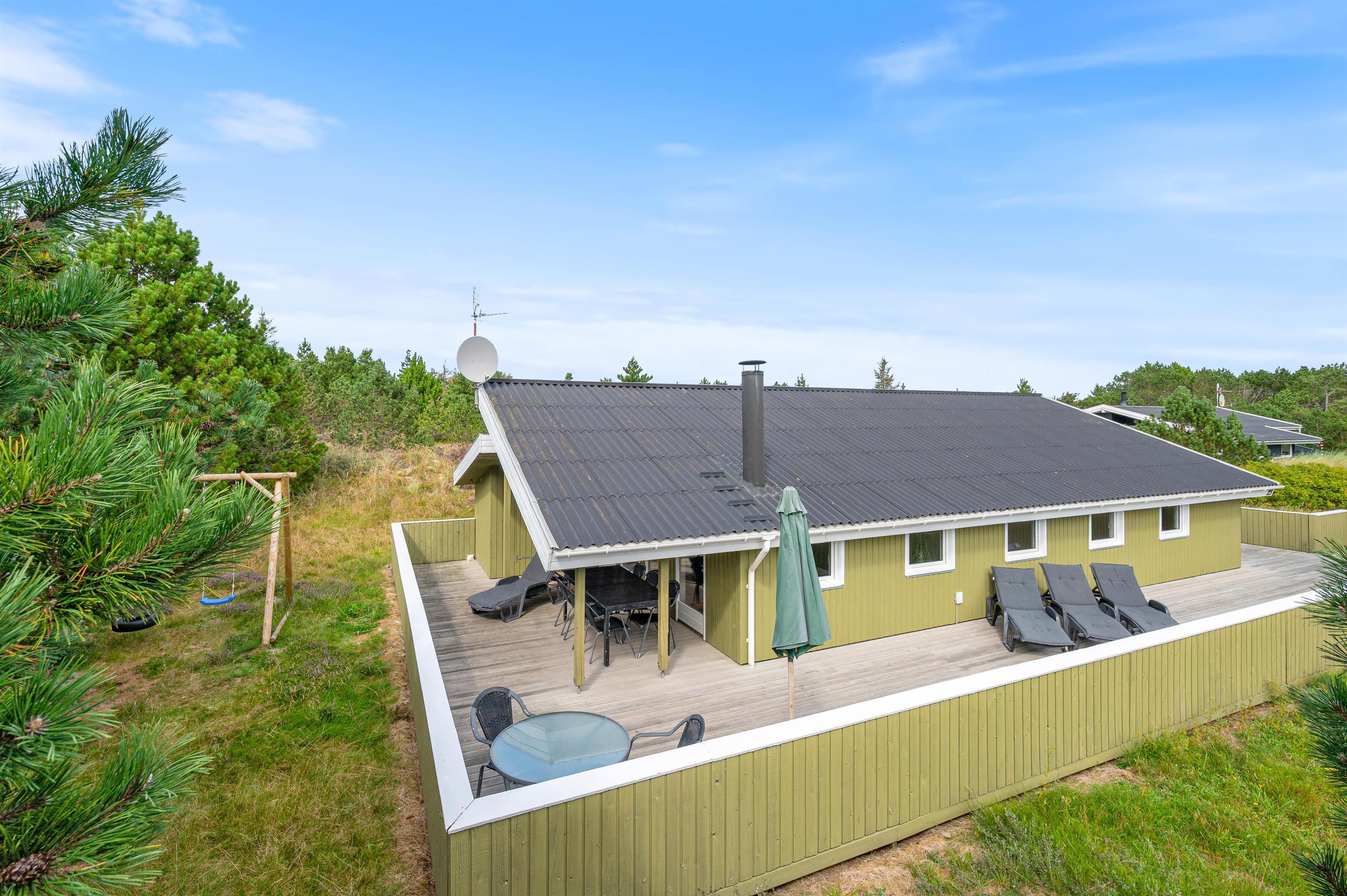The holiday home features a wonderful enclosed terrace where children can play safely without constant supervision. The terrace extends along three of the four sides of the house, offering numerous cosy spots for sunbathing or simply listening to nature while enjoying the salty sea breeze.