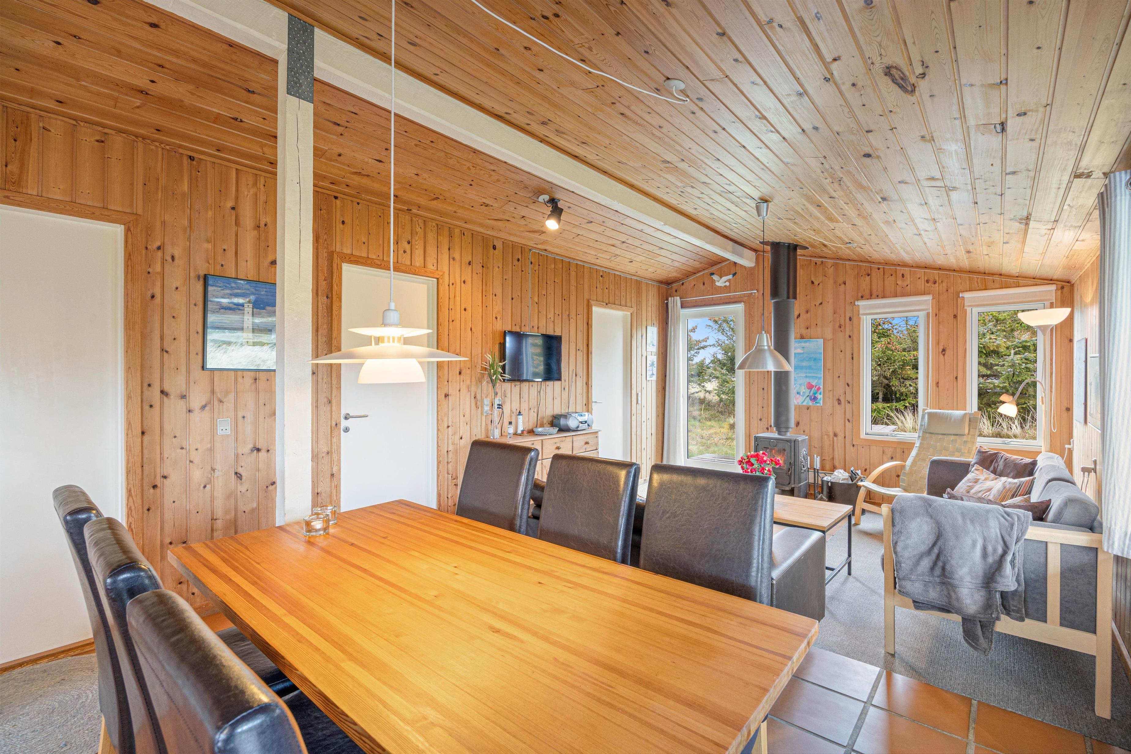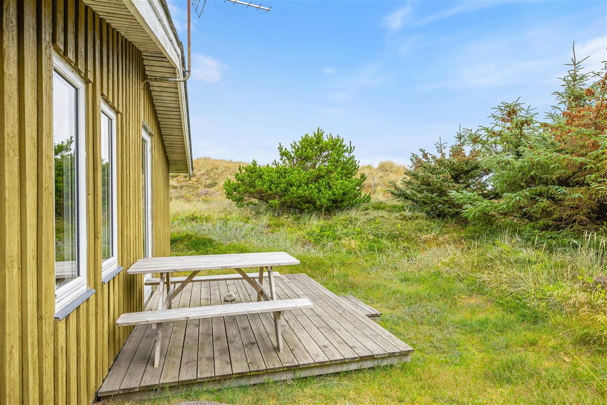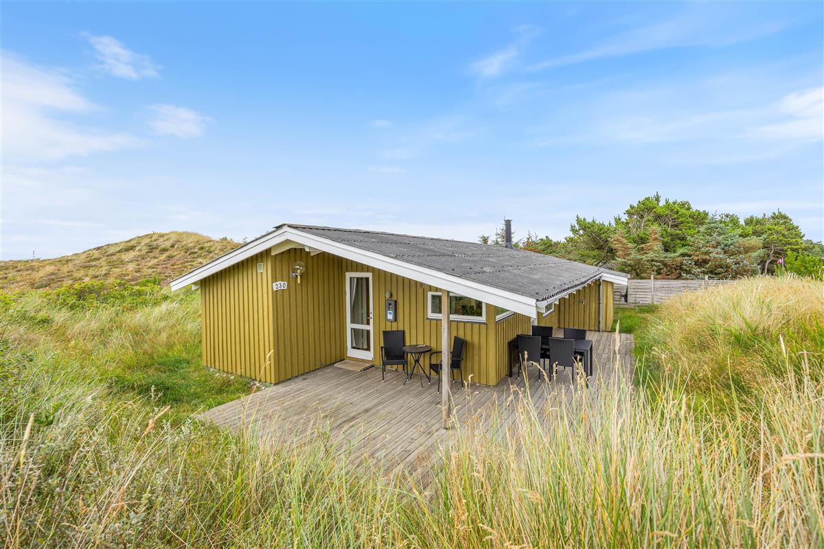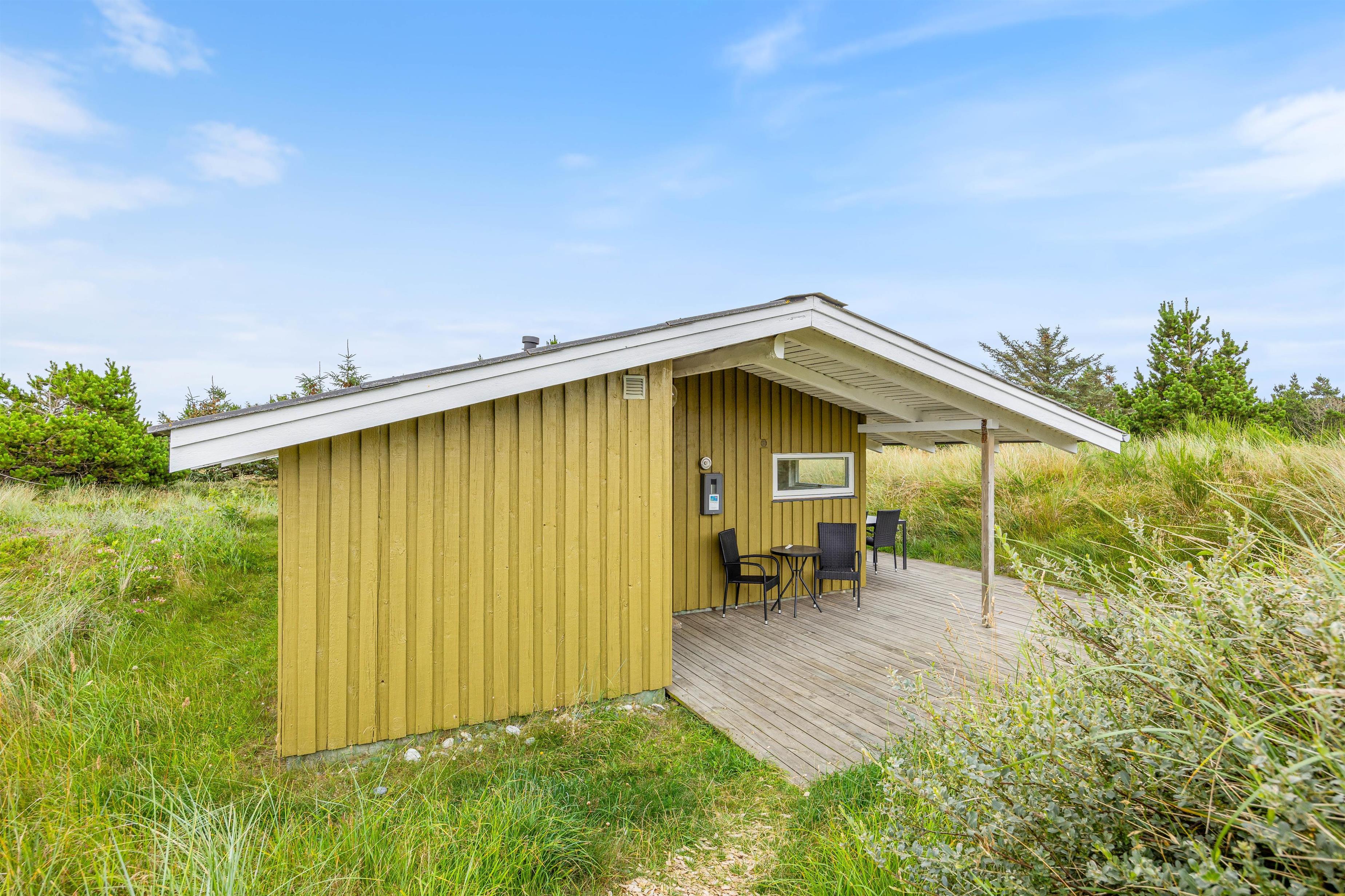 Your holiday home can be described as a truly cosy wooden house, beautifully maintained and peacefully situated in Bjerregård. It sits naturally sheltered in a small dune hollow.