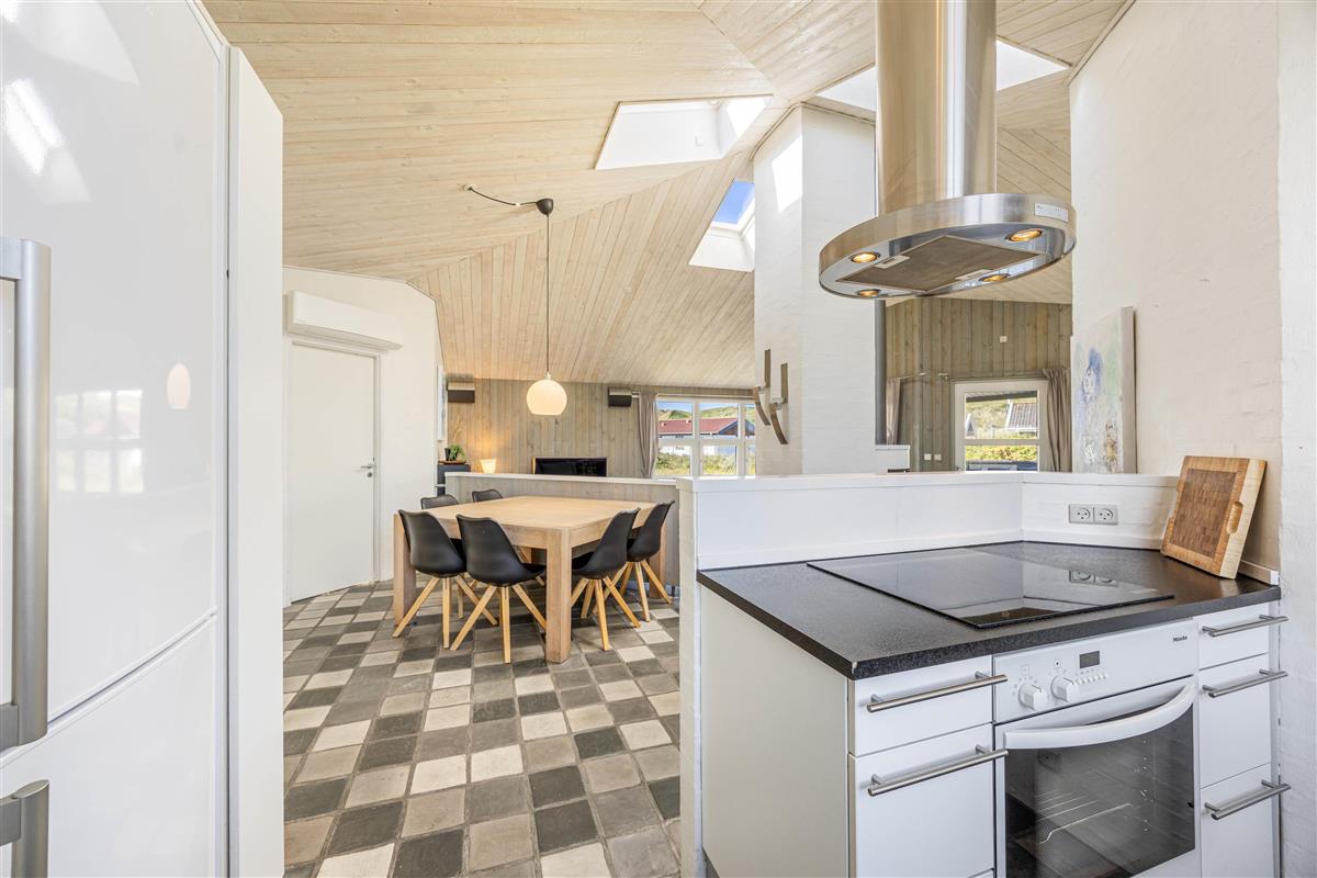 This beautiful holiday home for 6 people is located in a quiet cul-de-sac at Bjerregårdsvej 402, close to the North Sea. The wooden bungalow impresses with its unique layout and choice of interior materials. Relax beside the wood-burning stove or unwind in the whirlpool - this is the perfect place to slow down and recharge.