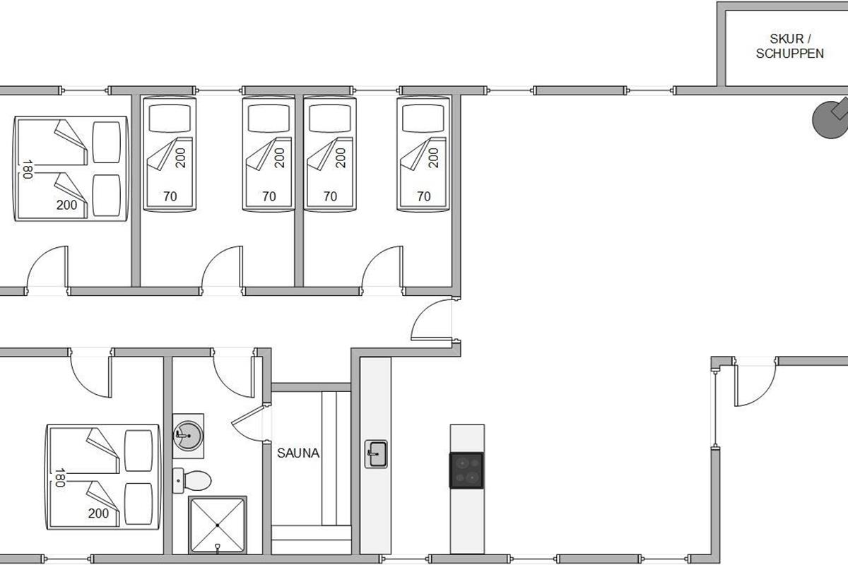 At Arvidvej 37, a spacious and comfortably furnished holiday home awaits you in a pleasant neighbourhood of other holiday properties. Listen to the sound of the sea and enjoy the fresh air from the covered terrace or relax in a lounger on the south-facing terrace. This beautiful holiday home can accommodate up to 8 people for a relaxing break. The holiday home's kitchen and bathroom are renovated in 2025.