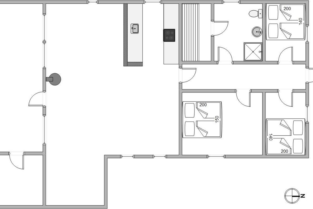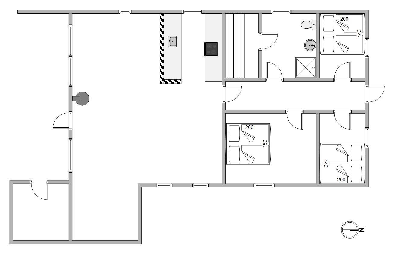 The holiday home sleeps 6 people across 3 bedrooms. There is one bedroom with a double bed and two bedrooms each with a slightly narrower double bed. The bathroom features a shower cubicle, underfloor heating and a sauna. The holiday home also offers a lovely open-plan kitchen with a dishwasher, so you won't need to worry about washing up.
