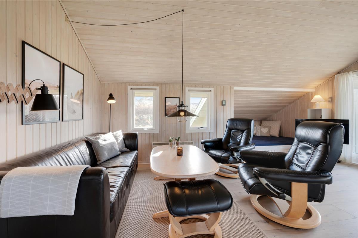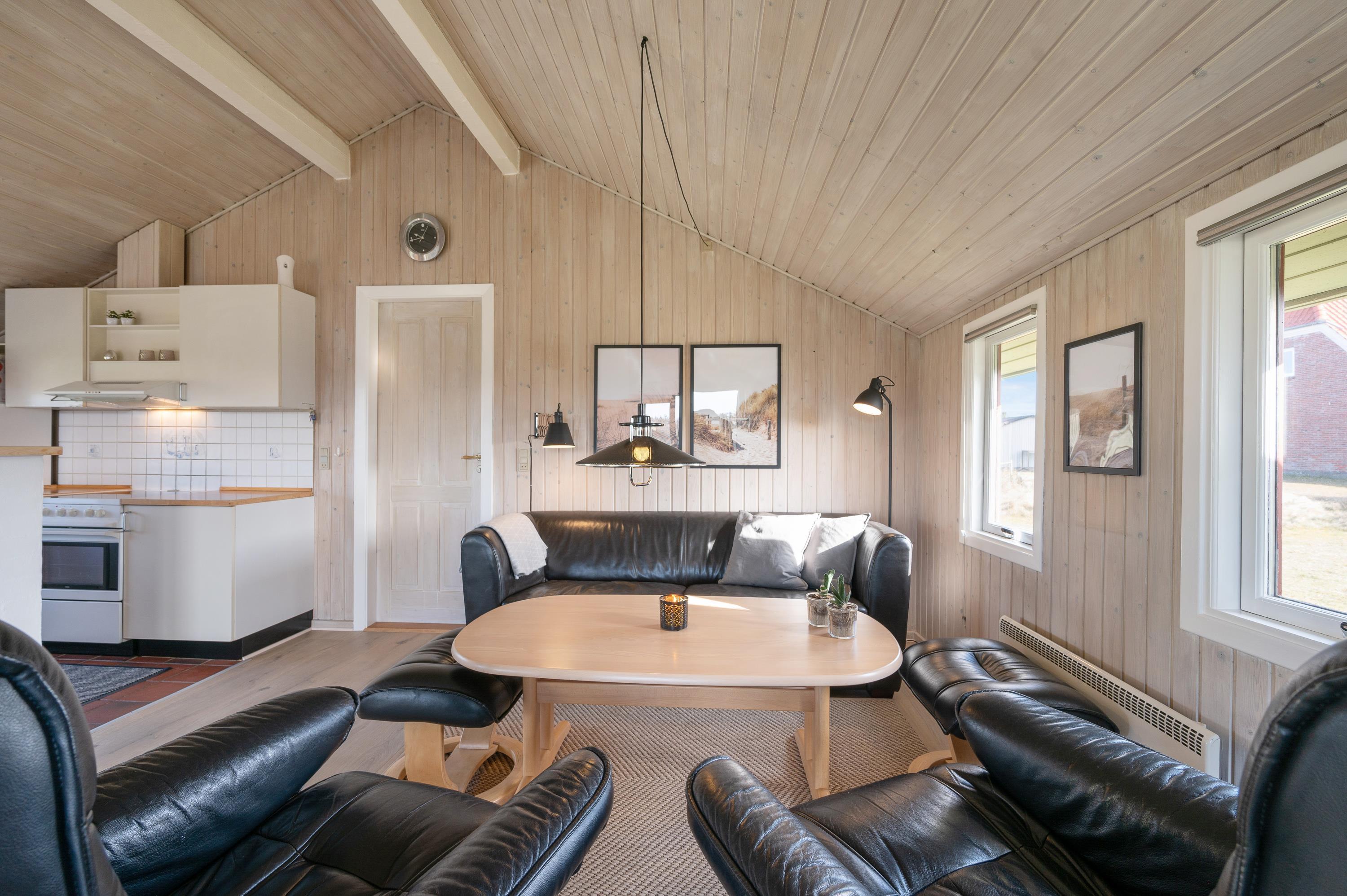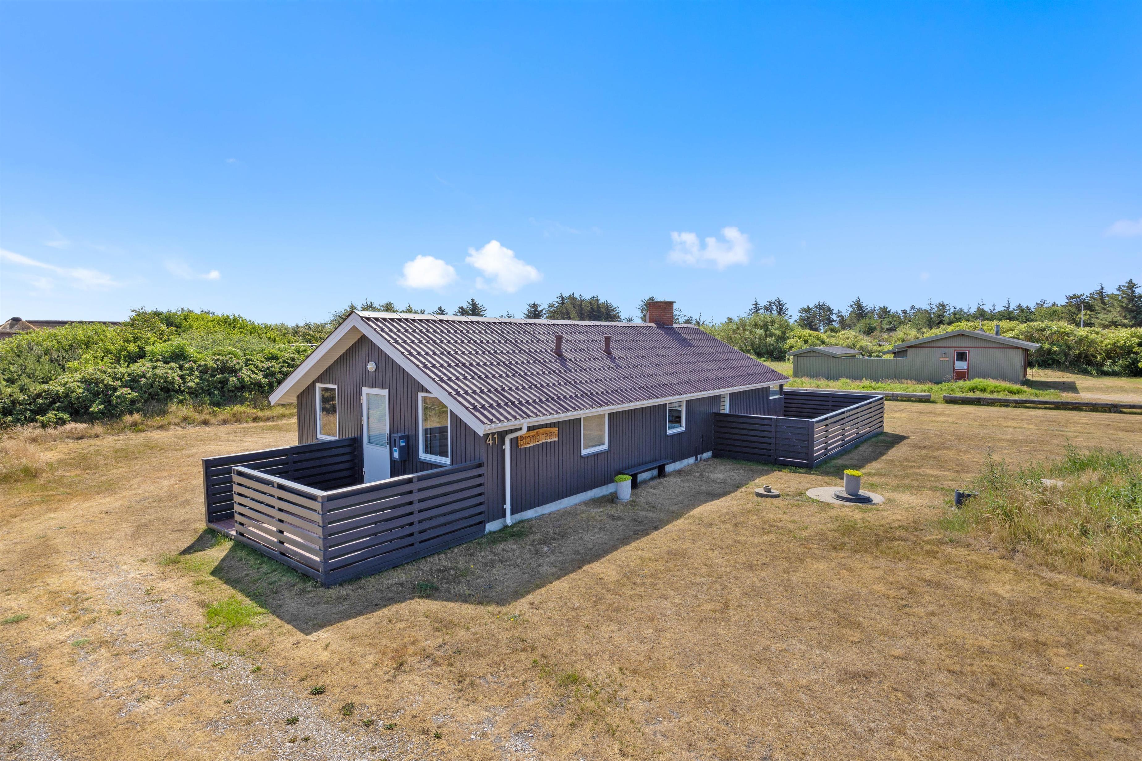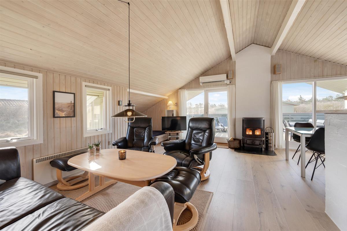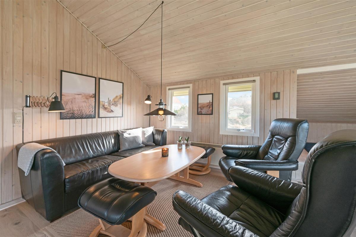 The holiday home is nestled within the tranquil dune landscape of the West Coast, where you can immerse yourself in nature and enjoy extensive walks. For shopping and dining out, Hvide Sande is within easy reach.