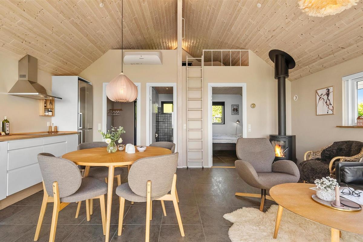 De moderne, hoogwaardige inrichting in het woon- en slaapgedeelte creëert een gezellige sfeer waardoor je je vanaf het eerste moment thuis zult voelen. Vanuit de open woonkamer met panoramische ramen heb je altijd uitzicht op het glinsterende water terwijl je samen kookt of ontspannende uren doorbrengt voor de houtkachel.