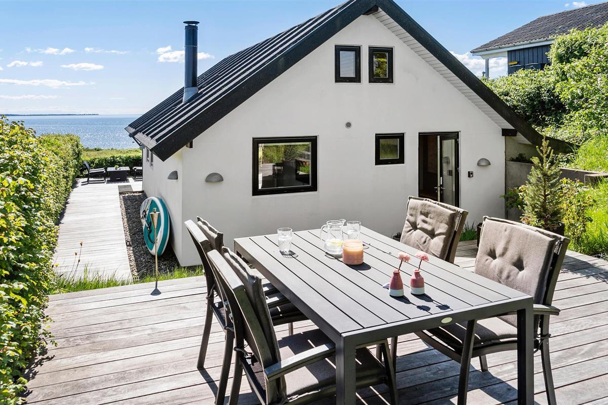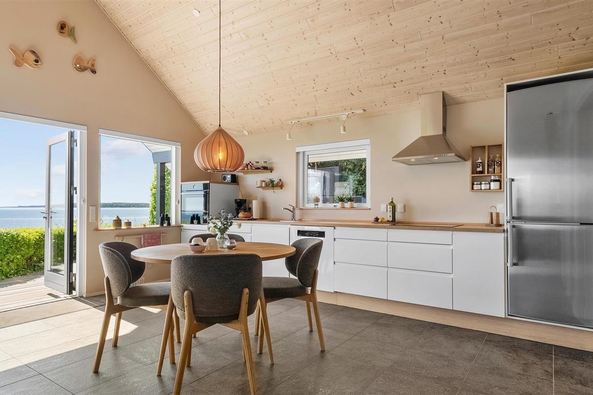 Geniet van het fantastische uitzicht op de Kleine Belt in dit stijlvolle en lichtovergoten vakantiehuis.