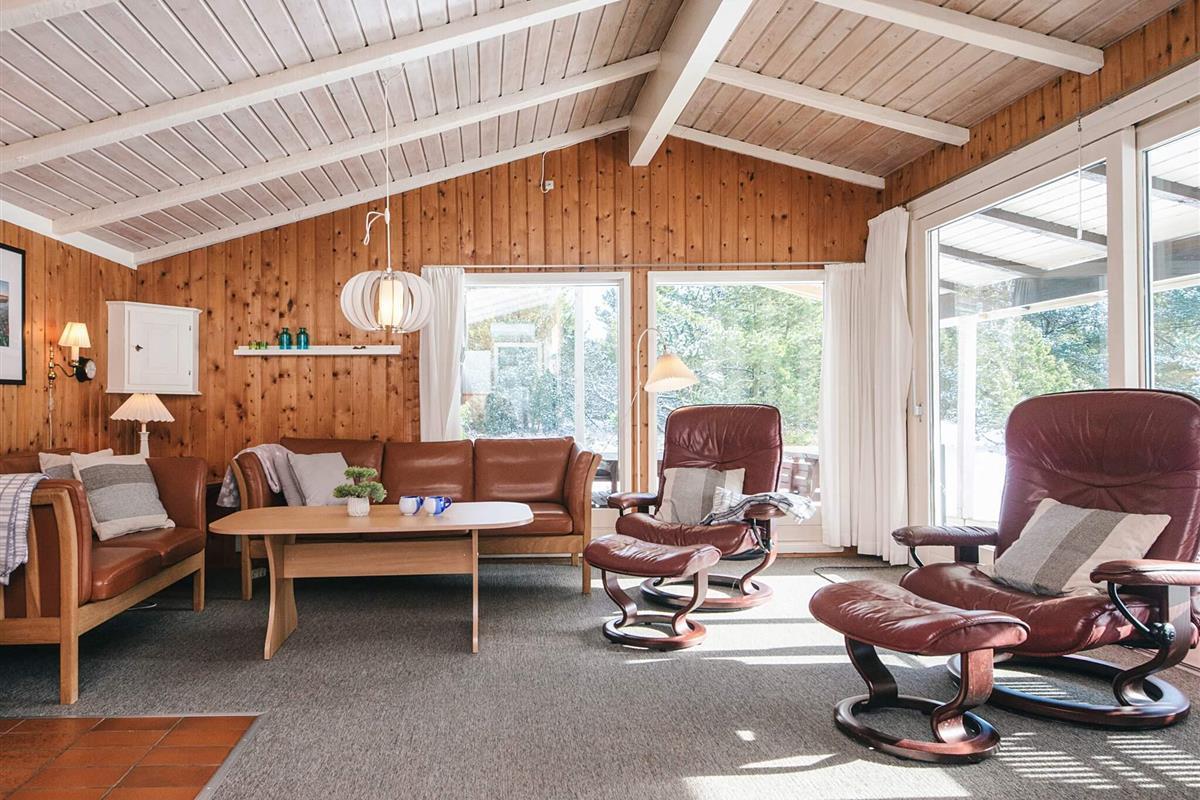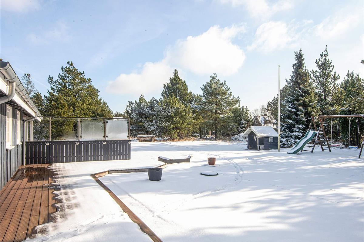 Ferienhaus auf einem großen Naturgrundstück und mit einer weitläufigen Terrassenfläche. Im Jahr 2022 erhält das Ferienhaus ein neues Badezimmer und einen neuen Eingangsbereich. In Verbindung mit dem Carport gibt es ein Depot mit extra Kühl-/Gefrierschrank, diverse Spiele für den Garten und Stauraum.