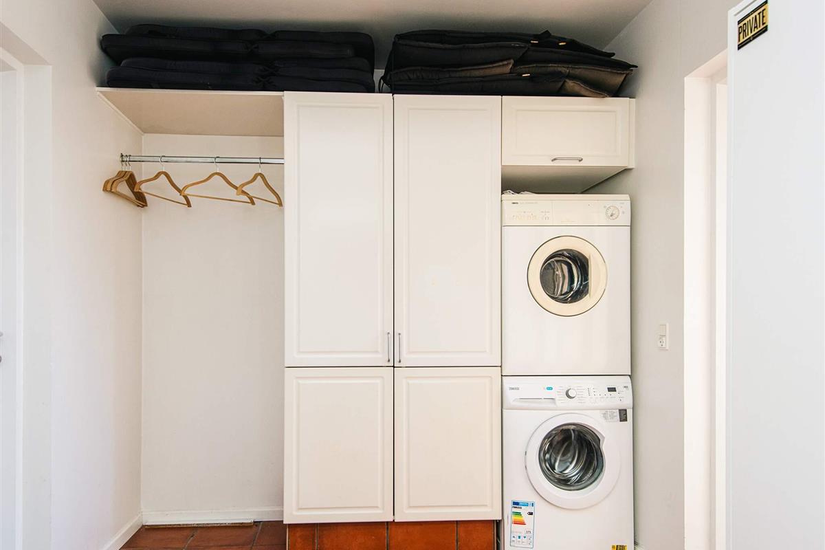 Off. Küche: E-Herd, Kühlschr. m. Gefrierfach, Mikrow., Abzugsh., Kaffeem., Spülm., Waschm, Trockner