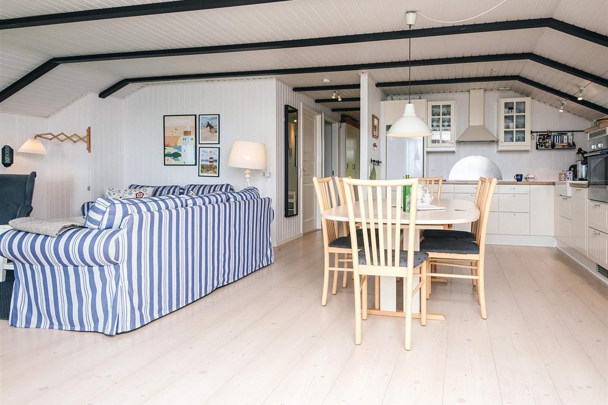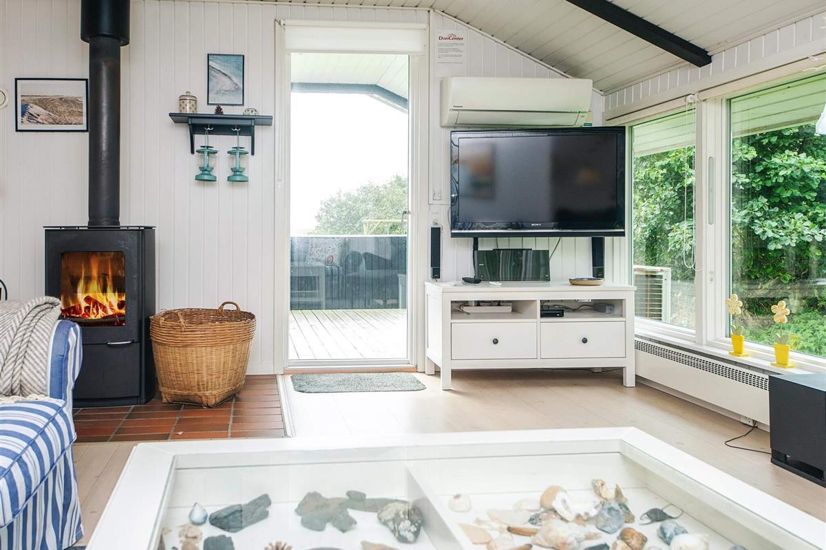 Ferienhaus mit Panoramablick über Marschland und Deiche. Es wurde 2013 renoviert. Gut eingerichtetes Wohnzimmer mit Holzofen, Flachbild-TV und Nintendo-Wii. Ein Whirlpool sorgt für Entspannung. Die Terrasse wurde 2015 renoviert. Nur fünf Minuten Fußweg vom Haus entfernt liegt der Hvidbjerg Strand, wo man wegen der Buhnen gute Badeverhältnisse vorfindet.