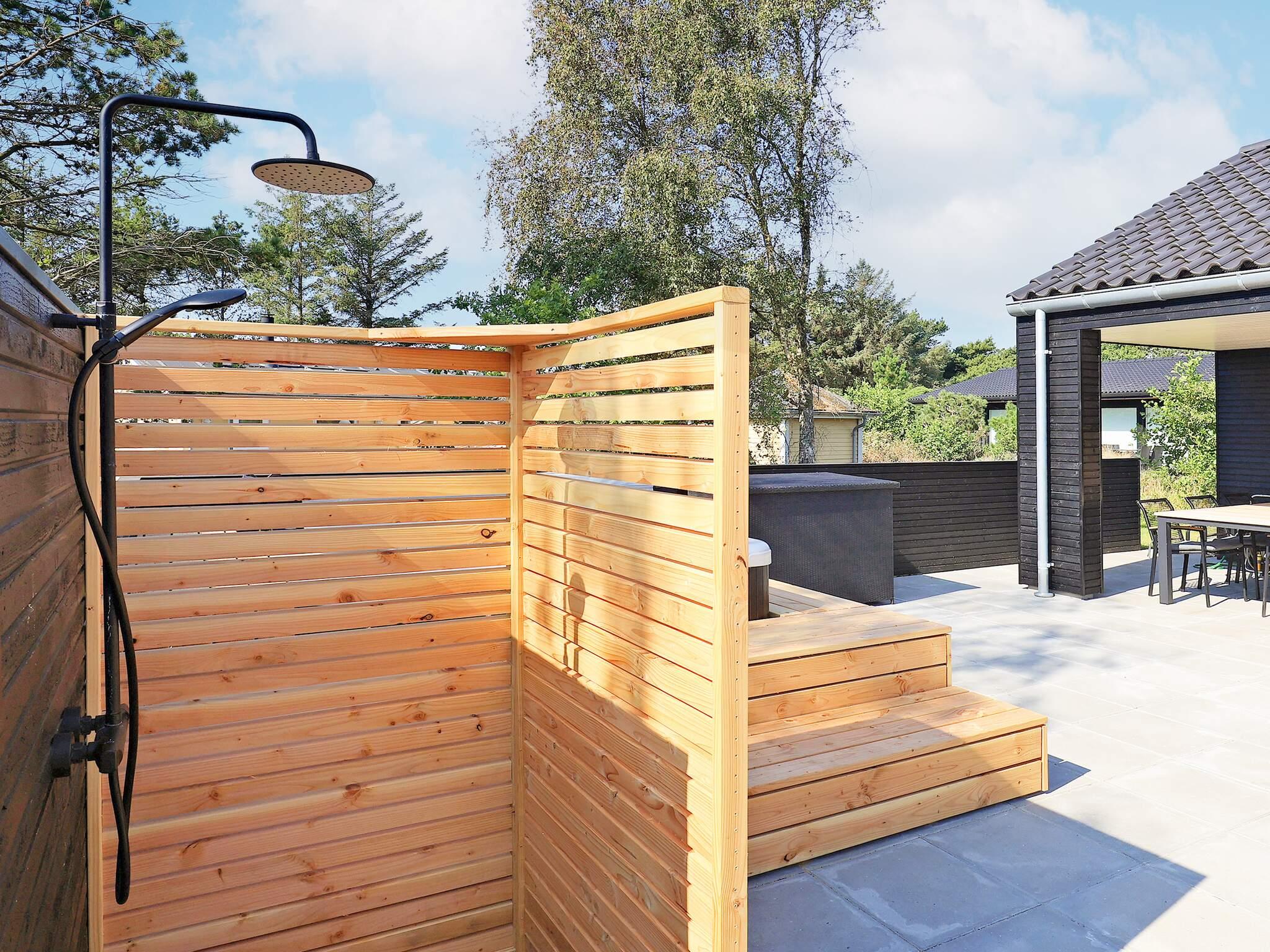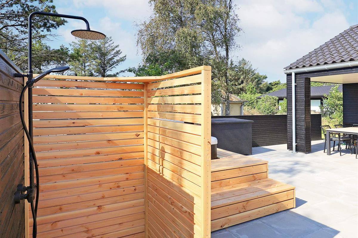 Die Außenbereiche sind für das ganze Jahr über geeignet. Die Terrasse verfügt über einen überdachten Bereich mit Terrassenheizung, sodass Sie auch an kühleren Abenden im Freien speisen oder entspannen können. Ein eingezäunter Bereich sorgt für Privatsphäre, und die Außendusche sorgt nach einem Strandausflug oder einem Bad im Whirlpool für einen Hauch von Luxus.