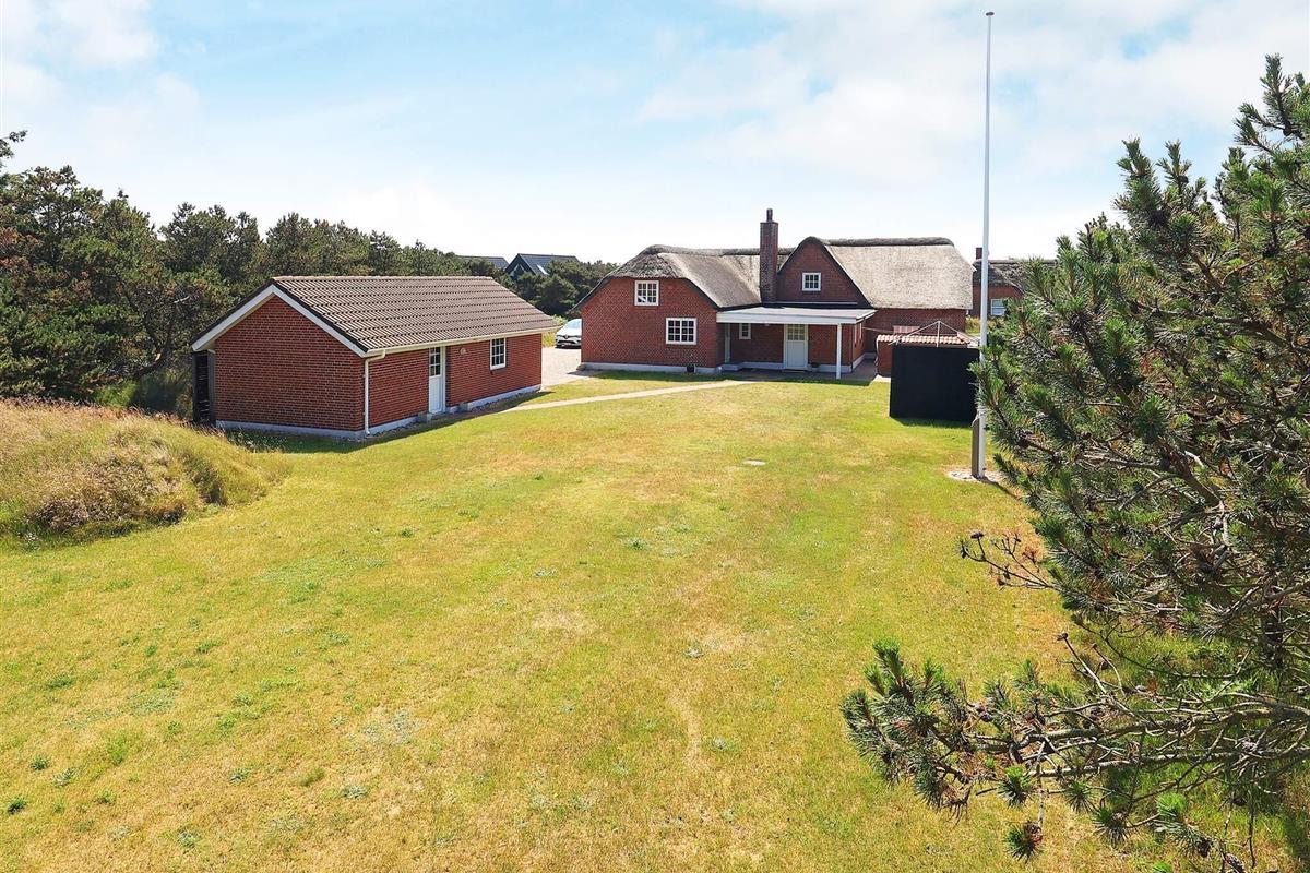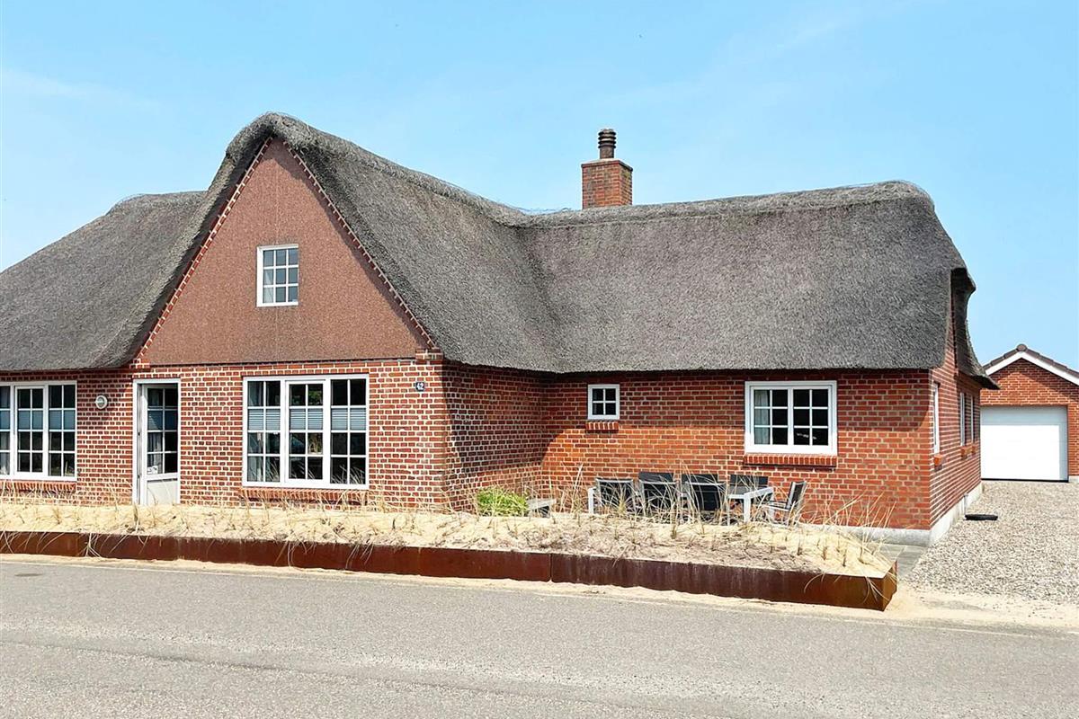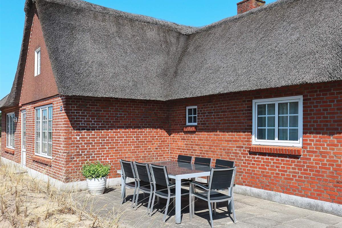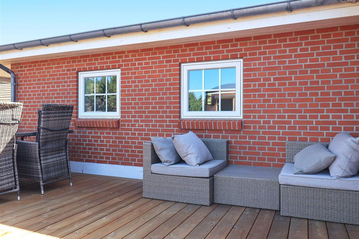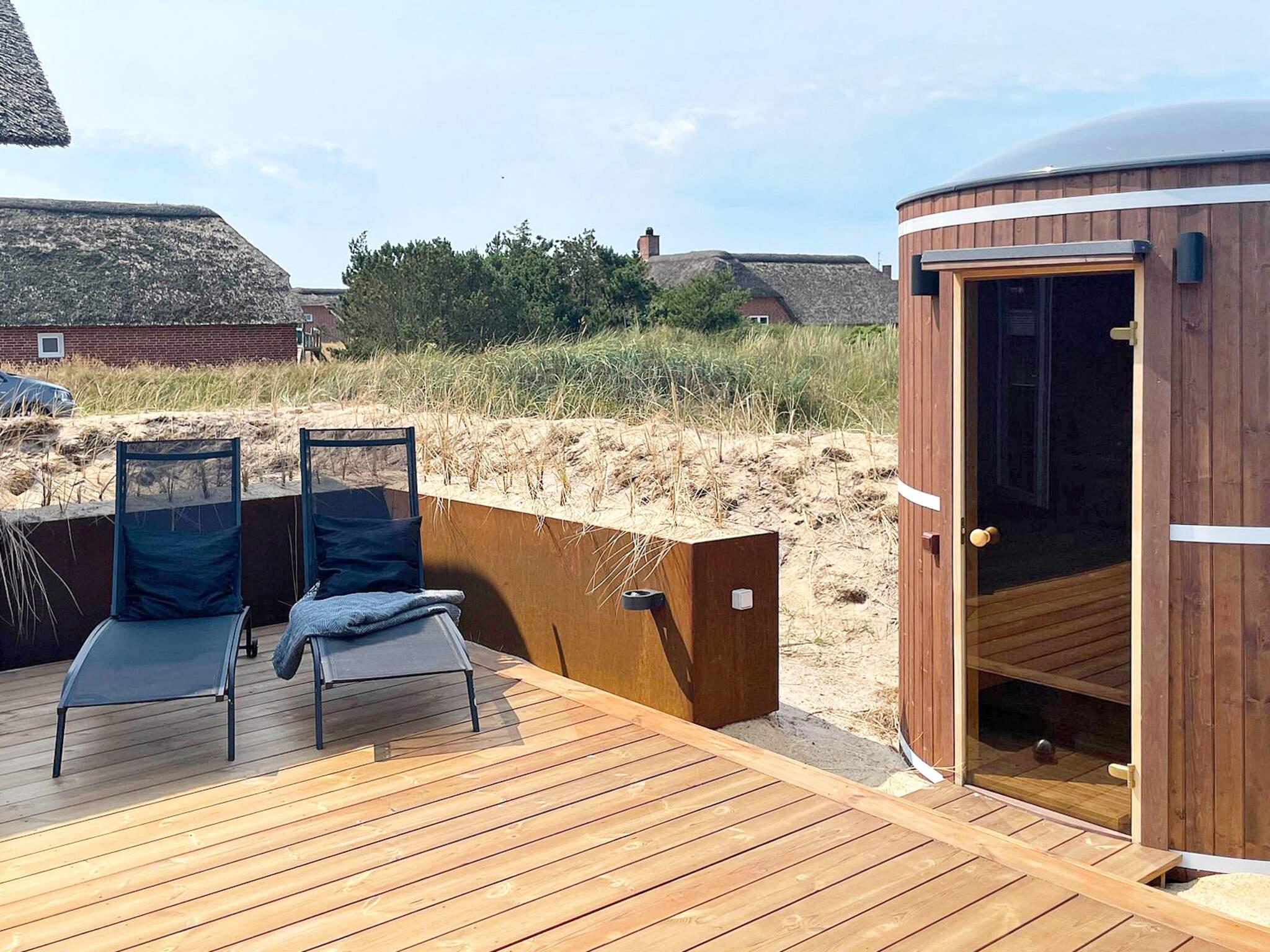 Geräumiges Ferienhaus in bester Lage nahe dem Nordseestrand von Blåvand. Die große Holzterrasse mit Whirlpool und Sauna lädt zum Entspannen im Freien ein.