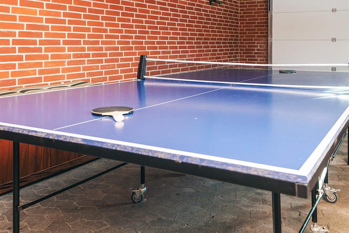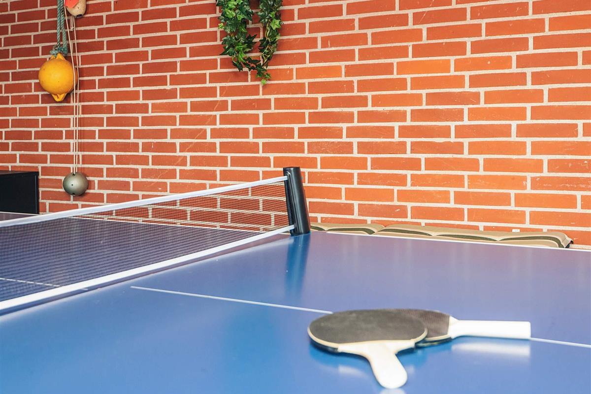 Das Haus verfügt über zwei Wohnzimmer – eines im Erdgeschoss und eines im Dachgeschoss – und bietet viel Platz für die ganze Familie. Für Unterhaltung sorgen ein Tischfußballtisch und eine PlayStation 4. Im Erdgeschoss befinden sich außerdem ein 70-Zoll-Fernseher, eine gemütliche Sitzecke, eine voll ausgestattete Küche, ein Essbereich und ein Badezimmer.