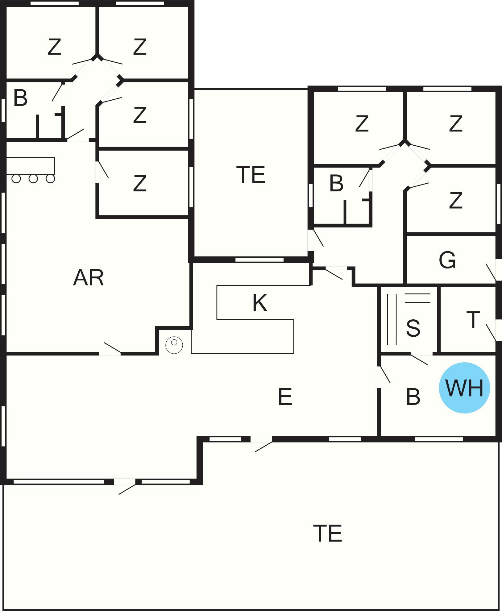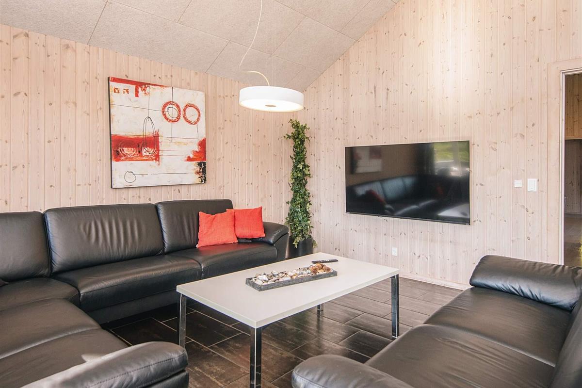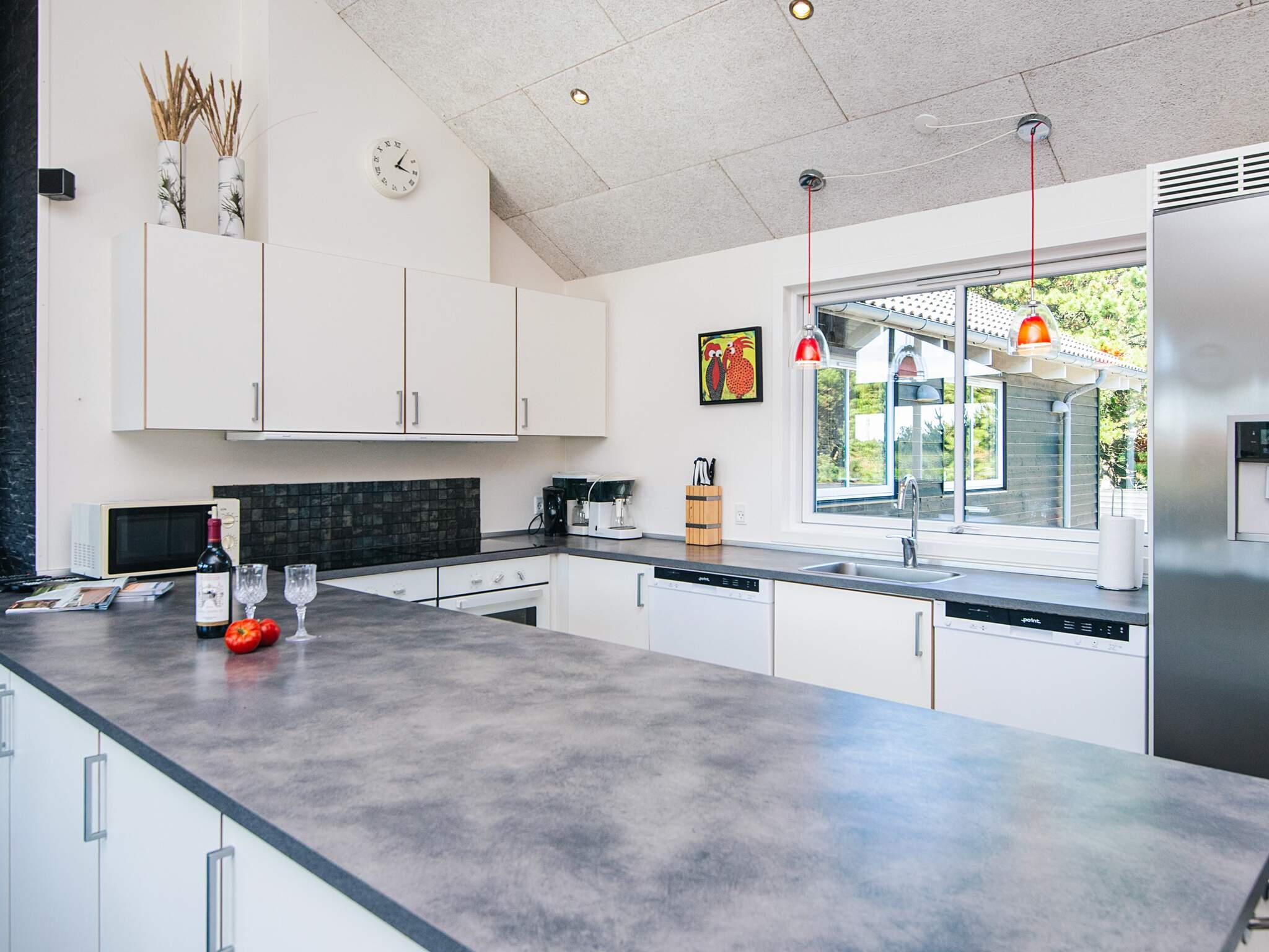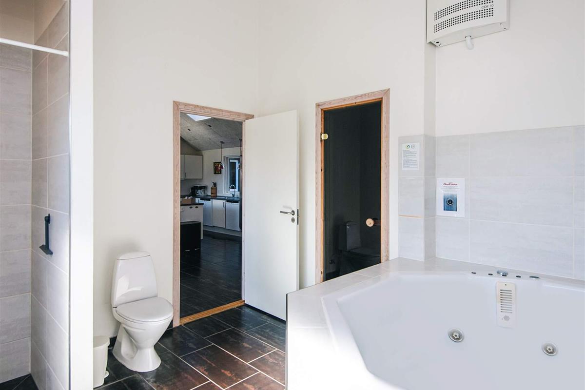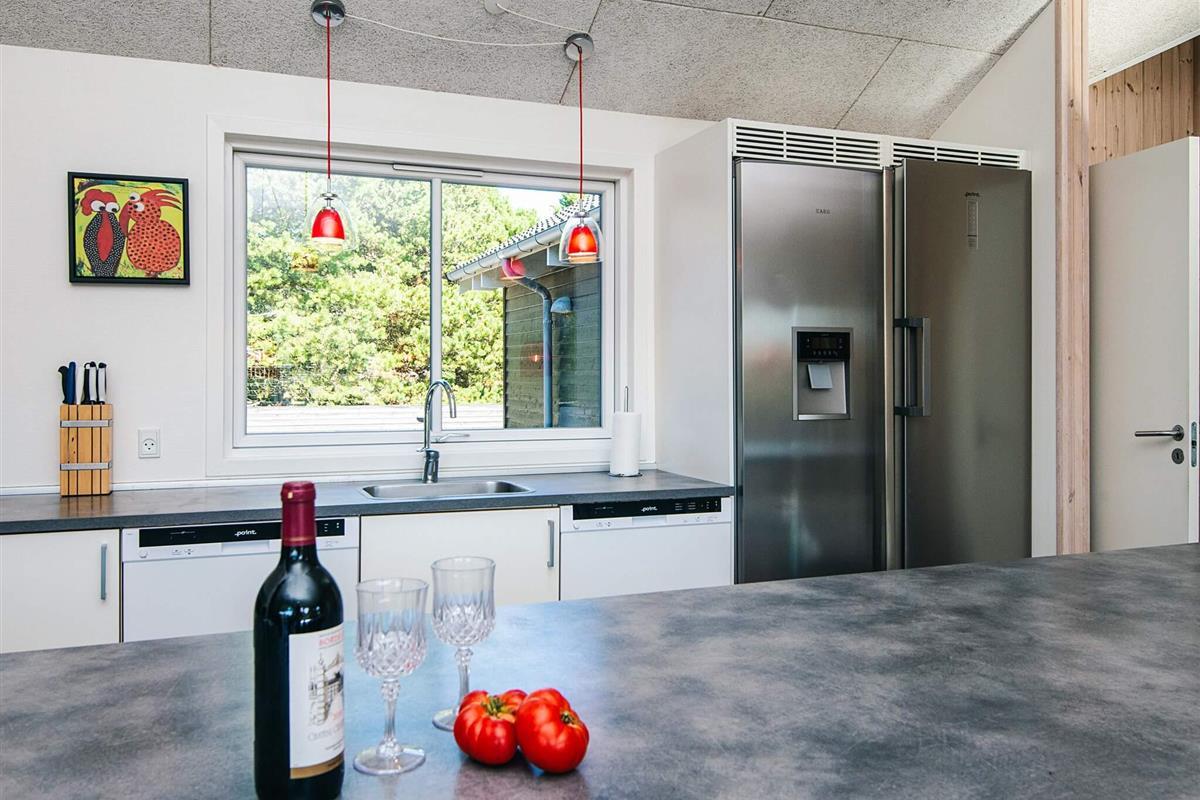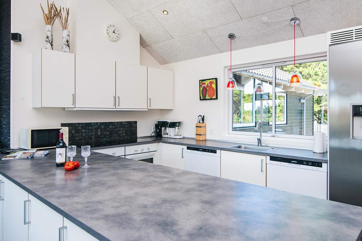 Gut durchdachtes Aktivitätsferienhaus auf einem windgeschützten Naturgrundstück in den Dünen. Der nahe Sandstrand ist, ebenfalls wie der lebhafte Ort Blåvand, zu Fuß gut erreichbar. Das architektonisch interessante Haus ist gut aufgeteilt und eingerichtet und bietet Platz für bis zu 18 Personen. Es gibt drei Badezimmer, sieben Schlafzimmer und einen großen Hems/Schlafboden - alle modern und gut eingerichtet. Fernsehen kann man im Wohnzimmer, im Aktivitätsraum und auf dem Hems. Weiterhin gibt es einen Projektor im Küchen-Aufenthaltsbereich. Spielkonsole für Wii U sowie PlayStation3 vorhanden.