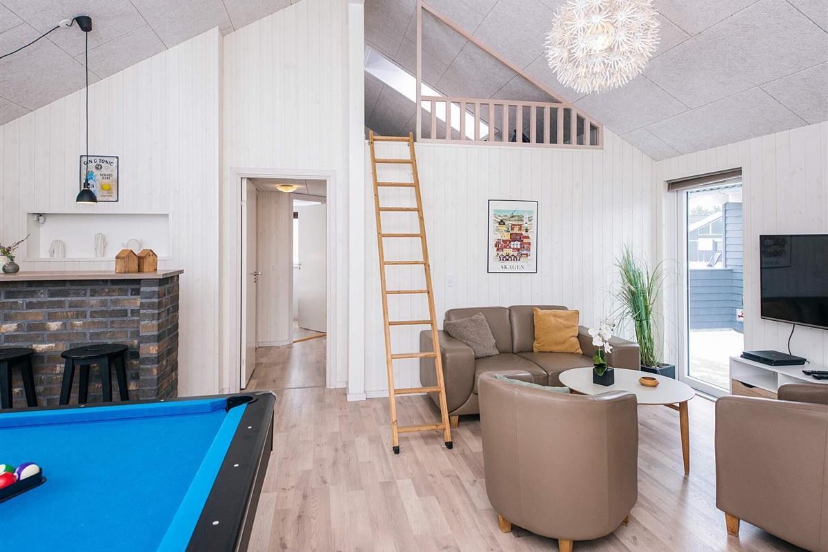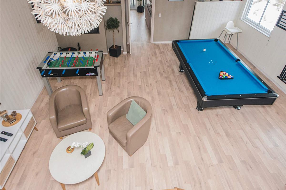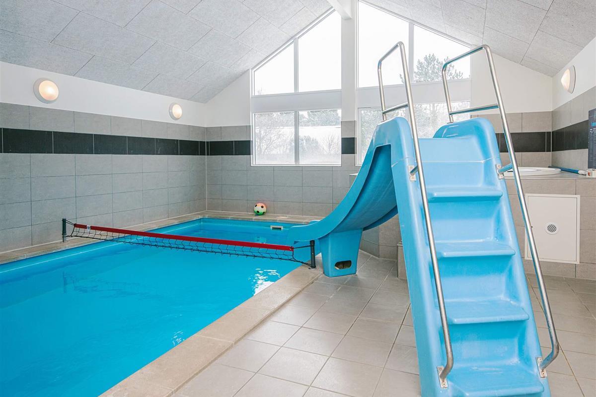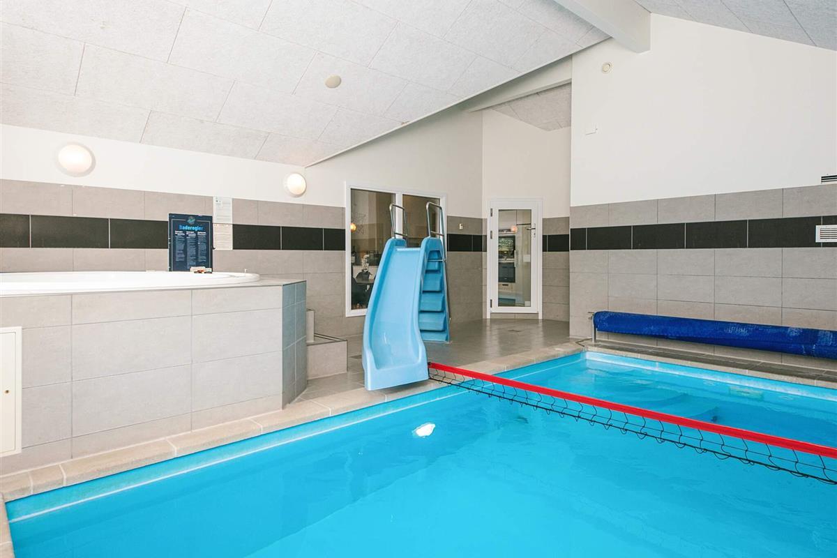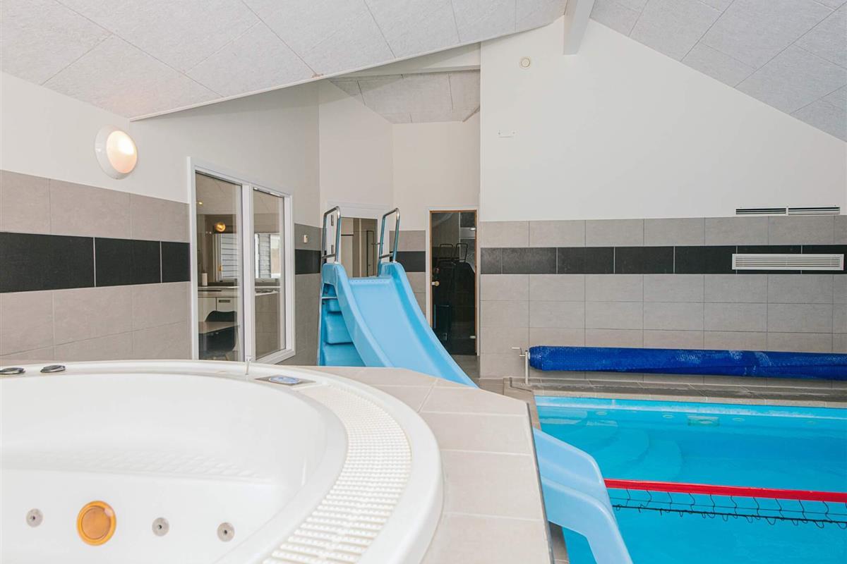 Gut eingerichtetes Aktivitäts-Ferienhaus mit großer Poolabteilung, die einen 18 m² großen Pool mit Rutsche und Gegenstromanlage, einen 8 Personen Whirlpool sowie eine große Sauna beinhaltet.