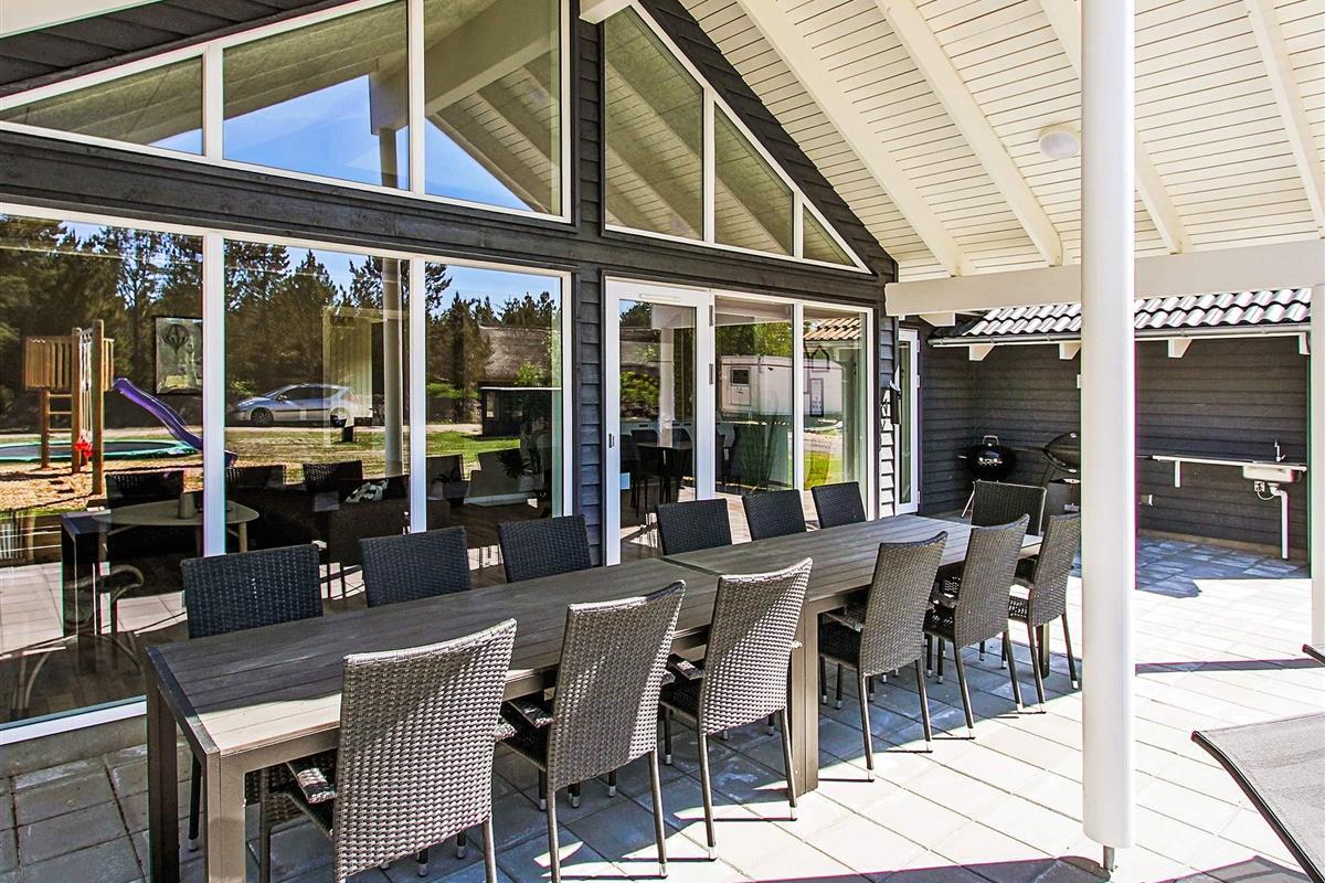 Am Haus auf der großen, teils überdachten Terrasse können Sie den