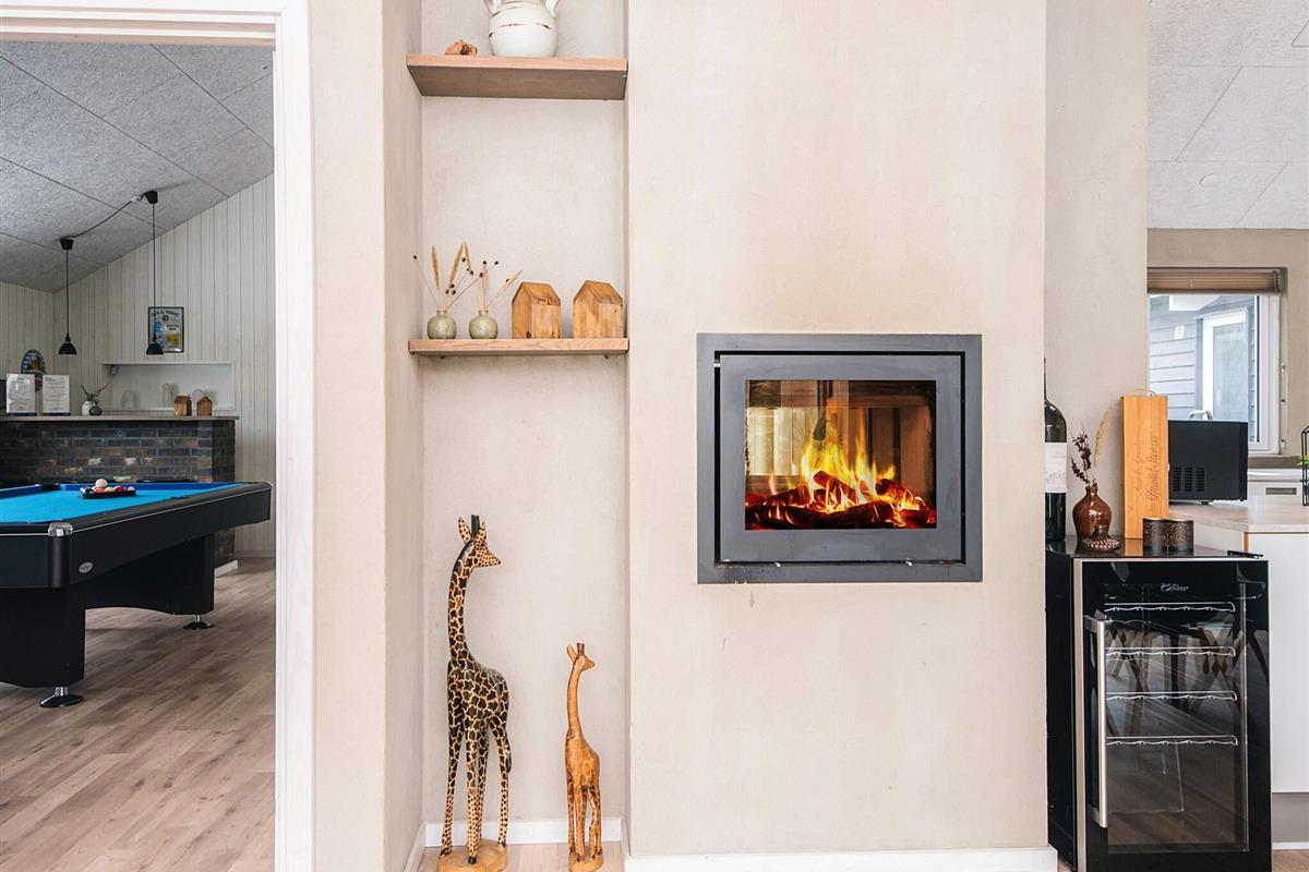 Aktivitätsraum wurde ein Kaminofen eingebaut, dessen Flammen von beiden
