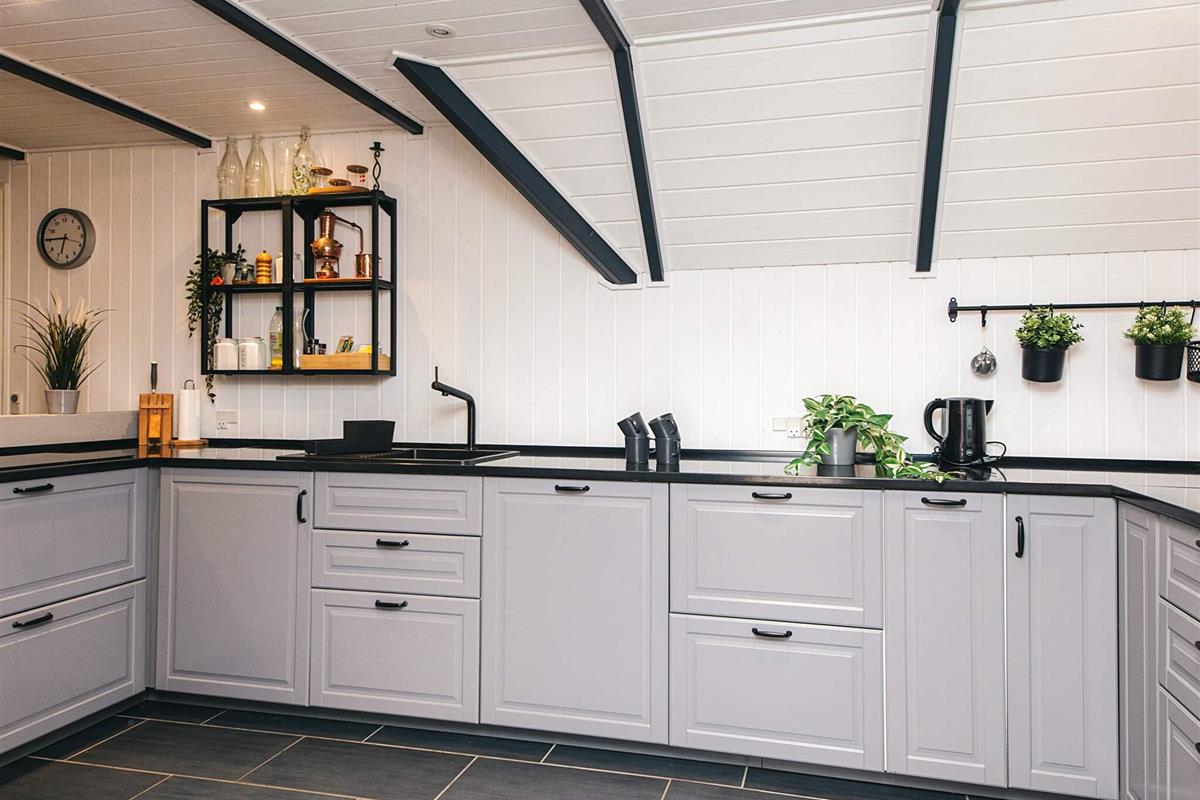 Es gibt eine große, schöne Küche mit einem 314 Liter Kühlschrank und einem 209 Liter Gefrierschrank. Die Küche ist mit zwei Backöfen ausgestattet, von denen einer sowohl als Mikro- als auch als normaler Ofen dient. Im Flur/Hauswirtschaftsraum gibt es einen kombinierten Waschtrockner.