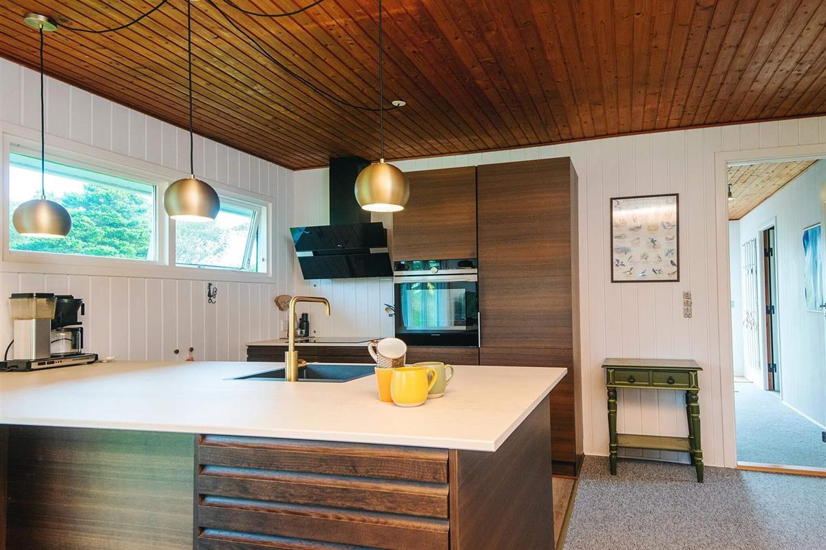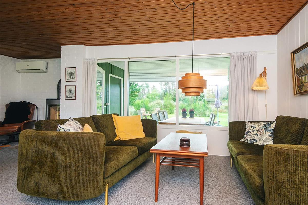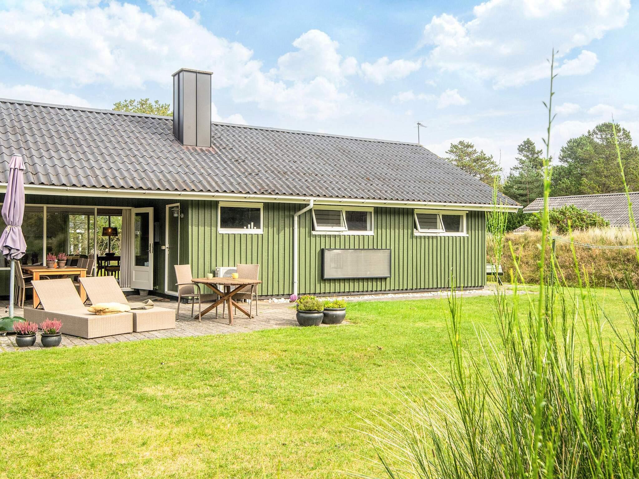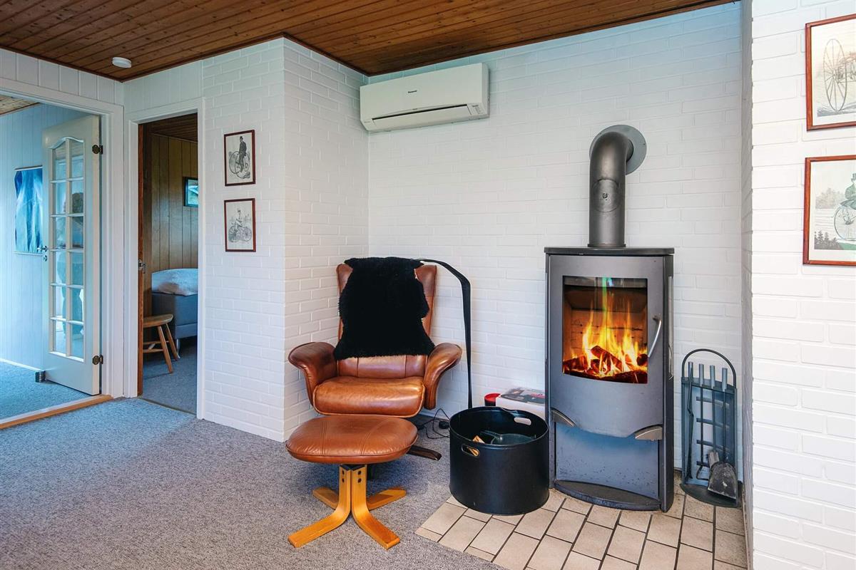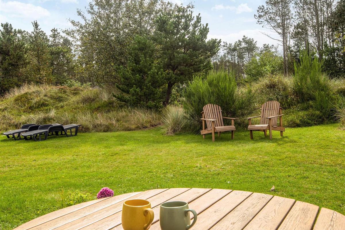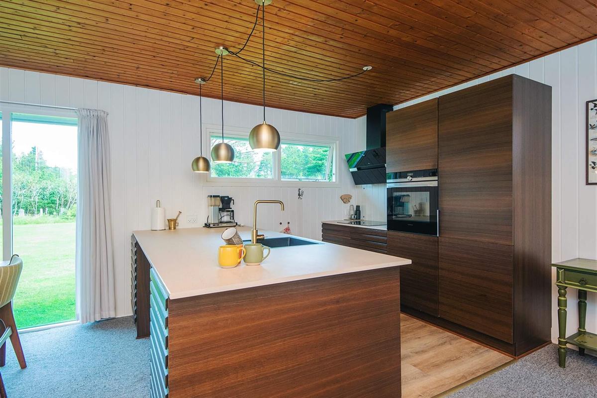 Das schöne Ferienhaus in Blavand mit einem großen Naturgrundstück hat eine sehr ruhige Lage. Die helle Küche ist in direkter Verbindung mit dem Wohnzimmer. Deshalb können Sie, auch wenn Sie kochen, zusammen mit Ihrer Familie sein. Im Wohnzimmer finden Sie den Kaminofen, der an kälteren Tagen Wärme spendet und eine gemütliche Urlaubsstimmung verbreitet. Das Wohnzimmer hat Zugang zur großen Terrassen, auf der Sie ungeniert die Sonne genießen können. Ein Teil von der Terrasse ist überdacht, weshalb Sie auch an einen Regenwettertag draußen sitzen können. Das Ferienhaus hat 3 Schlafzimmer mit 1 Doppelbett, 2 Einzelbetten und 2 Etagenbetten. Auf dem Badezimmer finden Sie sowohl eine Waschmaschine als auch einen Wäschetrockner. Schönes und gemütliches Ferienhaus in Blavand mit kostenloser Endreiningung.Kleiner zusätzlicher Gefrierschrank im Schuppen