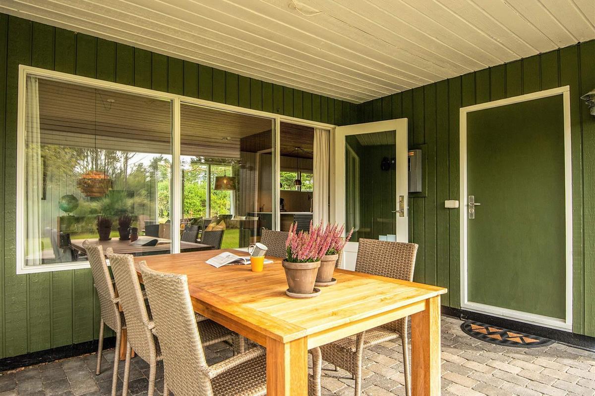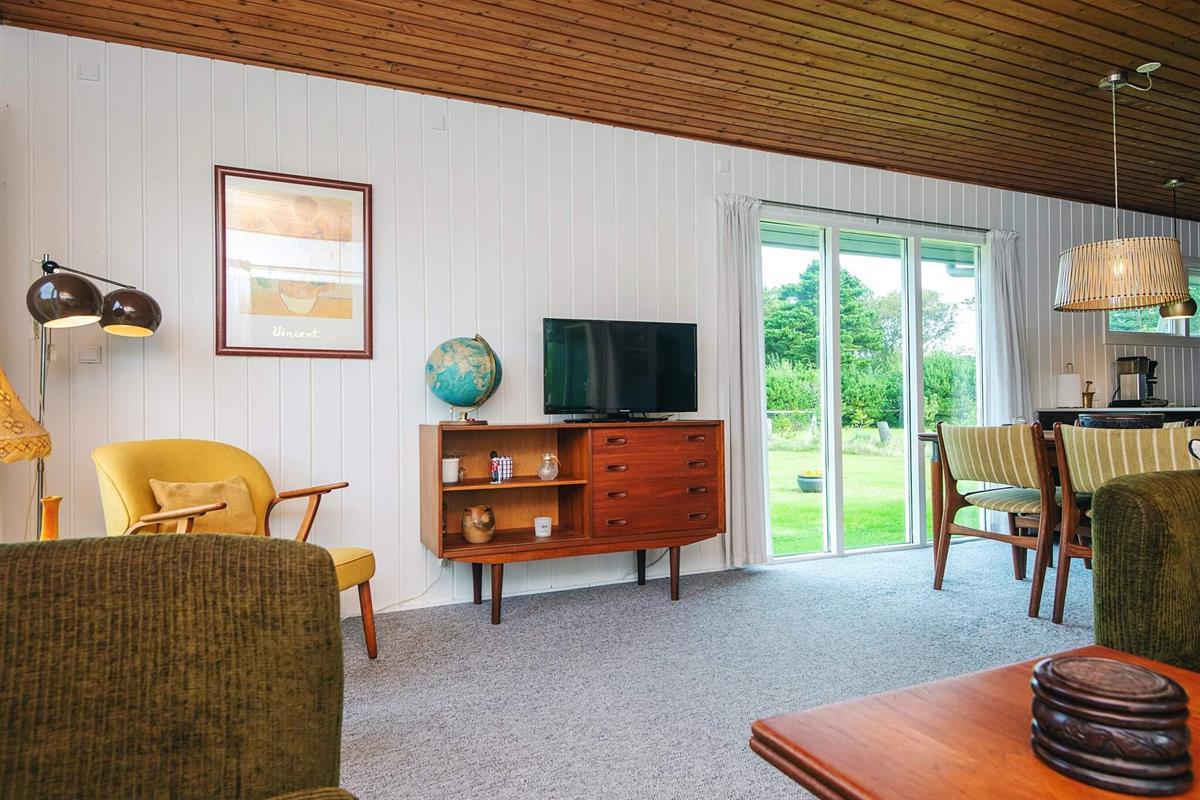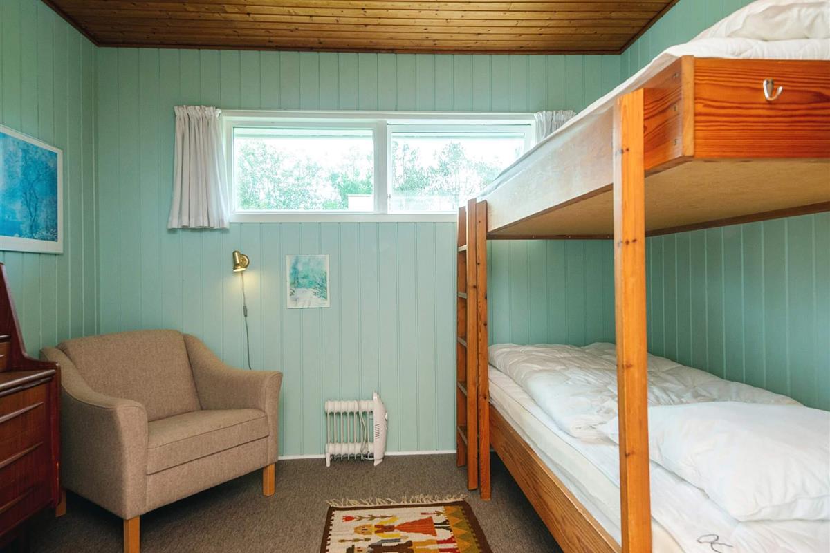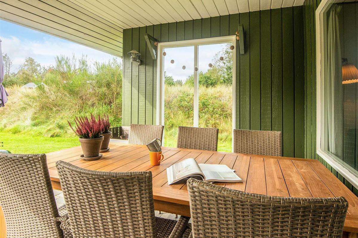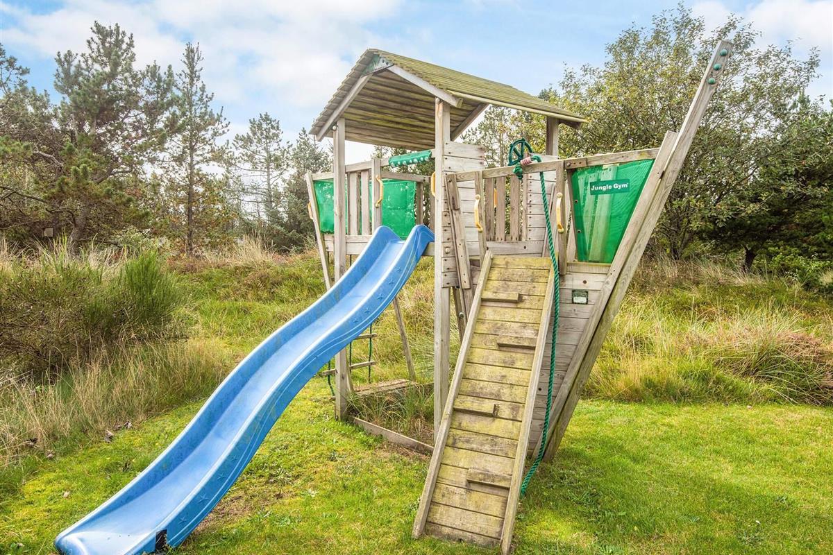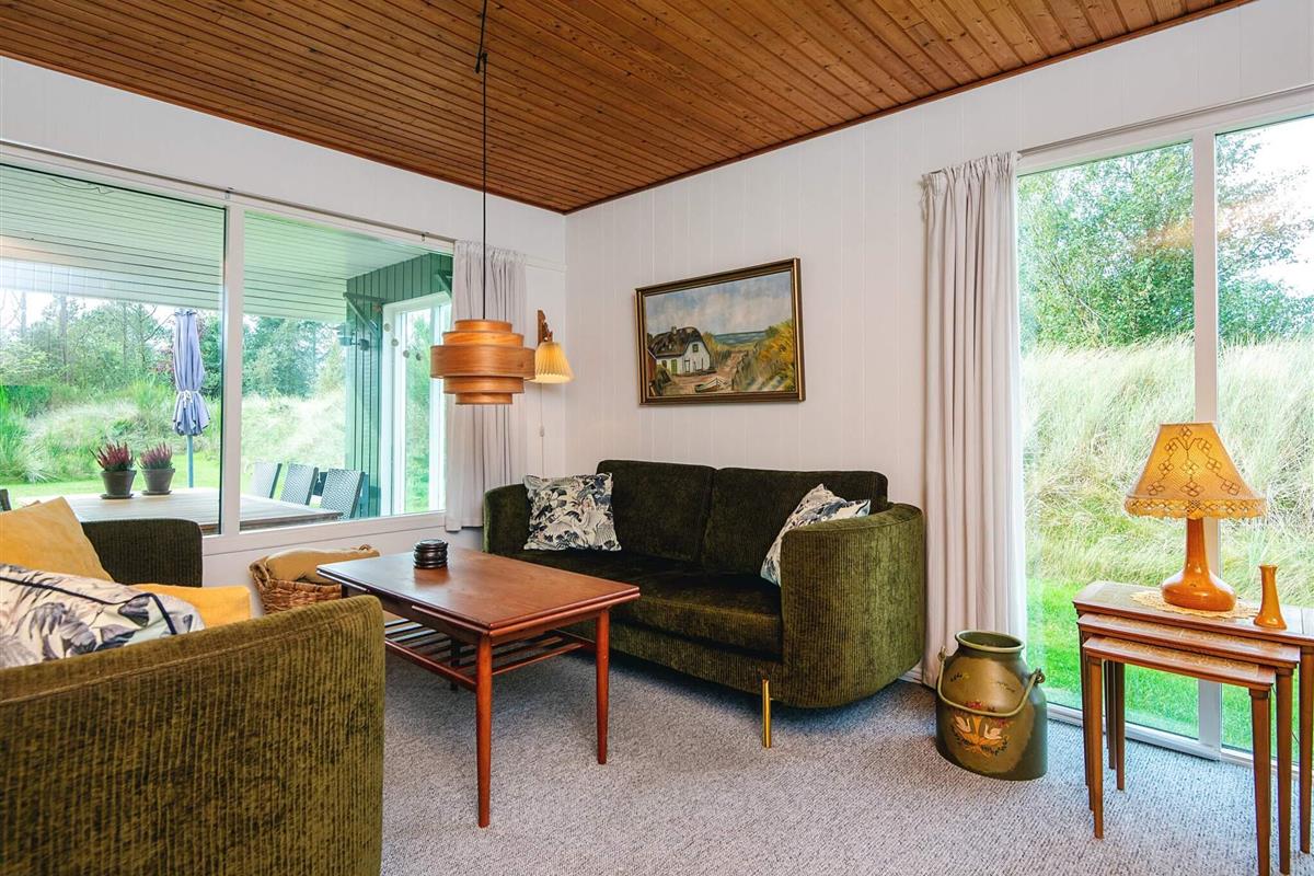 Das schöne Ferienhaus in Blavand mit einem großen Naturgrundstück hat eine sehr ruhige Lage. Die helle Küche ist in direkter Verbindung mit dem Wohnzimmer. Deshalb können Sie, auch wenn Sie kochen, zusammen mit Ihrer Familie sein. Im Wohnzimmer finden Sie den Kaminofen, der an kälteren Tagen Wärme spendet und eine gemütliche Urlaubsstimmung verbreitet. Das Wohnzimmer hat Zugang zur großen Terrassen, auf der Sie ungeniert die Sonne genießen können. Ein Teil von der Terrasse ist überdacht, weshalb Sie auch an einen Regenwettertag draußen sitzen können. Das Ferienhaus hat 3 Schlafzimmer mit 1 Doppelbett, 2 Einzelbetten und 2 Etagenbetten. Auf dem Badezimmer finden Sie sowohl eine Waschmaschine als auch einen Wäschetrockner. Schönes und gemütliches Ferienhaus in Blavand mit kostenloser Endreiningung.Kleiner zusätzlicher Gefrierschrank im Schuppen