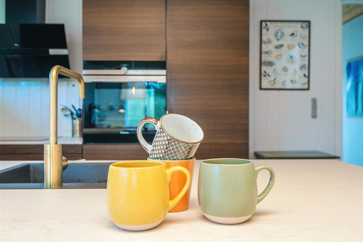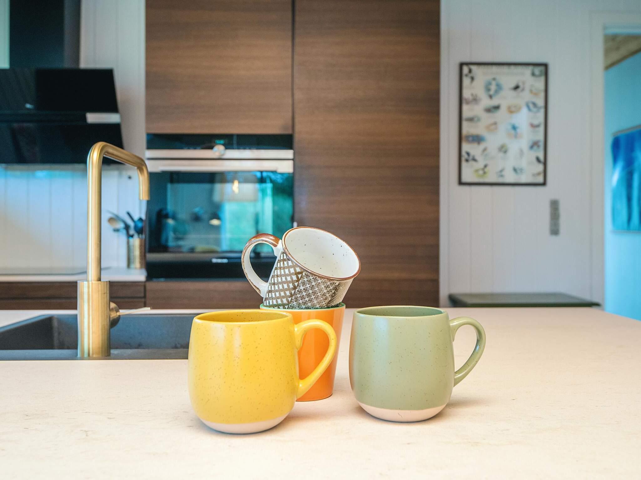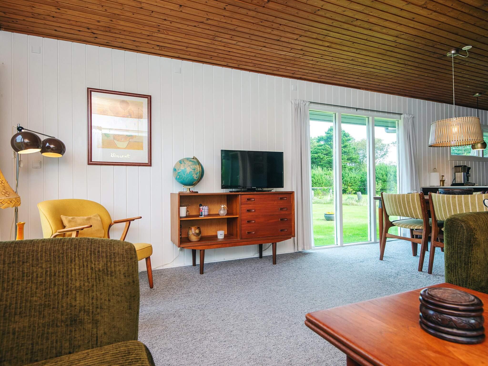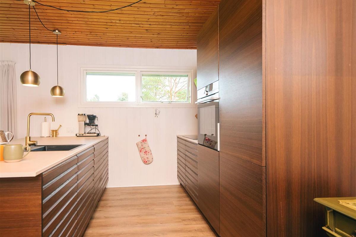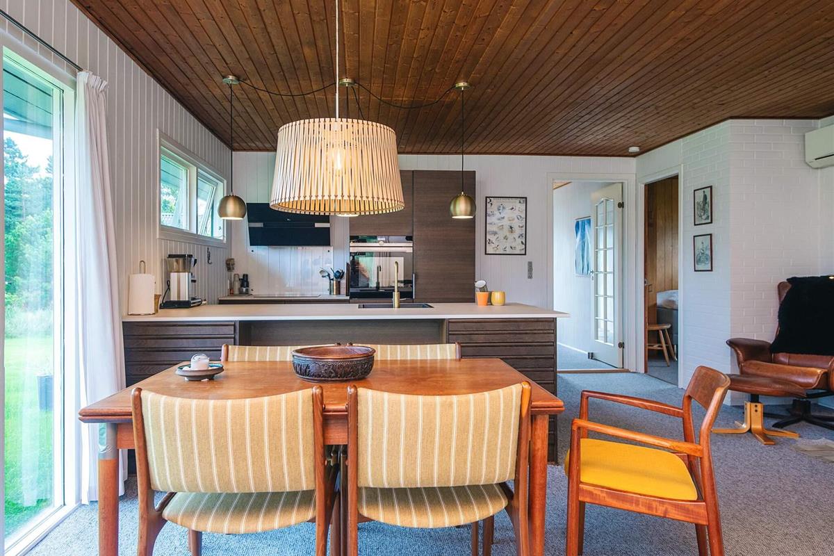 Das schöne Ferienhaus in Blavand mit einem großen Naturgrundstück hat eine sehr ruhige Lage. Die helle Küche ist in direkter Verbindung mit dem Wohnzimmer. Deshalb können Sie, auch wenn Sie kochen, zusammen mit Ihrer Familie sein. Im Wohnzimmer finden Sie den Kaminofen, der an kälteren Tagen Wärme spendet und eine gemütliche Urlaubsstimmung verbreitet. Das Wohnzimmer hat Zugang zur großen Terrassen, auf der Sie ungeniert die Sonne genießen können. Ein Teil von der Terrasse ist überdacht, weshalb Sie auch an einen Regenwettertag draußen sitzen können. Das Ferienhaus hat 3 Schlafzimmer mit 1 Doppelbett, 2 Einzelbetten und 2 Etagenbetten. Auf dem Badezimmer finden Sie sowohl eine Waschmaschine als auch einen Wäschetrockner. Schönes und gemütliches Ferienhaus in Blavand mit kostenloser Endreiningung.Kleiner zusätzlicher Gefrierschrank im Schuppen