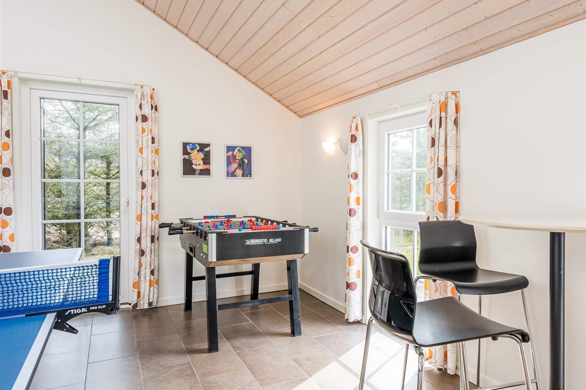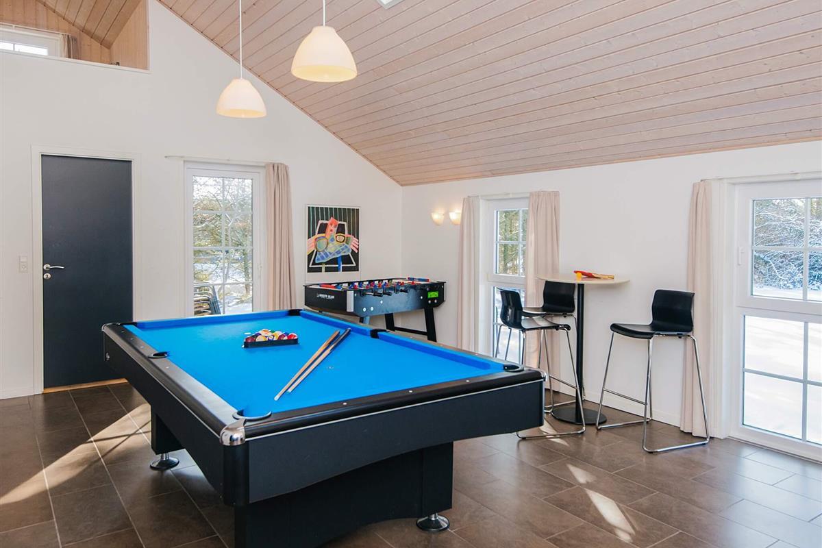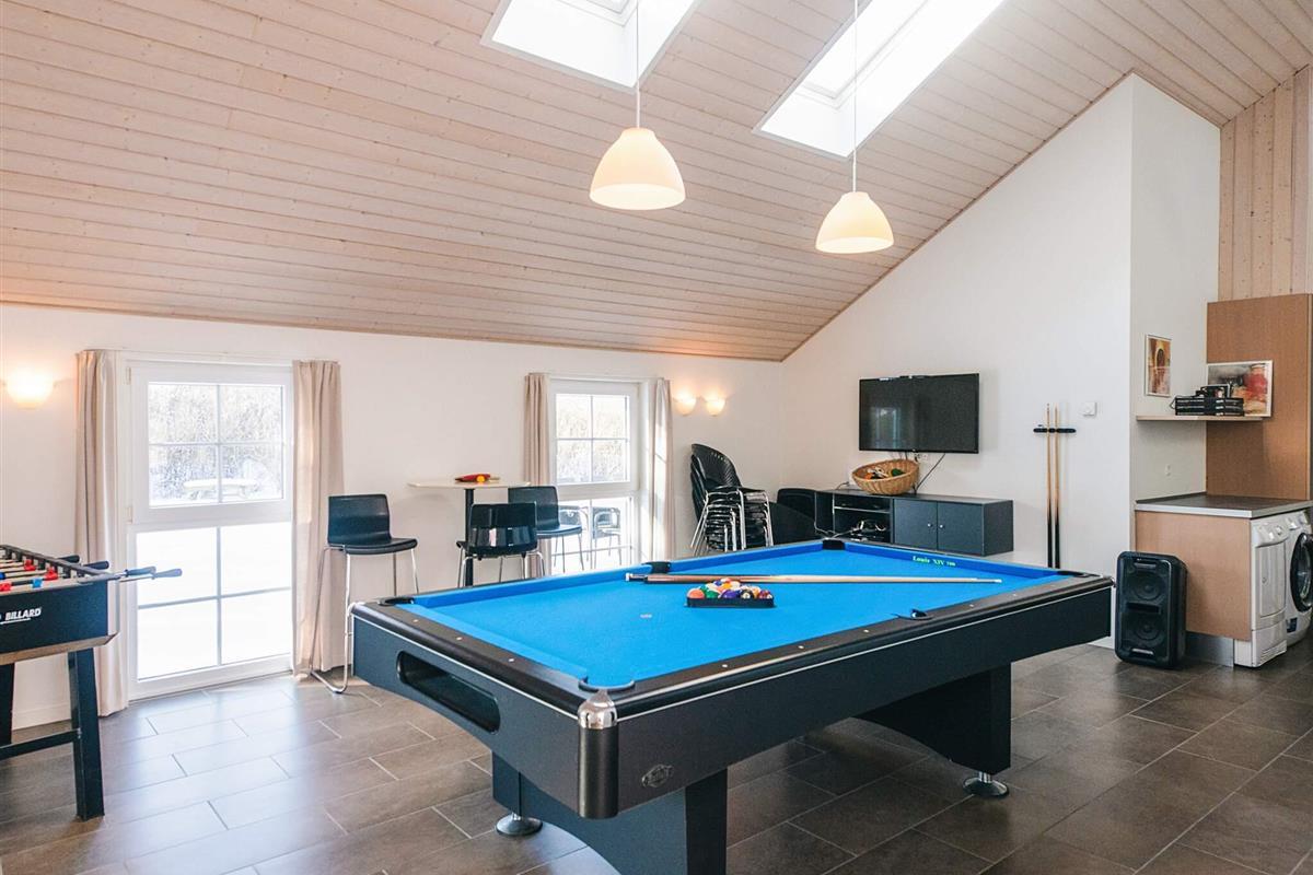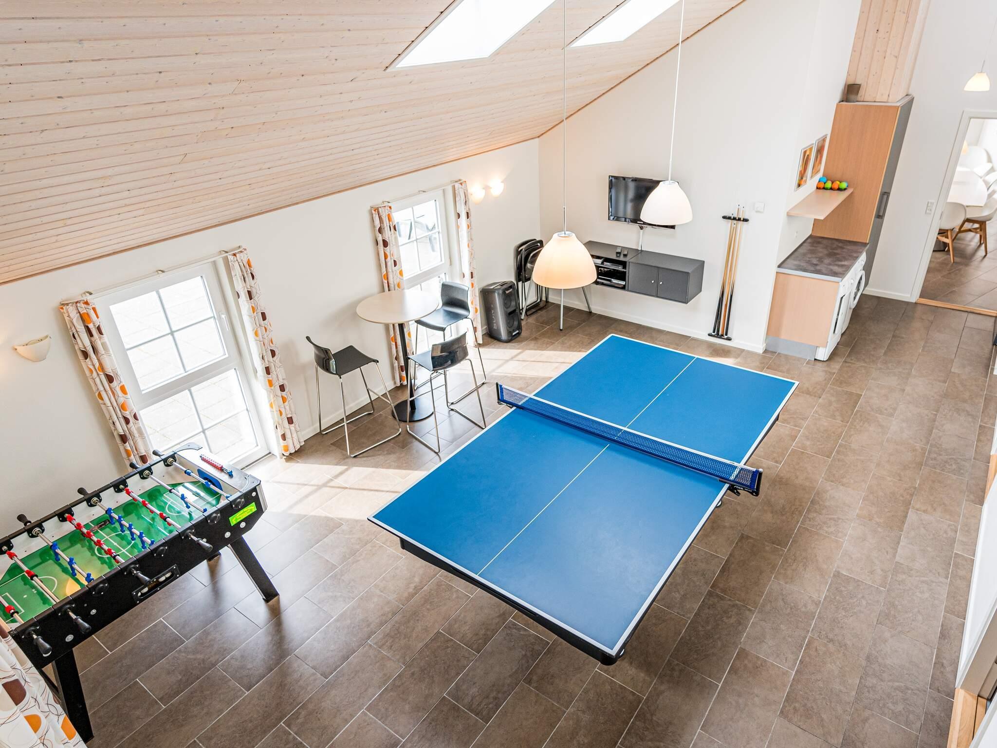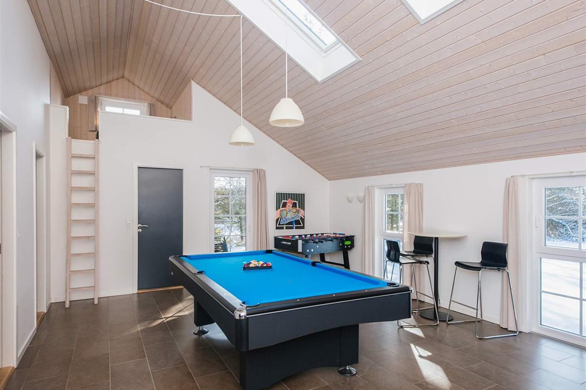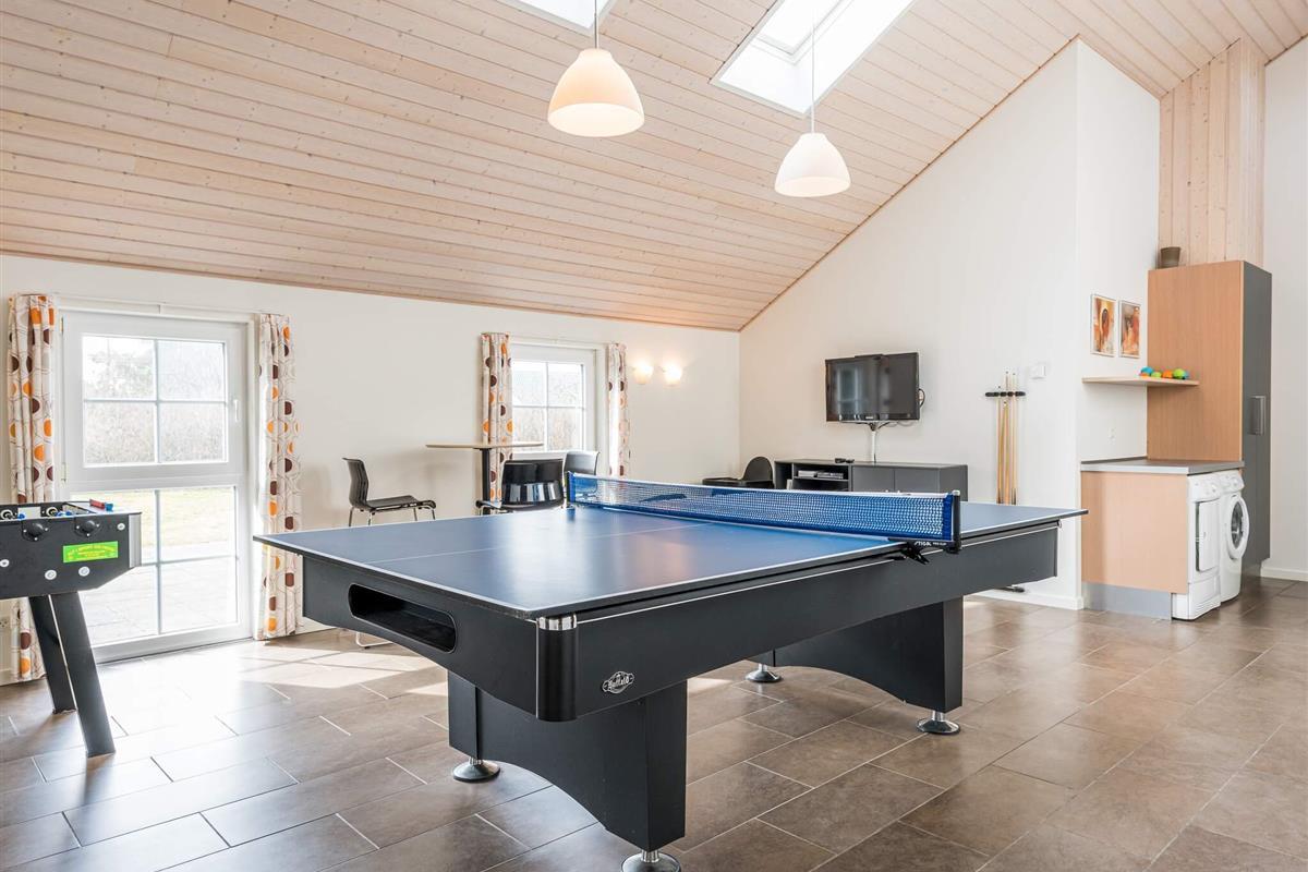 KEINE JUGENDGRUPPE - AKTIVITÄTSRAUM - Hier spricht man wirklich von einem super Ferienhaus mit allen Bequemlichkeiten. Das Haus ist 2011 gebaut und liegt auf einem wunderschönen Naturgrundstück nur 350 m von einem der besten Badestrände von Dänemark. In diesem Haus hat man keine Probleme, sich die Zeit zu vertreiben . Hier ist ein super toller Pool mit Gegenstromanlage von 22 m2 und einem Standwasser-Whirlpool für 4 Personen. Hat man keine Lust zum baden mehr, gibt es die Möglichkeit in dem schönen, grossen Aktivitätsraum Pool, Tischtennis, Tischfussball zu spielen oder einfach mit seinen Freunden die Ferien zu geniessen. Mit seinen 6 Schlafzimmern und 3 Badezimmern - Sauna ist ein Damphkabine im Poolraum - lädt das Haus wirklich zu einem Familientreffen oder Ferien mit Freunden ein. Hier ist wirklich Platz sich zu bewegen. Die Küche, die einen grossen Amerikaner Kühl/Gefrierschrank hat, liegt in offener Verbindung mit dem geräumigen Wohnzimmer/Essbereich, von dem der Ausblick in den Poolraum ist. Weiterhin ist das Wohnzimmer mit einem richtig tollen Kaminofen versehen, der für sowohl Wärme als auch Gemütlichkeit sorgt. Es ist ingesamten Haus Fussbodenheizung. Endreinigung ist im Preis enthalten!