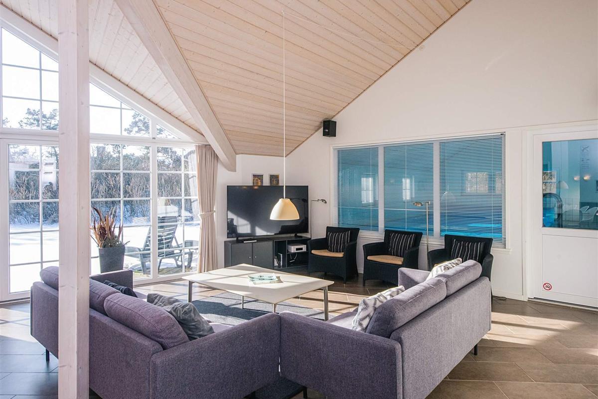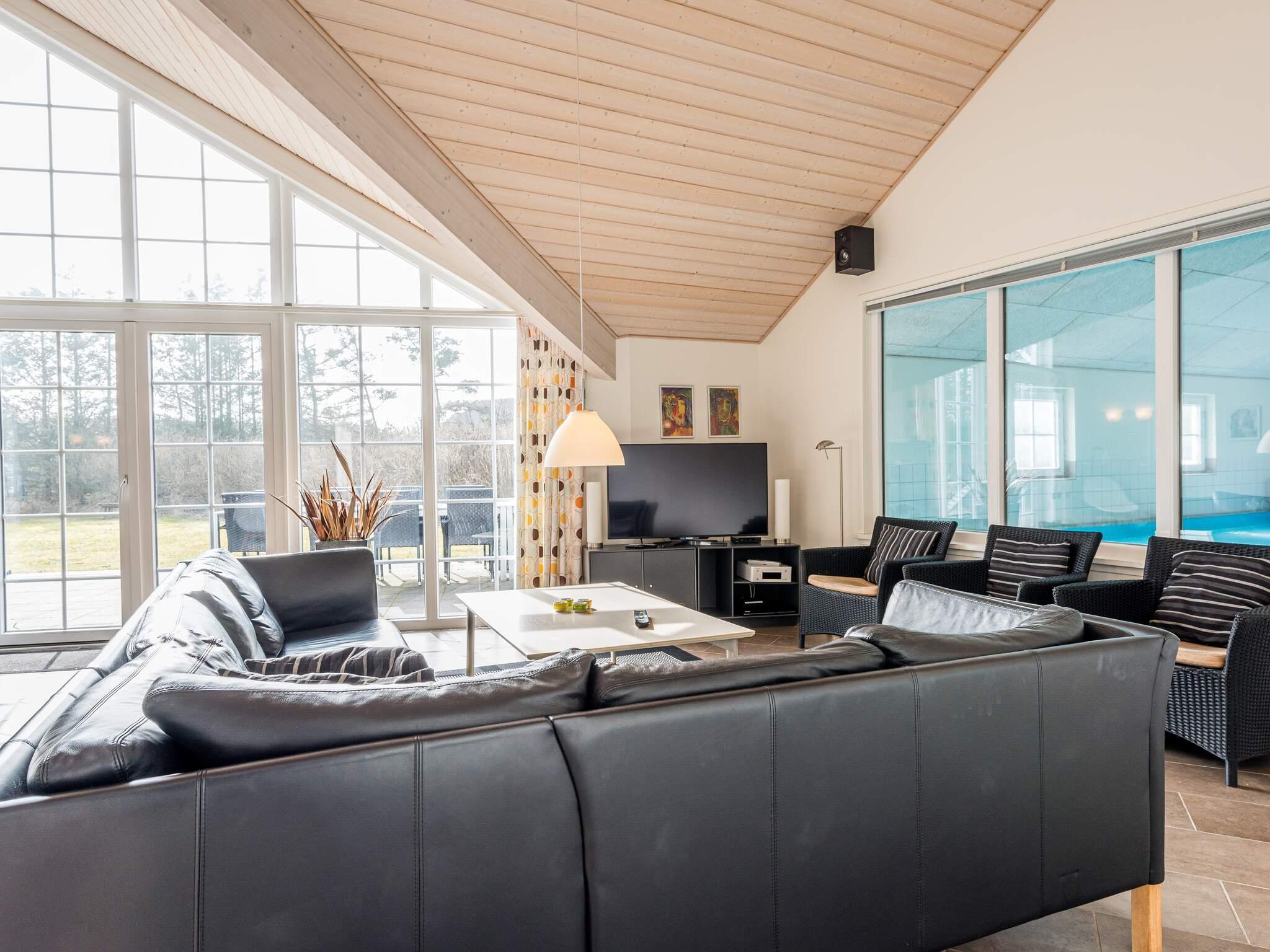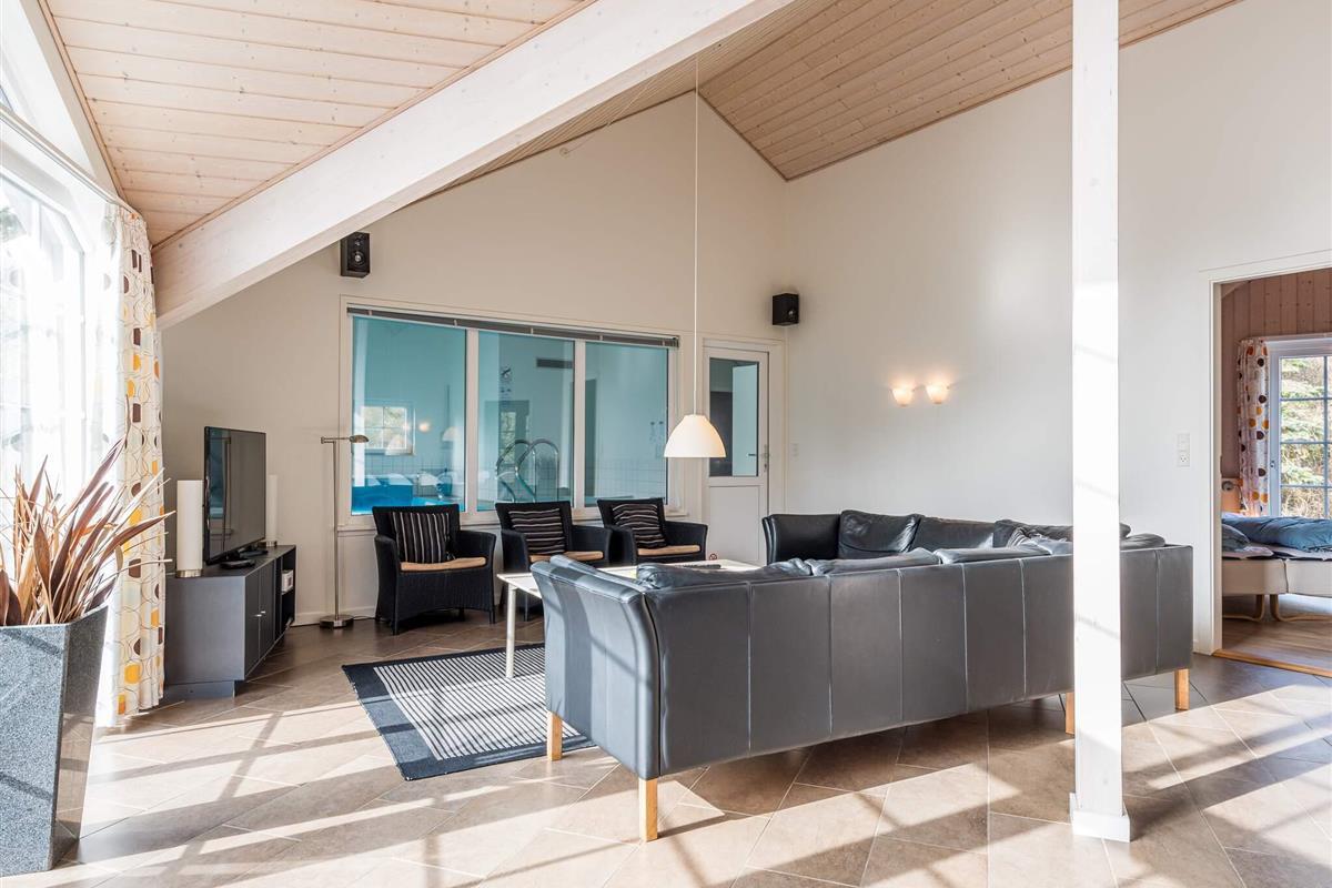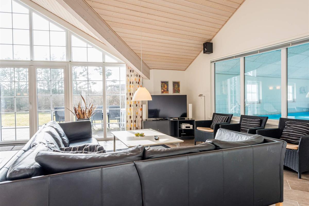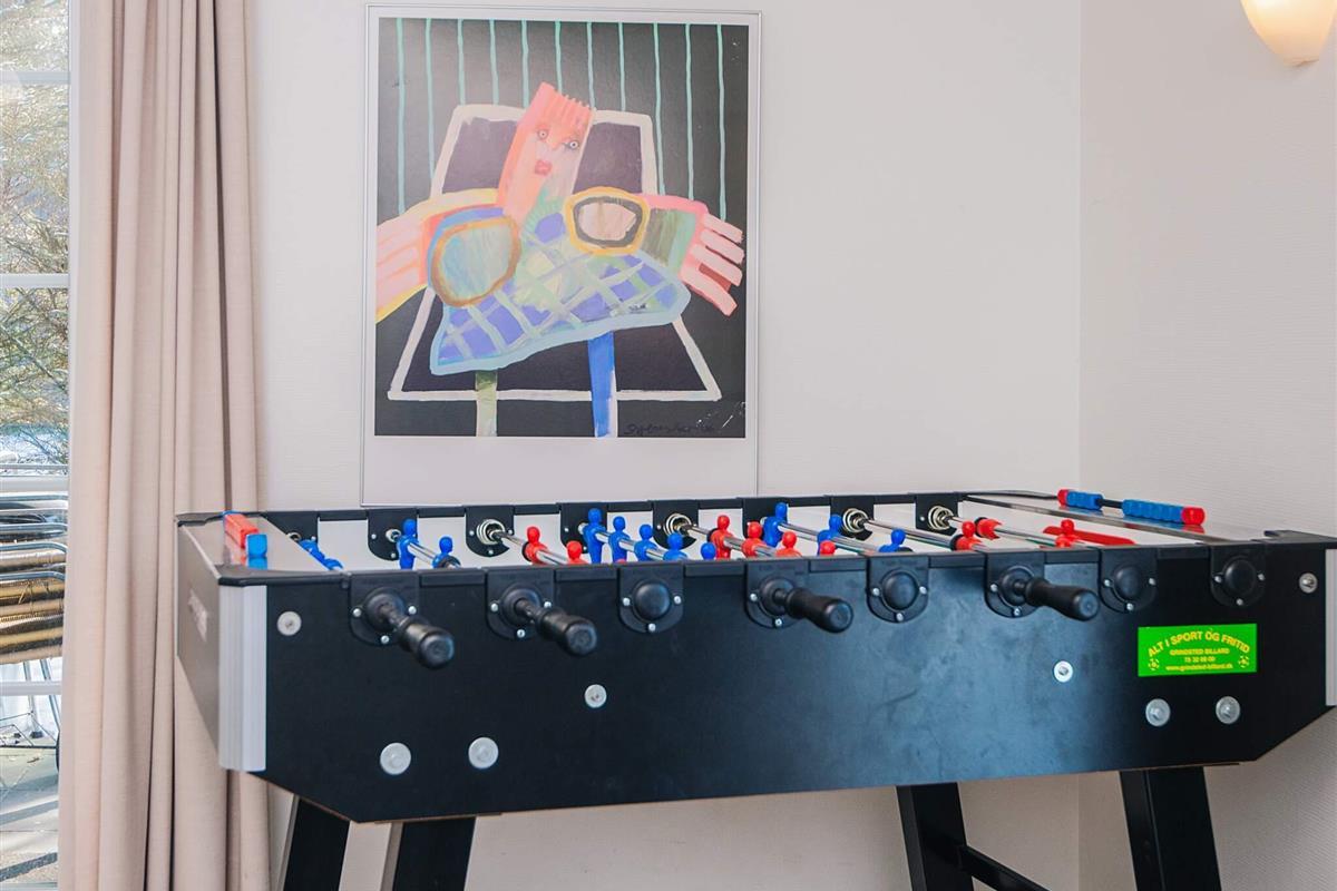 KEINE JUGENDGRUPPE - AKTIVITÄTSRAUM - Hier spricht man wirklich von einem super Ferienhaus mit allen Bequemlichkeiten. Das Haus ist 2011 gebaut und liegt auf einem wunderschönen Naturgrundstück nur 350 m von einem der besten Badestrände von Dänemark. In diesem Haus hat man keine Probleme, sich die Zeit zu vertreiben . Hier ist ein super toller Pool mit Gegenstromanlage von 22 m2 und einem Standwasser-Whirlpool für 4 Personen. Hat man keine Lust zum baden mehr, gibt es die Möglichkeit in dem schönen, grossen Aktivitätsraum Pool, Tischtennis, Tischfussball zu spielen oder einfach mit seinen Freunden die Ferien zu geniessen. Mit seinen 6 Schlafzimmern und 3 Badezimmern - Sauna ist ein Damphkabine im Poolraum - lädt das Haus wirklich zu einem Familientreffen oder Ferien mit Freunden ein. Hier ist wirklich Platz sich zu bewegen. Die Küche, die einen grossen Amerikaner Kühl/Gefrierschrank hat, liegt in offener Verbindung mit dem geräumigen Wohnzimmer/Essbereich, von dem der Ausblick in den Poolraum ist. Weiterhin ist das Wohnzimmer mit einem richtig tollen Kaminofen versehen, der für sowohl Wärme als auch Gemütlichkeit sorgt. Es ist ingesamten Haus Fussbodenheizung. Endreinigung ist im Preis enthalten!