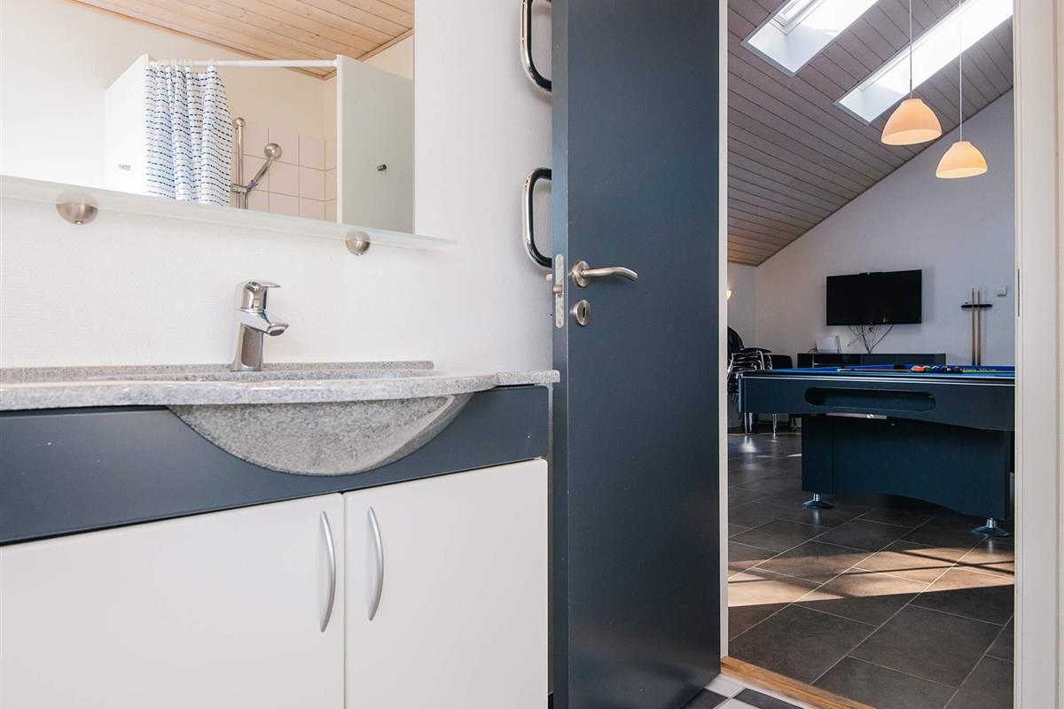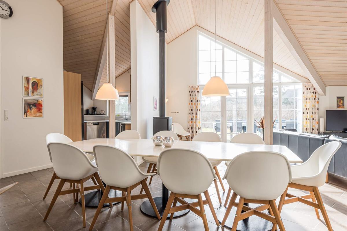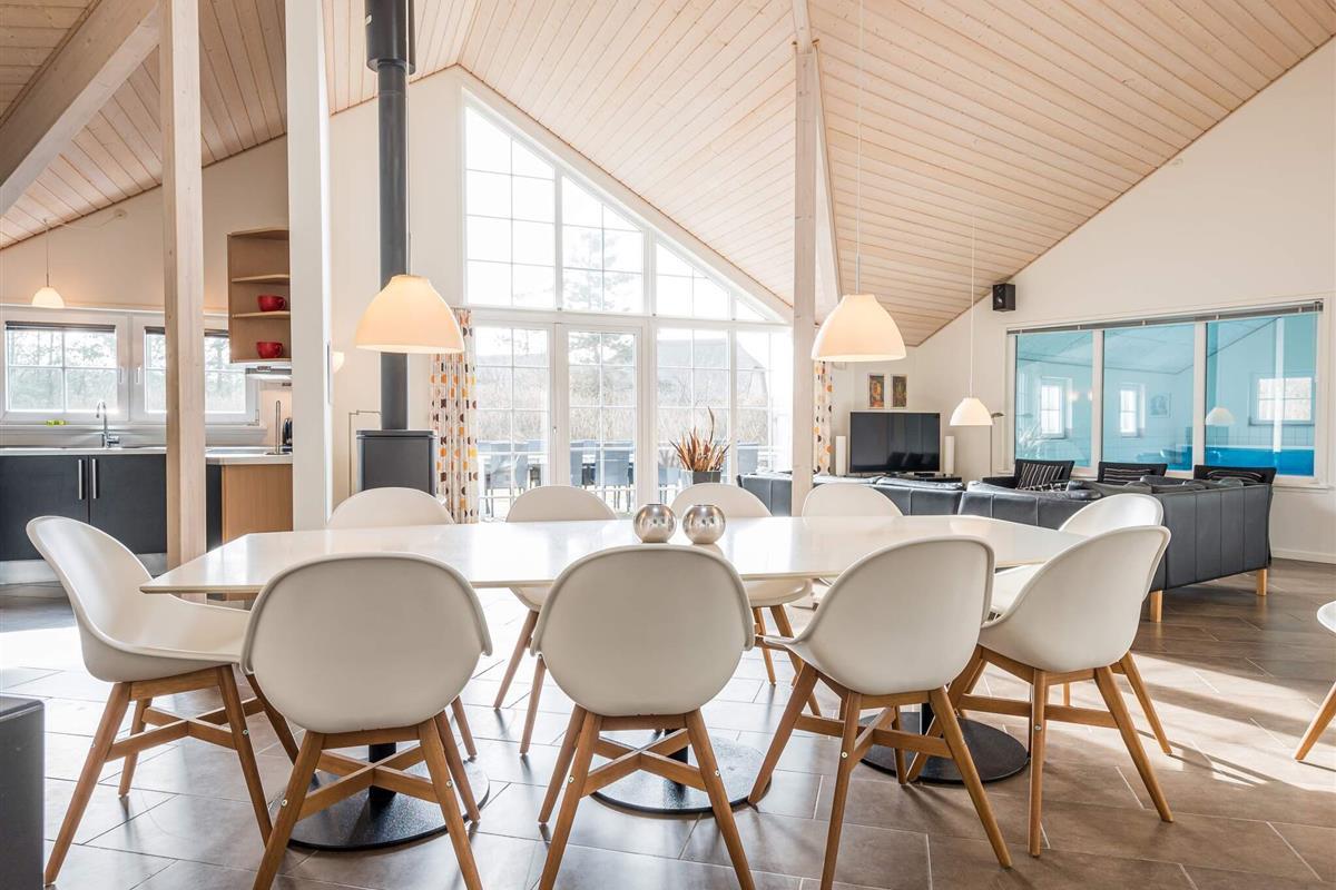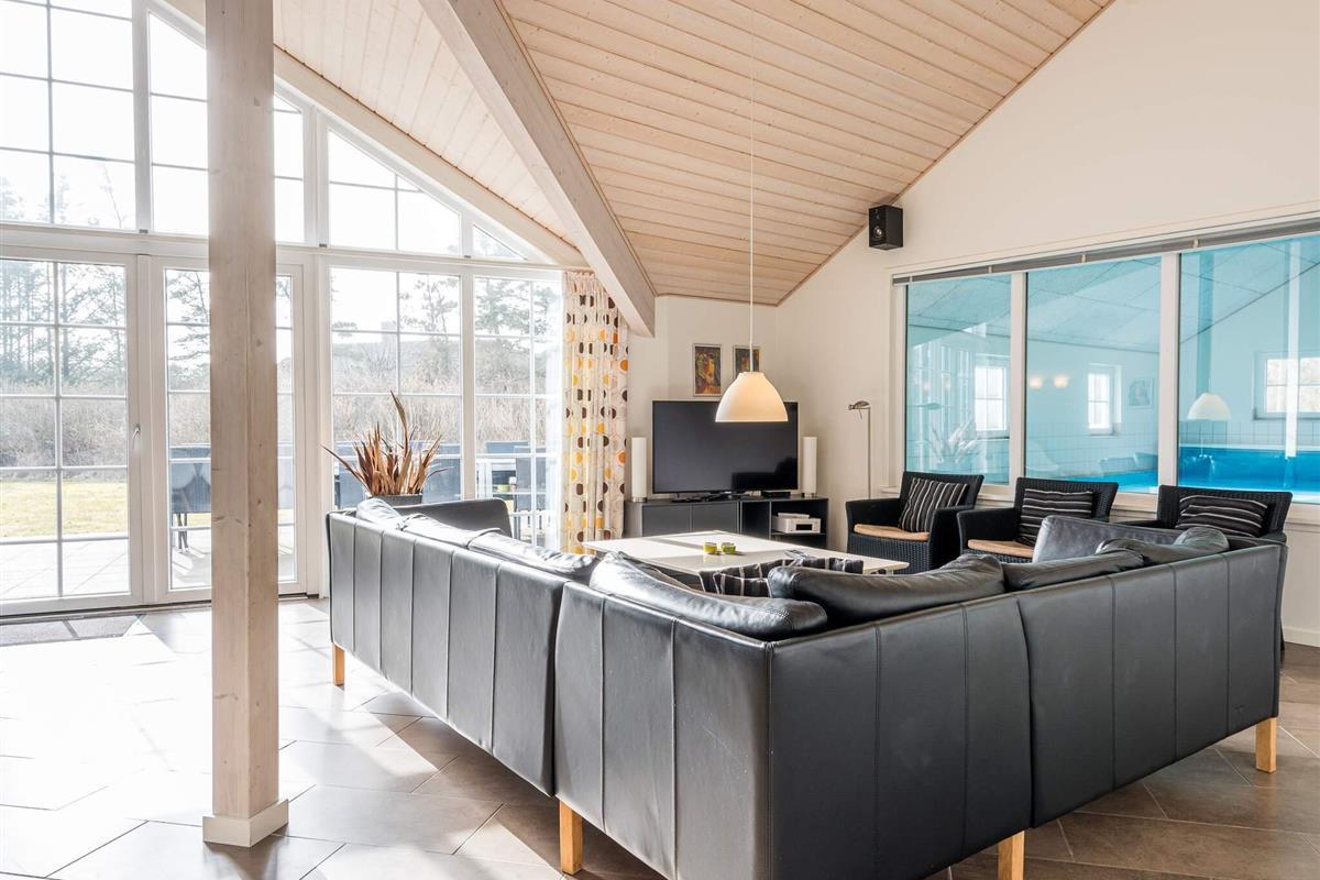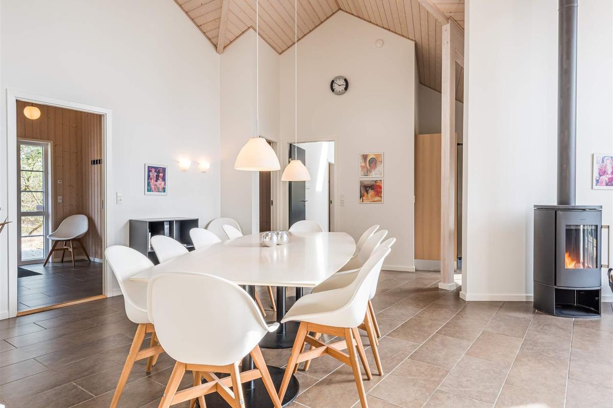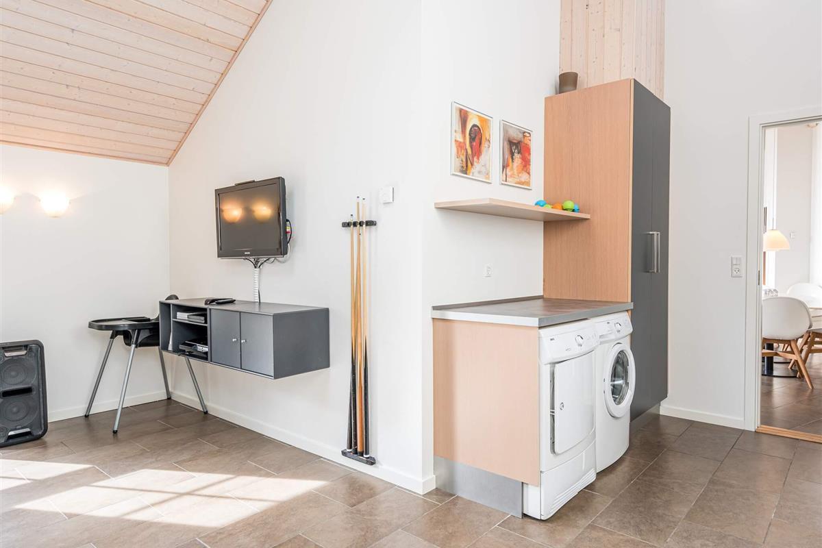 KEINE JUGENDGRUPPE - AKTIVITÄTSRAUM - Hier spricht man wirklich von einem super Ferienhaus mit allen Bequemlichkeiten. Das Haus ist 2011 gebaut und liegt auf einem wunderschönen Naturgrundstück nur 350 m von einem der besten Badestrände von Dänemark. In diesem Haus hat man keine Probleme, sich die Zeit zu vertreiben . Hier ist ein super toller Pool mit Gegenstromanlage von 22 m2 und einem Standwasser-Whirlpool für 4 Personen. Hat man keine Lust zum baden mehr, gibt es die Möglichkeit in dem schönen, grossen Aktivitätsraum Pool, Tischtennis, Tischfussball zu spielen oder einfach mit seinen Freunden die Ferien zu geniessen. Mit seinen 6 Schlafzimmern und 3 Badezimmern - Sauna ist ein Damphkabine im Poolraum - lädt das Haus wirklich zu einem Familientreffen oder Ferien mit Freunden ein. Hier ist wirklich Platz sich zu bewegen. Die Küche, die einen grossen Amerikaner Kühl/Gefrierschrank hat, liegt in offener Verbindung mit dem geräumigen Wohnzimmer/Essbereich, von dem der Ausblick in den Poolraum ist. Weiterhin ist das Wohnzimmer mit einem richtig tollen Kaminofen versehen, der für sowohl Wärme als auch Gemütlichkeit sorgt. Es ist ingesamten Haus Fussbodenheizung. Endreinigung ist im Preis enthalten!