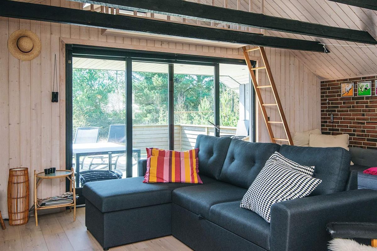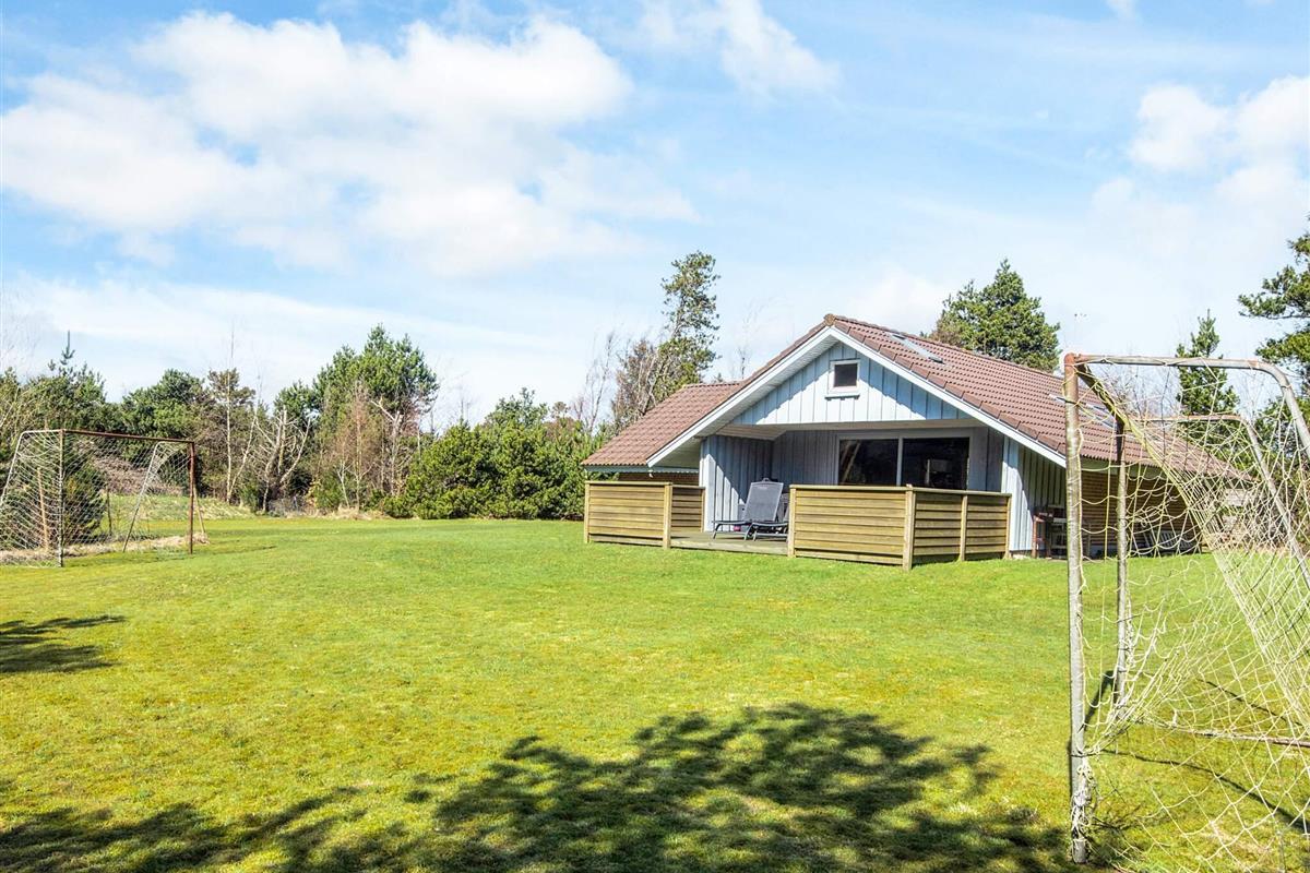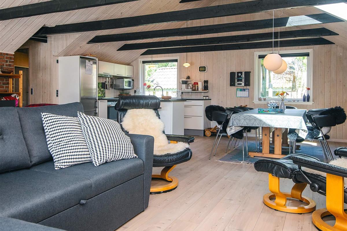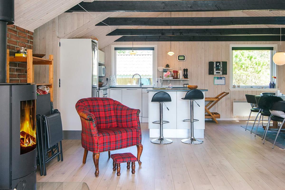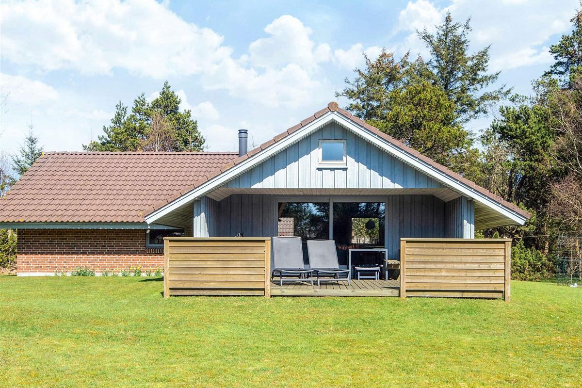 KEINE JUGENDGRUPPEN Auf einem schönen nahezu geschlossenen Grundstück liegt dieses wirklich gemütliche Ferienhaus. Dieses Haus wurde ursprünglich im Jahre 1979 erbaut, hat aber zwischenzeitlich im Jahre 2011 eine Modernisierung erhalten mit einer neuen Küche, die in offener Verbindung liegt mit dem geräumigen Wohnzimmer, das mit komfortablen Möbeln eingerichtet ist. Im Wohnzimmer befindet sich ein Treppe zu einem guten Hems/Dachboden, wo die Kinder sicherlich einige Zeit verbringen werden. Vom Wohnzimmer aus ist ein Ausgang auf die teilweise überdachte Terrasse , von wo aus man einen Überblick auf einen grossen Teil des Grundstückes hat und den Kindern beim Spielen im Sandkasten oder beim Schaukeln zusehen kann.Das Grundstück mit den vielen Bäumen eignet sich wirklich gut zum Versteckspielen. Auf der Rückseite des Hauses befindet sich eine kleine Morgenterrasse, wo die Frühaufsteher gemütlich bei einer Tasse Kaffee sitzen können. Im Haus befinden sich 3 gute Schlafzimmer. Zwei davon mit Doppelbetten und das dritte mit einen Kojenbett in Erwachsenengrösse. Das Badezimmer wurde im Jahre 2008 mit neuen Fliesen und Sanitäreinrichtung modernisiert. Ein super gemütliches Haus für eine Familie mit Kindern. Endreinigung ist im Preis enthalten!