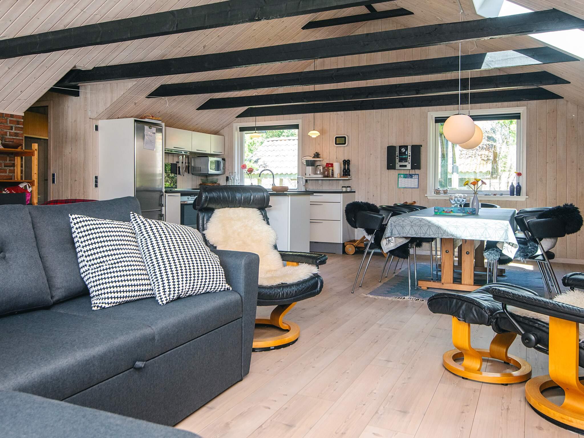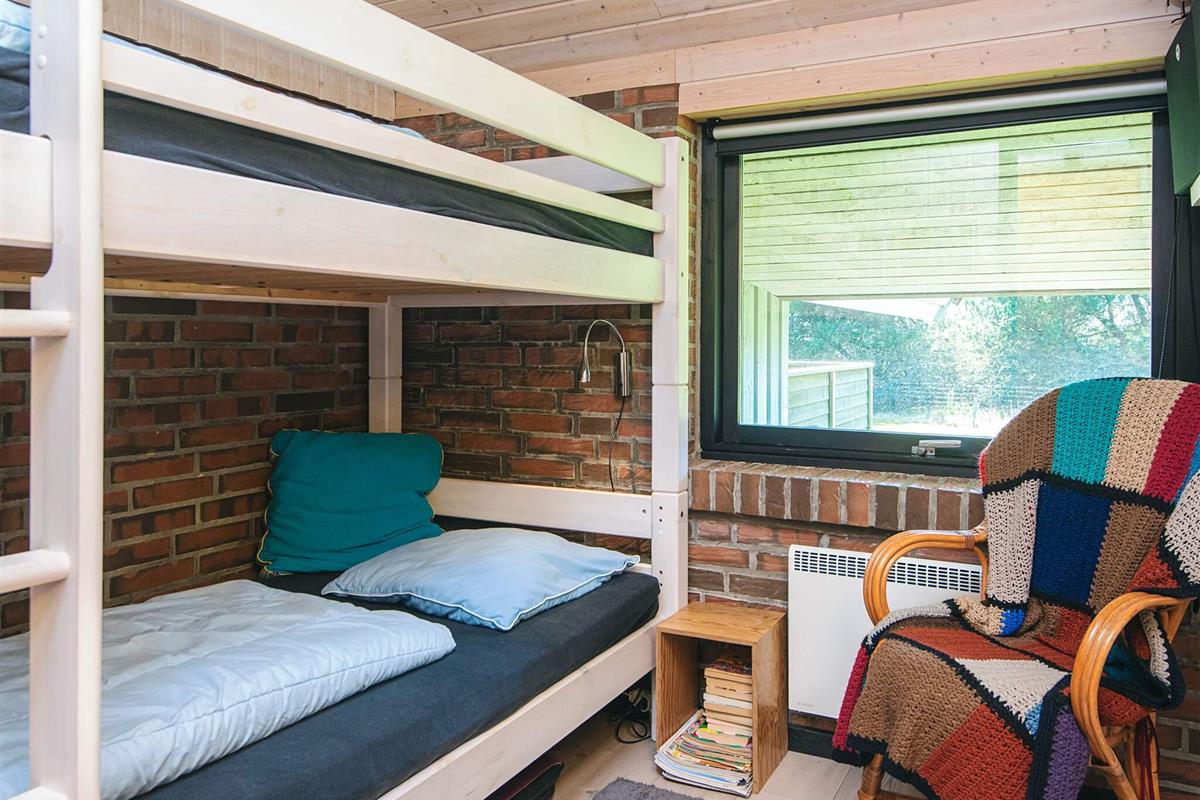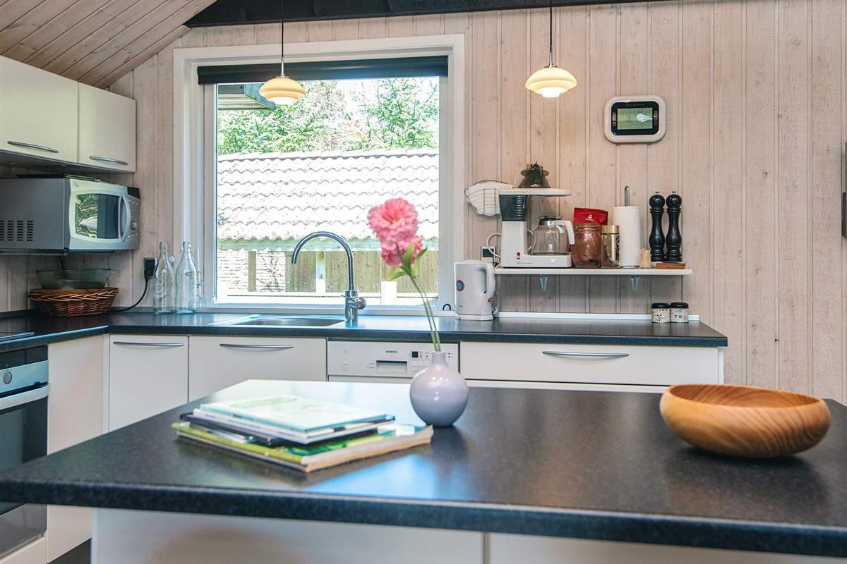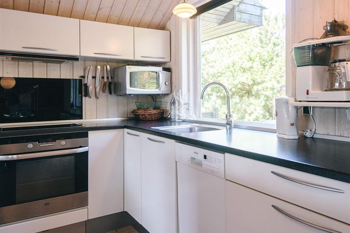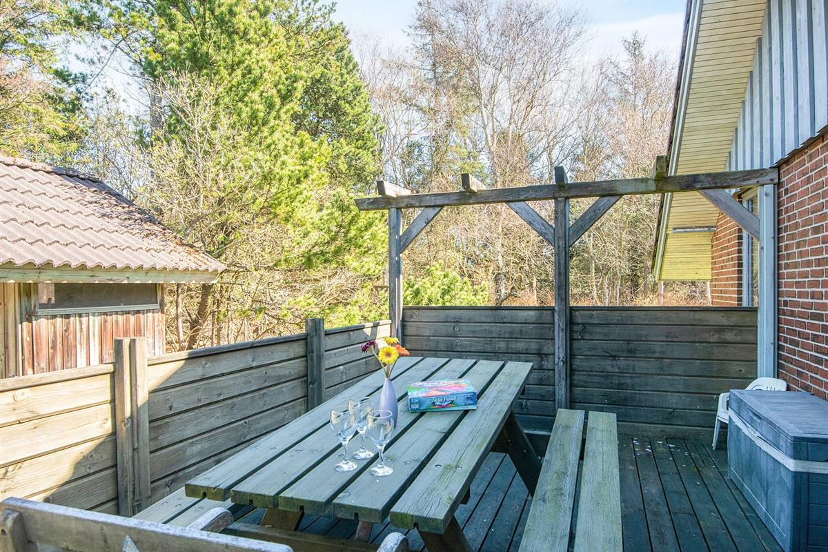 KEINE JUGENDGRUPPEN Auf einem schönen nahezu geschlossenen Grundstück liegt dieses wirklich gemütliche Ferienhaus. Dieses Haus wurde ursprünglich im Jahre 1979 erbaut, hat aber zwischenzeitlich im Jahre 2011 eine Modernisierung erhalten mit einer neuen Küche, die in offener Verbindung liegt mit dem geräumigen Wohnzimmer, das mit komfortablen Möbeln eingerichtet ist. Im Wohnzimmer befindet sich ein Treppe zu einem guten Hems/Dachboden, wo die Kinder sicherlich einige Zeit verbringen werden. Vom Wohnzimmer aus ist ein Ausgang auf die teilweise überdachte Terrasse , von wo aus man einen Überblick auf einen grossen Teil des Grundstückes hat und den Kindern beim Spielen im Sandkasten oder beim Schaukeln zusehen kann.Das Grundstück mit den vielen Bäumen eignet sich wirklich gut zum Versteckspielen. Auf der Rückseite des Hauses befindet sich eine kleine Morgenterrasse, wo die Frühaufsteher gemütlich bei einer Tasse Kaffee sitzen können. Im Haus befinden sich 3 gute Schlafzimmer. Zwei davon mit Doppelbetten und das dritte mit einen Kojenbett in Erwachsenengrösse. Das Badezimmer wurde im Jahre 2008 mit neuen Fliesen und Sanitäreinrichtung modernisiert. Ein super gemütliches Haus für eine Familie mit Kindern. Endreinigung ist im Preis enthalten!