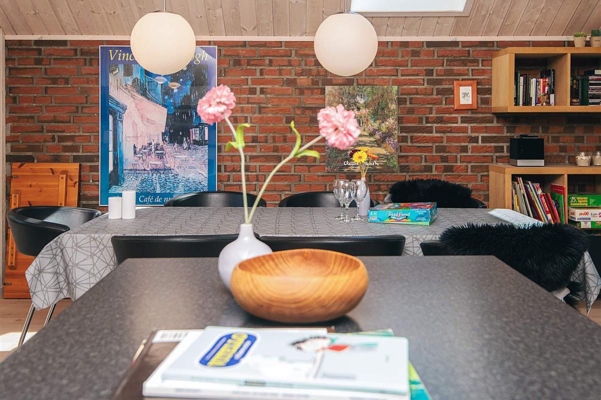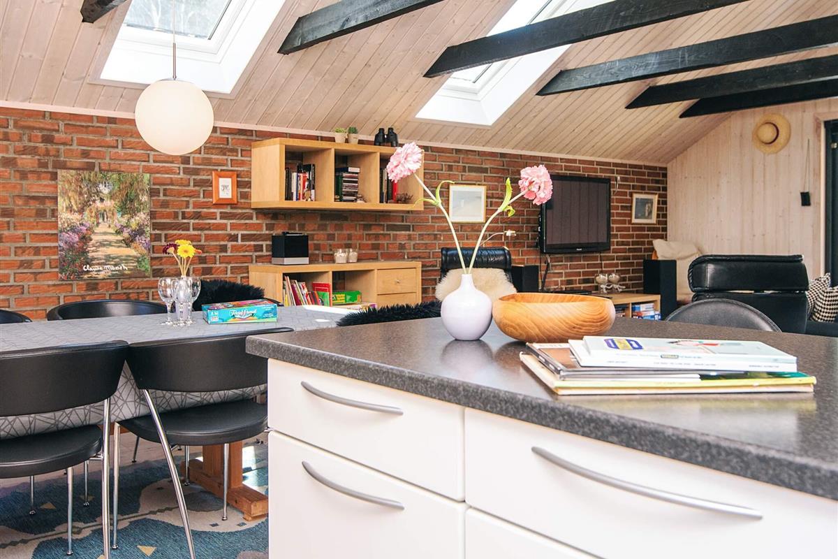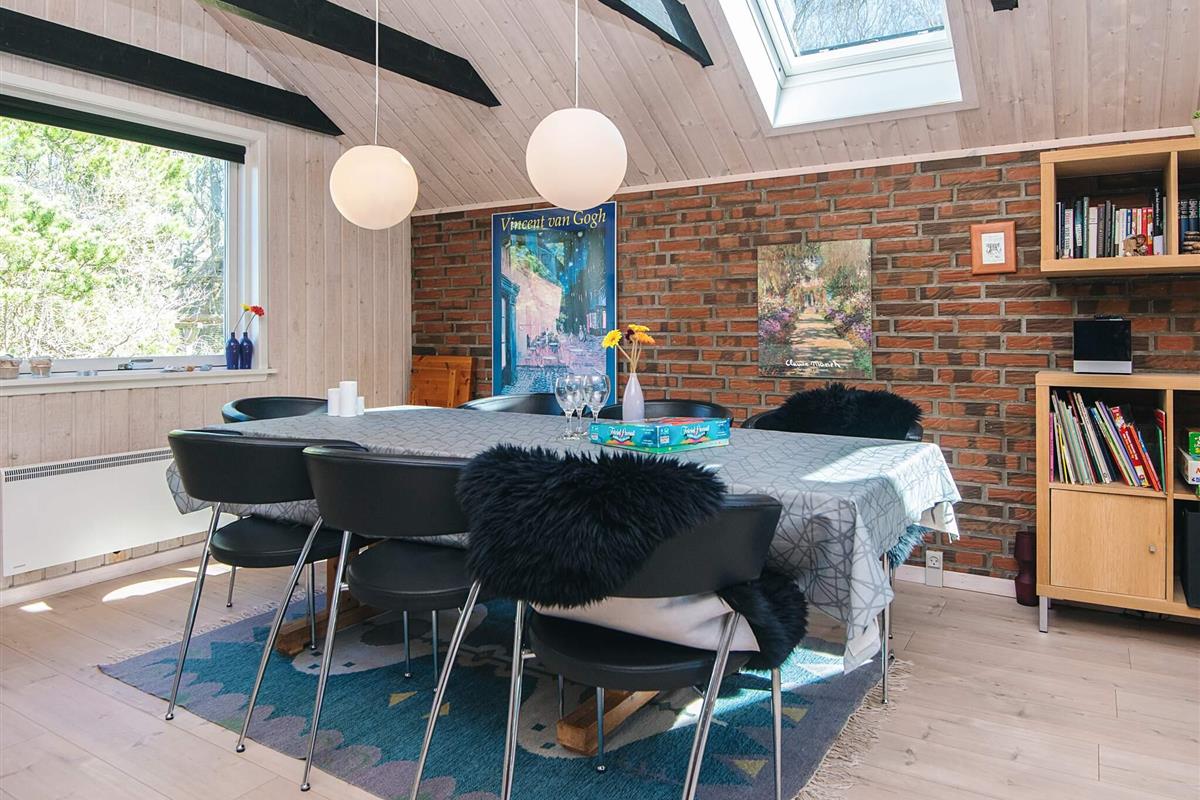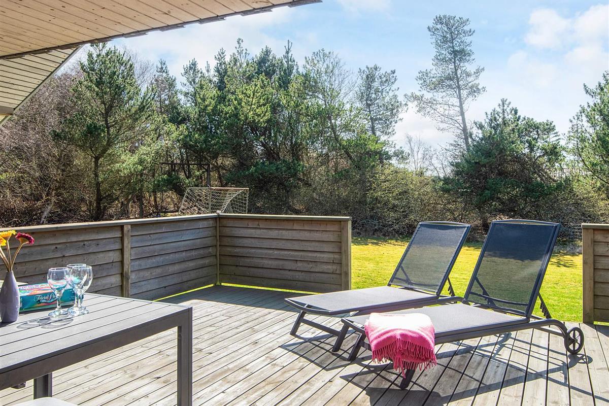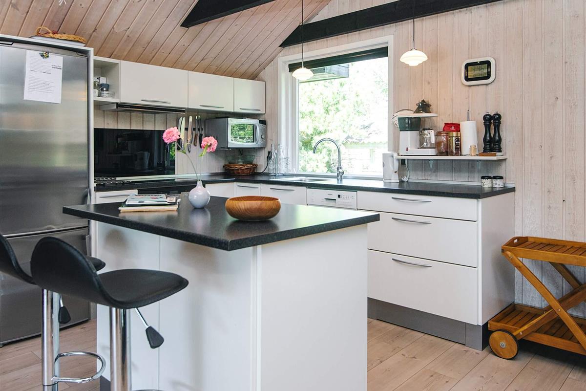 KEINE JUGENDGRUPPEN Auf einem schönen nahezu geschlossenen Grundstück liegt dieses wirklich gemütliche Ferienhaus. Dieses Haus wurde ursprünglich im Jahre 1979 erbaut, hat aber zwischenzeitlich im Jahre 2011 eine Modernisierung erhalten mit einer neuen Küche, die in offener Verbindung liegt mit dem geräumigen Wohnzimmer, das mit komfortablen Möbeln eingerichtet ist. Im Wohnzimmer befindet sich ein Treppe zu einem guten Hems/Dachboden, wo die Kinder sicherlich einige Zeit verbringen werden. Vom Wohnzimmer aus ist ein Ausgang auf die teilweise überdachte Terrasse , von wo aus man einen Überblick auf einen grossen Teil des Grundstückes hat und den Kindern beim Spielen im Sandkasten oder beim Schaukeln zusehen kann.Das Grundstück mit den vielen Bäumen eignet sich wirklich gut zum Versteckspielen. Auf der Rückseite des Hauses befindet sich eine kleine Morgenterrasse, wo die Frühaufsteher gemütlich bei einer Tasse Kaffee sitzen können. Im Haus befinden sich 3 gute Schlafzimmer. Zwei davon mit Doppelbetten und das dritte mit einen Kojenbett in Erwachsenengrösse. Das Badezimmer wurde im Jahre 2008 mit neuen Fliesen und Sanitäreinrichtung modernisiert. Ein super gemütliches Haus für eine Familie mit Kindern. Endreinigung ist im Preis enthalten!