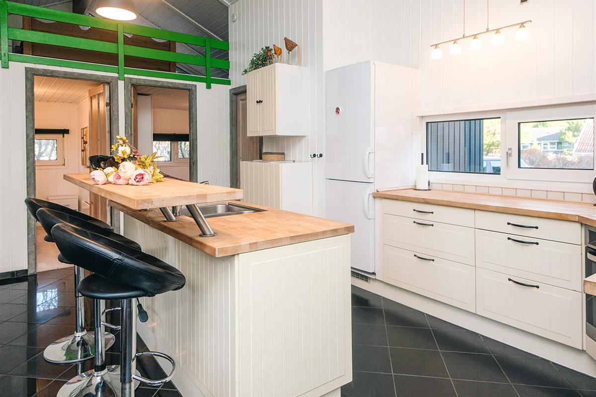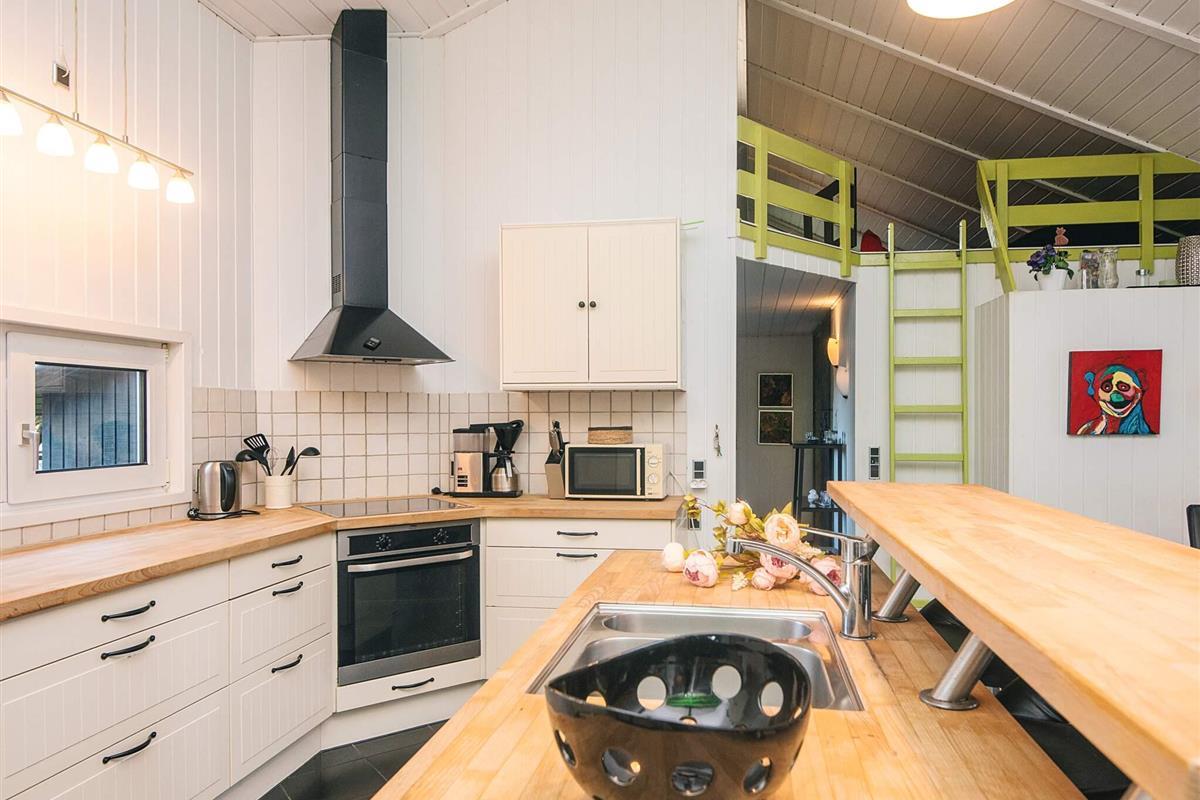 KEINE JUGENDGRUPPEN Schönes und richtig gemütliches Ferienhaus in Blavand. Um das Naturgrundstück ist Bewuchs, weshalb Sie hier ungeniert sind. Die gemütliche Stadtmitte mit guten Restaurants und vielen Shopping-Möglichkeiten sind zu Fuß erreichbar. Das Ferienhaus ist in gutem Still und sehr gemütlich mit Kerzen eingerichtet. Küche und Esszimmer sind in offener Verbindung miteinander. In der Küche ist eine Treppenstufe runter zu Wohnzimmer, in dem der Kaminofen und der Ausgang zur Terrasse sind. Alle Schlafzimmer sind geschmackvoll und geräumig eingerichtet. Das Badezimmer ist auch geräumig. In beiden Enden des Ferienhauses sind Hängeböden - der eine mit einem kleinen Wohnzimmer mit TV der eine super Ecke für die Kinder ist. Ausserdem gibt es Fussbodenheizung in der Küche und dem Flur. Ein richtig tolles und gepflegtes Ferienhaus auf einem schönen Grundstück. Endreinigung ist im Preis enthalten!