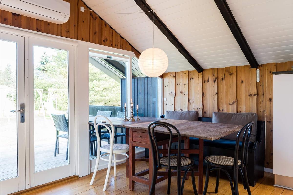 Tolles und sehr gemütliches Ferienhaus in Blavand. Das Ferienhaus steht auf einem weitläufigen Grundstück und in einer tollen Umgebung. Ausgestattet ist das Ferienhaus mit einer offenen Küche, das direkt an das Wohnzimmer grenzt. Hier haben Sie einen direkten Zugang zu einem der vielen Terrassen, die Rund um das Ferienhaus liegen. Neben dem Badezimmer hat das Ferienhaus 2 Schlafzimmer, wobei in dem einem ein Doppelbett und in dem anderen ein Stockbett steht. In dem dazugehörigen Annex befinden sich 2 zusätzliche Schlafplätze, hier können sich beispielsweise Teenager oder die Großeltern zurückziehen. Das Ferienhaus ist mit einer offenen Küche ausgestattet und dort befindet sich auch die Wärmepumpe, durch die eine angenehme Wärme erzeugt wird. Ein tolles und gemütliches Ferienhaus in Blavand an der dänischen Nordseeküste und ideal für kleine Familien oder Paare. Endreinigung ist im Preis enthalten!